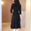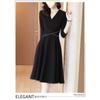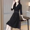 Vestido retro francés primavera y otoño 2025, nueva cintura, escote en V, temperamento adelgazante, reunión anual, vestido de falda negra pequeña