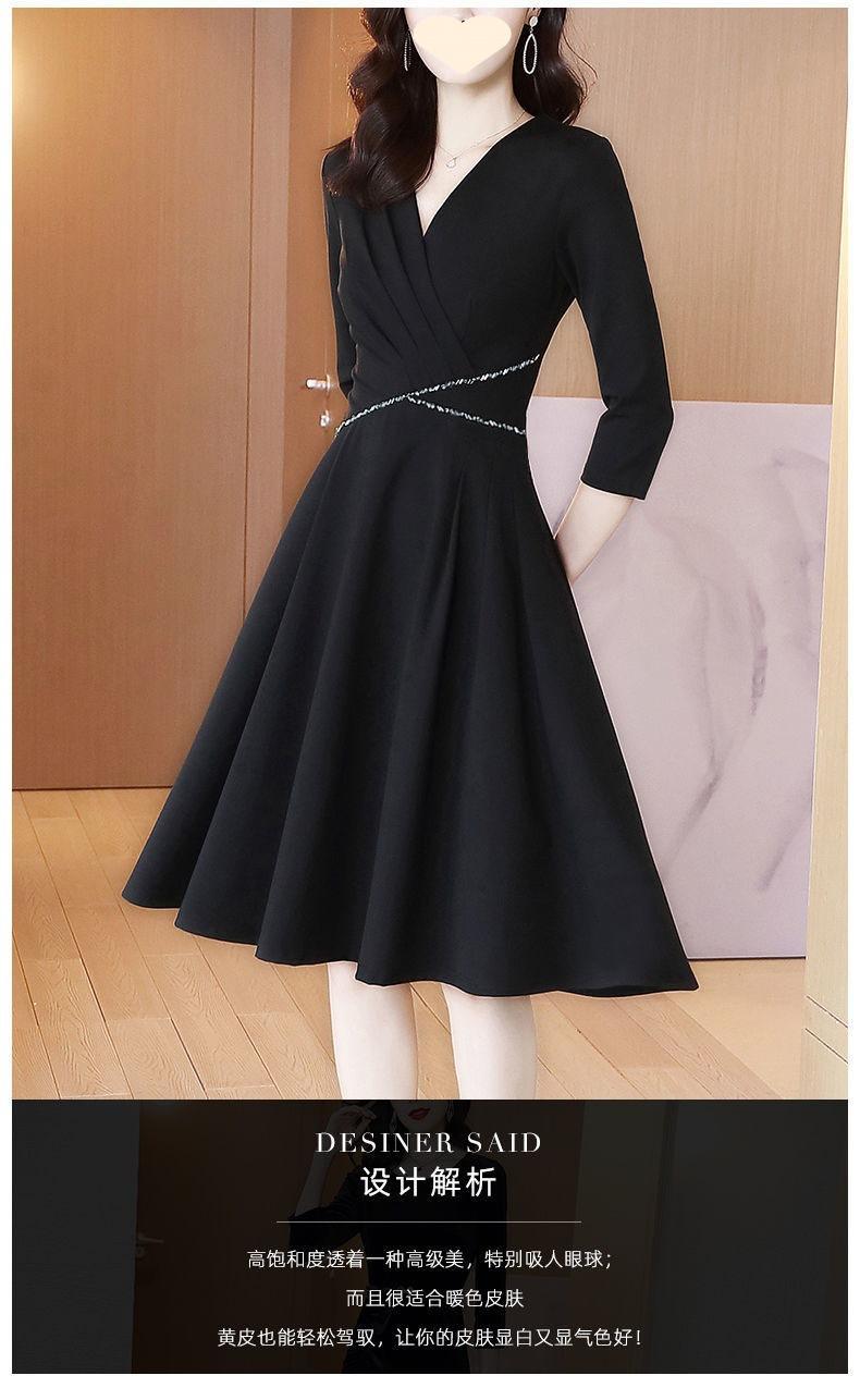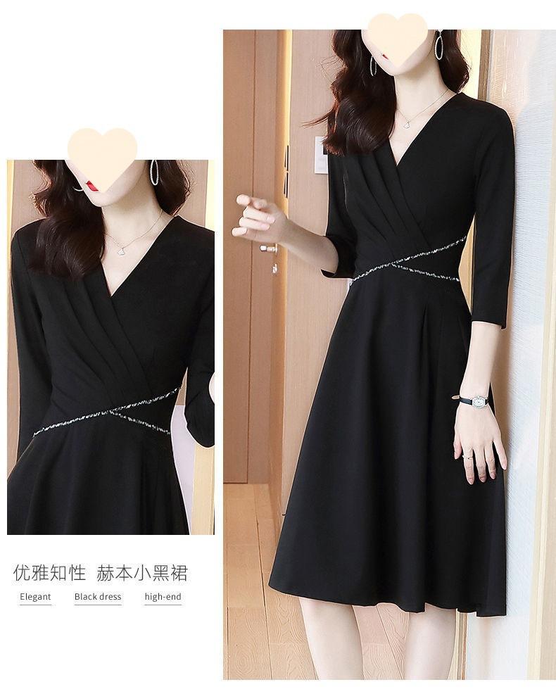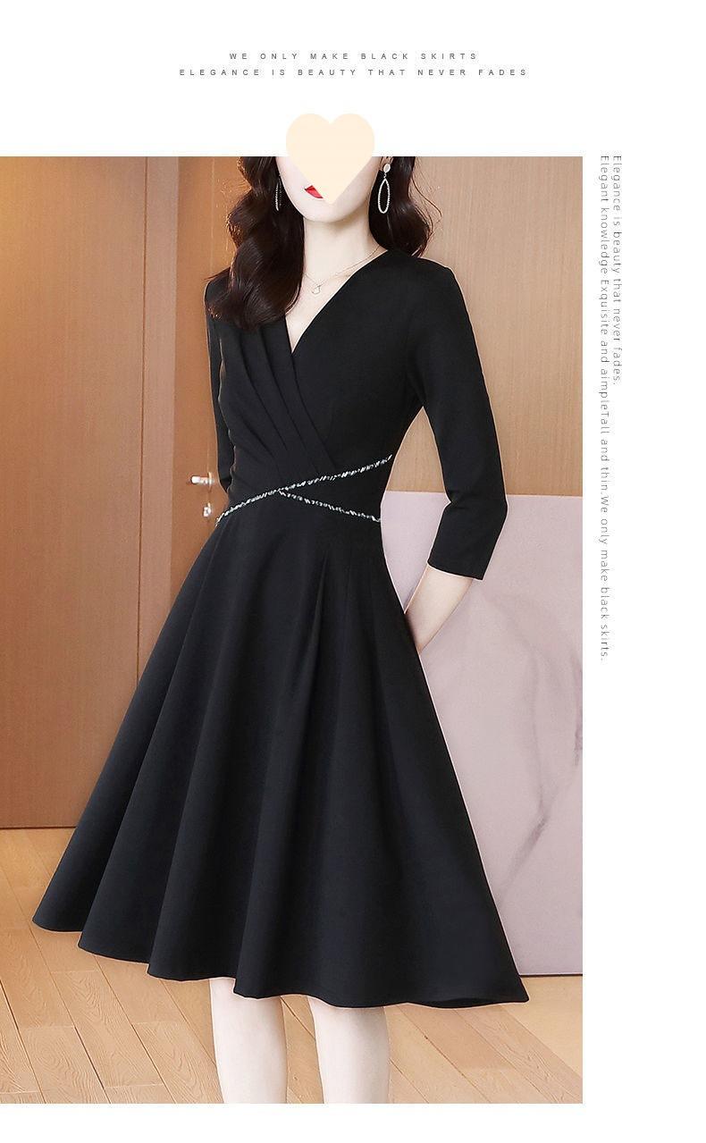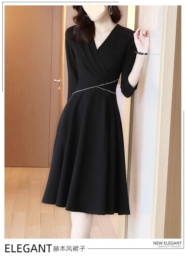 Compra Vestido retro francés primavera y otoño 2025, nueva cintura, escote en V, temperamento adelgazante, reunión anual, vestido de falda negra pequeña al por mayor en Joom.pro