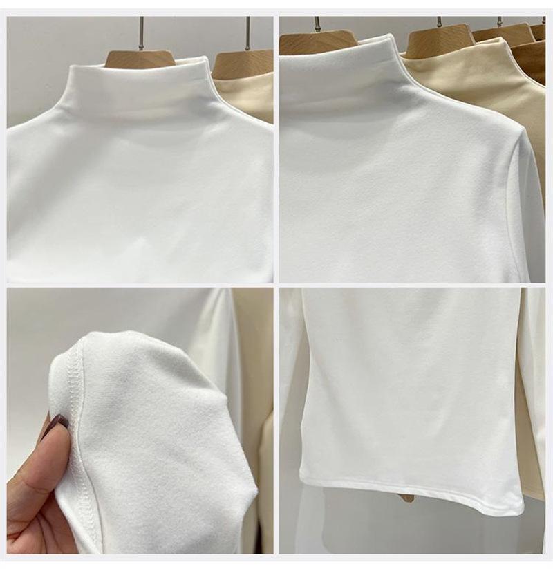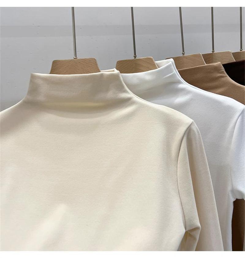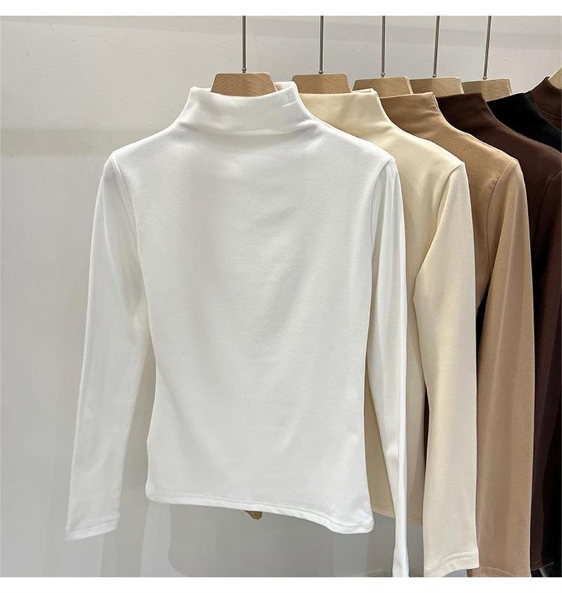 Camiseta básica de terciopelo alemán de cuello medio alto engrosado para mujer otoño e invierno, moderna y elegante, cálida y abrigada camiseta interior de manga larga