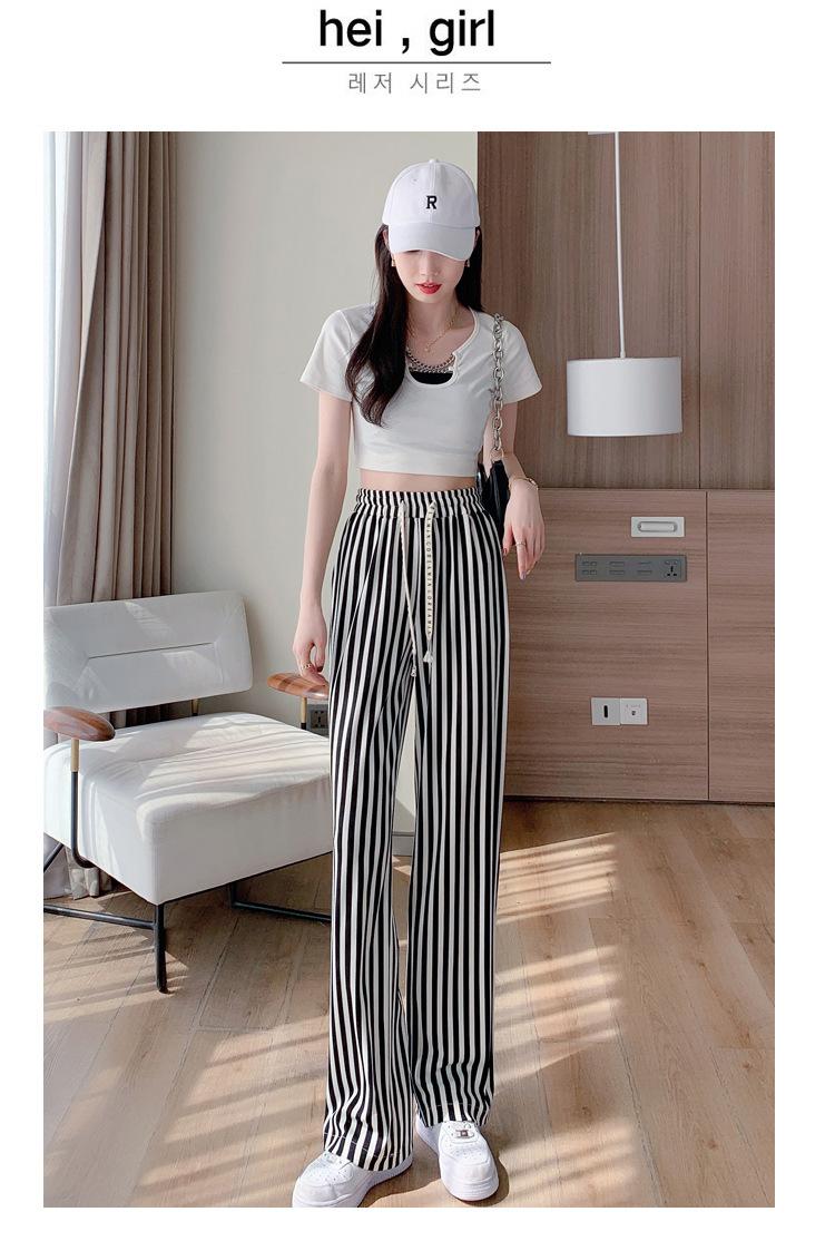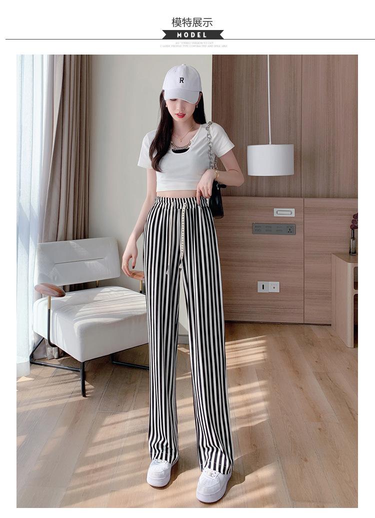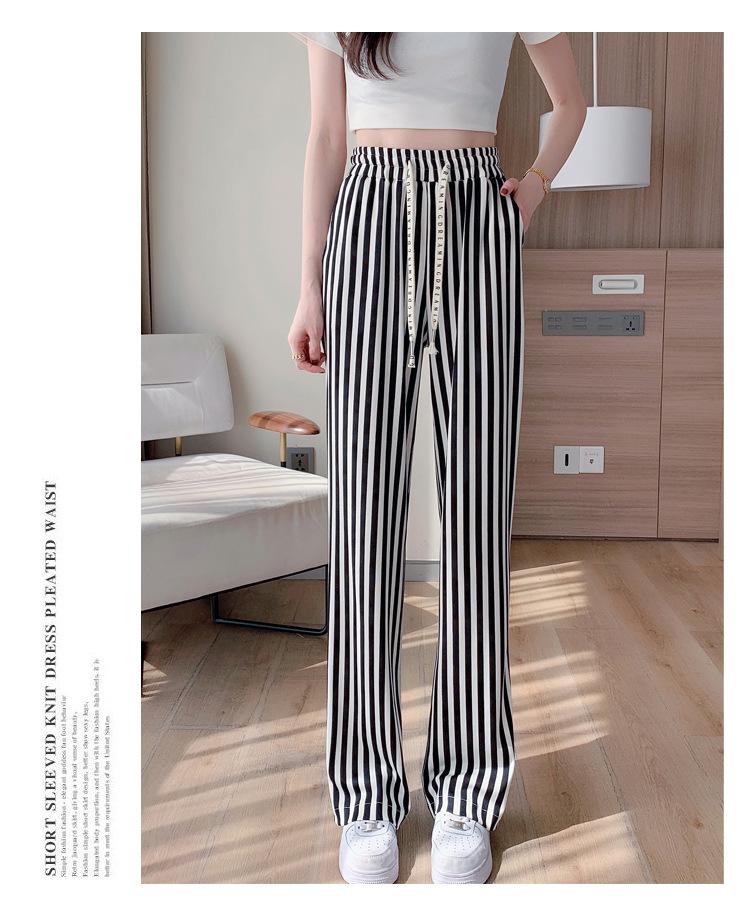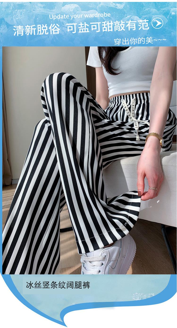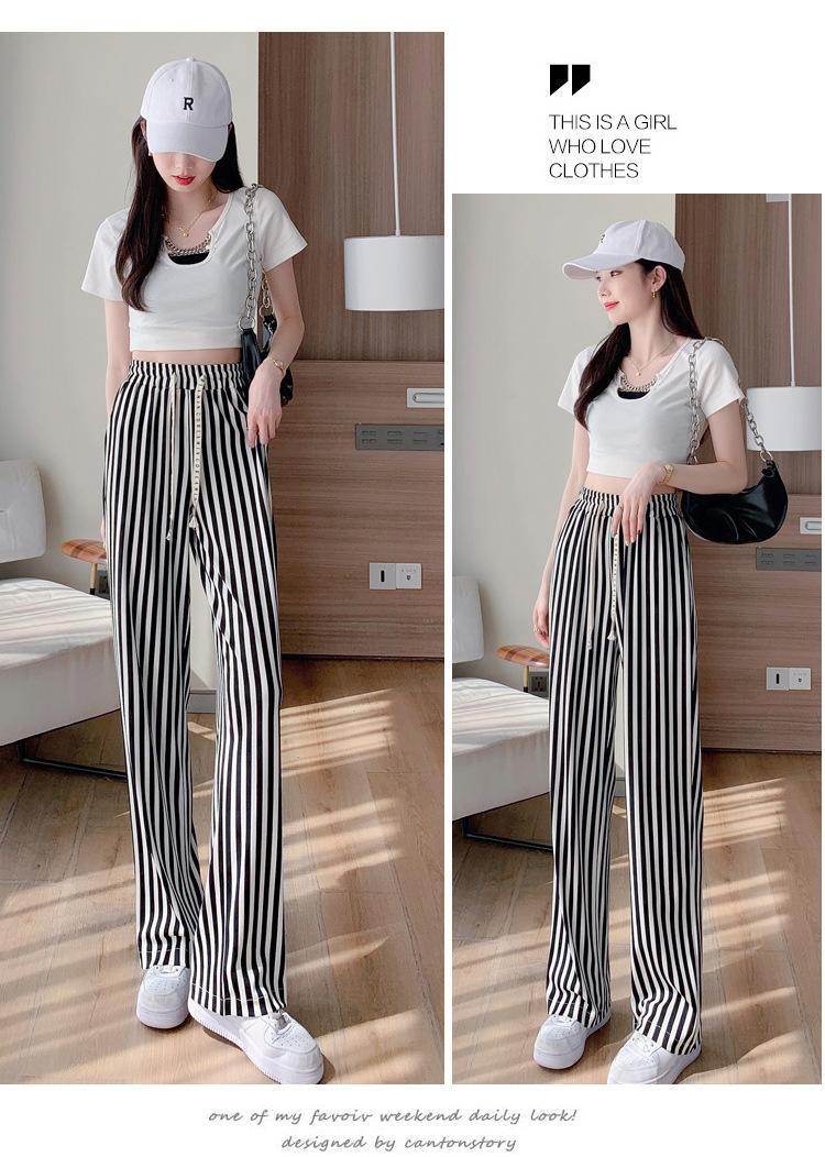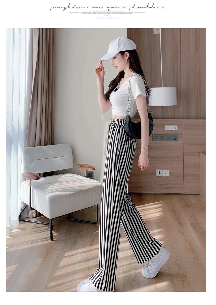Pantalones Casuales de Pierna Ancha 2025 Nuevos para Mujer Adelgazantes de Cintura Alta Rectos Verano Sueltos Modernos Pantalones a Rayas Blancas y Negras