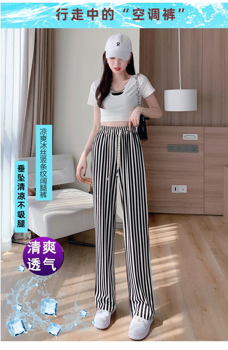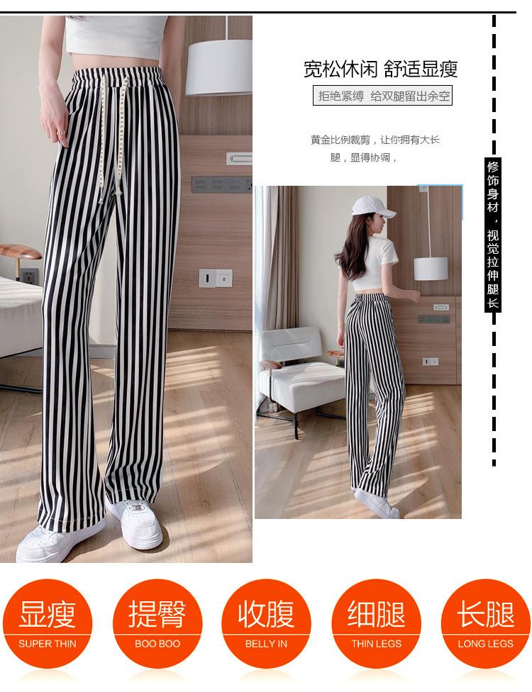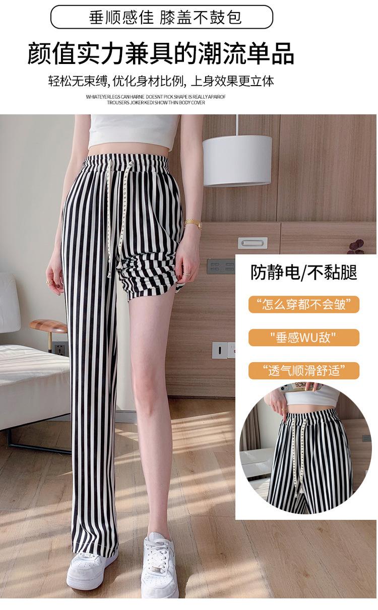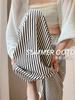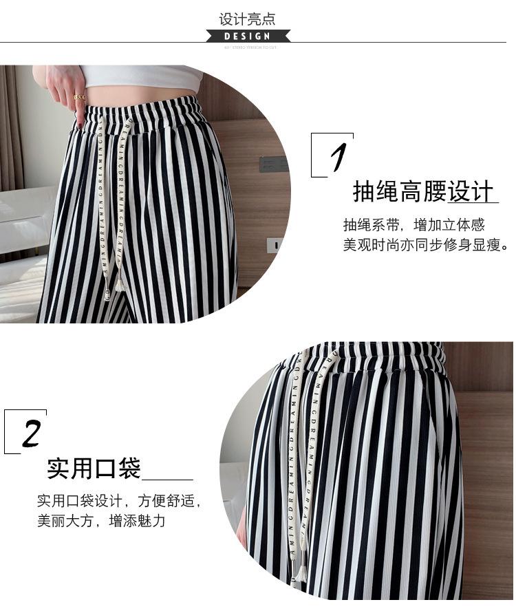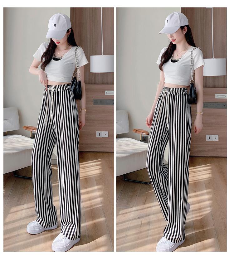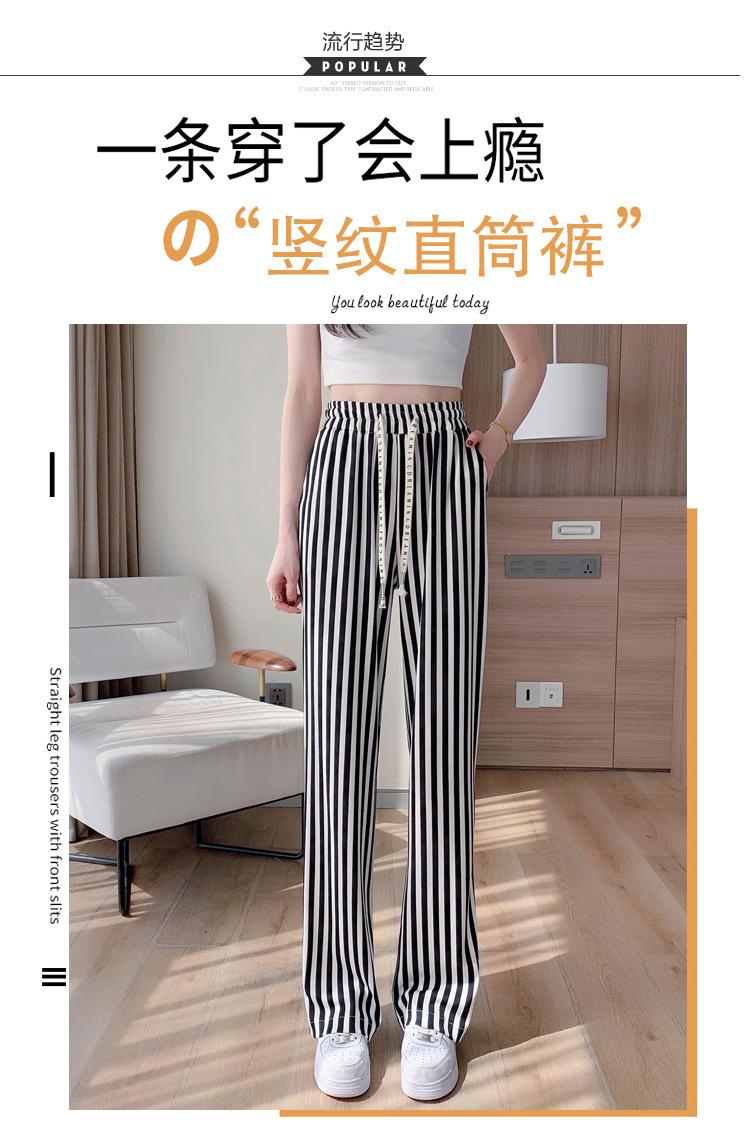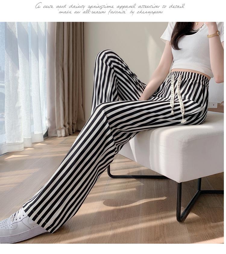 Pantalones Casuales de Pierna Ancha 2025 Nuevos para Mujer Adelgazantes de Cintura Alta Rectos Verano Sueltos Modernos Pantalones a Rayas Blancas y Negras
