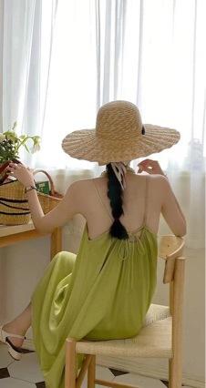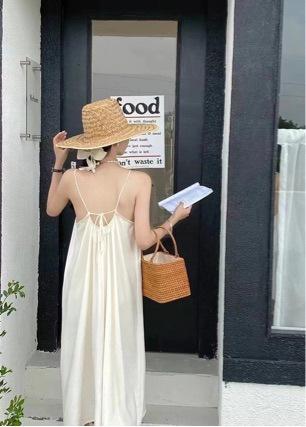 Compra Foto Nueva Falda Larga de Playa sin Espalda Vestido de Tirantes Super Hada para Mujer Vacaciones en la Playa Viaje al por mayor en Joom.pro