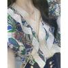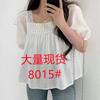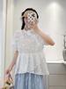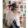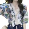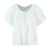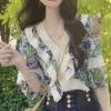 Blusa de verano japonesa y coreana con escote en V, encaje floral y costuras antiedad, diseño de nicho para mujer, mangas abullonadas de encaje dulce