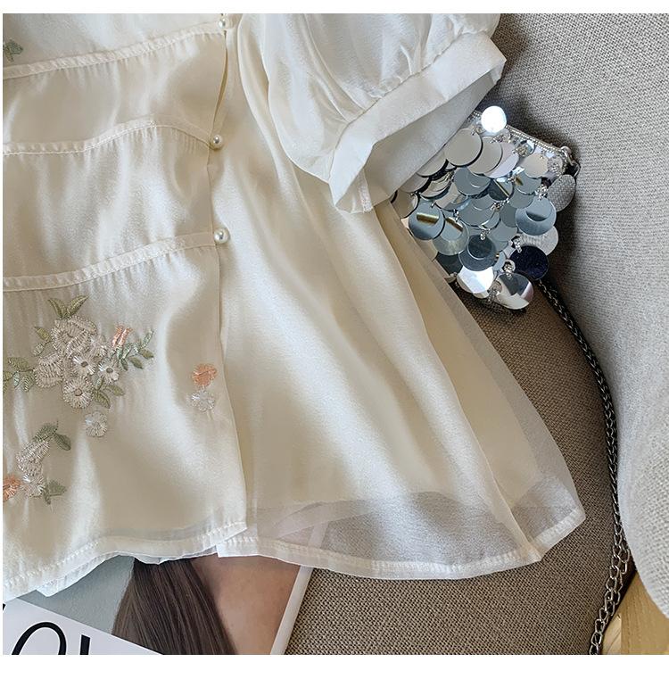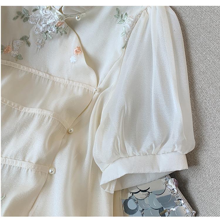Compra Foto Real Verano Nuevo Top Moda Femenina Estilo Chino Estilo Nacional Cuello Vertical Hebilla Camisa Bordada Combinable Reductor de Edad Chifón Camisa Pequeña al por mayor en Joom.pro