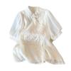 Foto Real Verano Nuevo Top Moda Femenina Estilo Chino Estilo Nacional Cuello Vertical Hebilla Camisa Bordada Combinable Reductor de Edad Chifón Camisa Pequeña