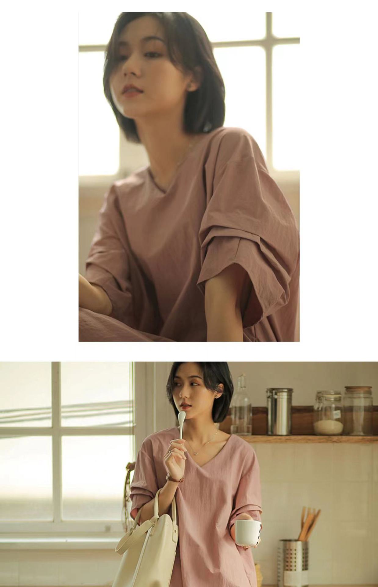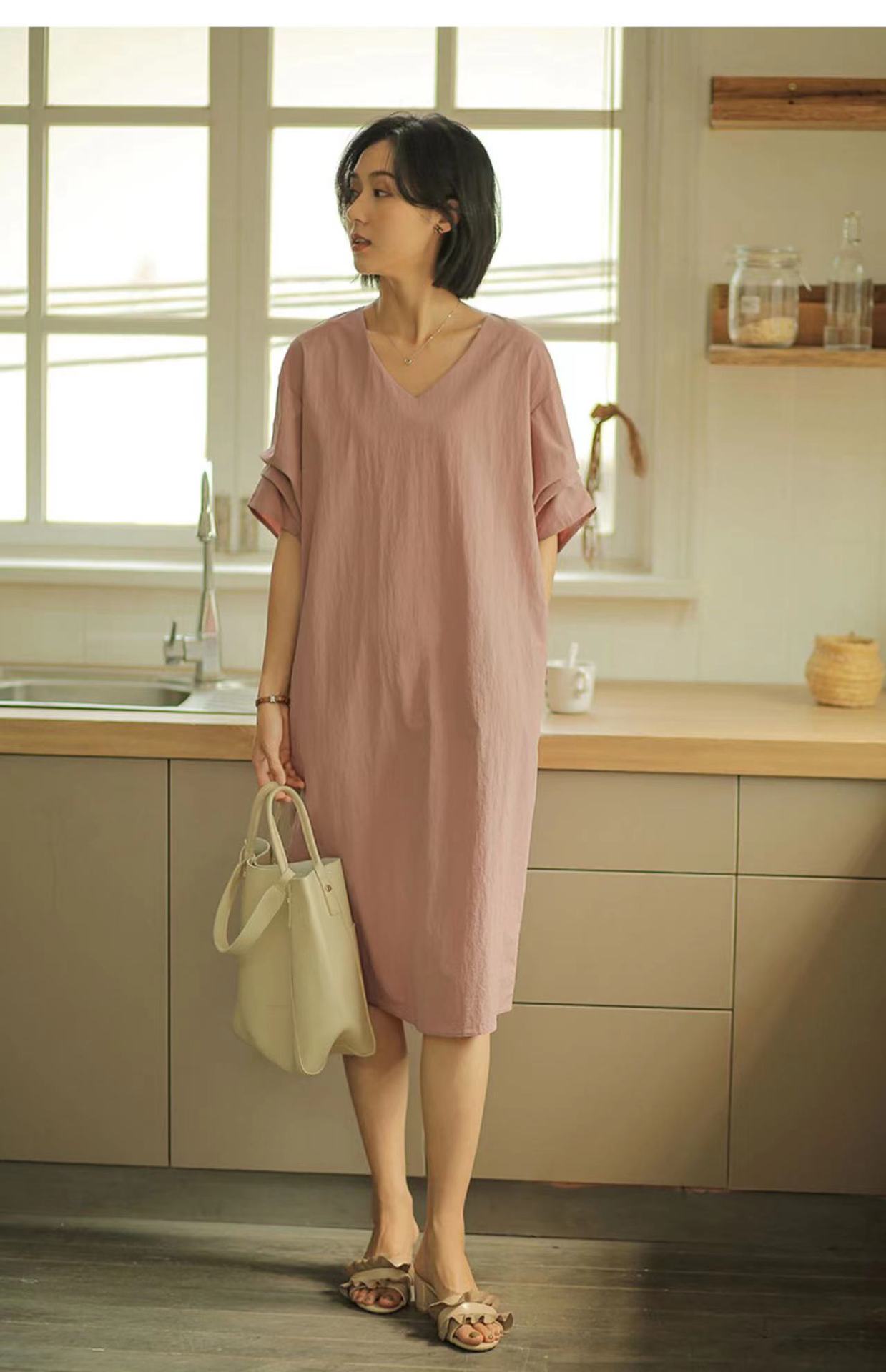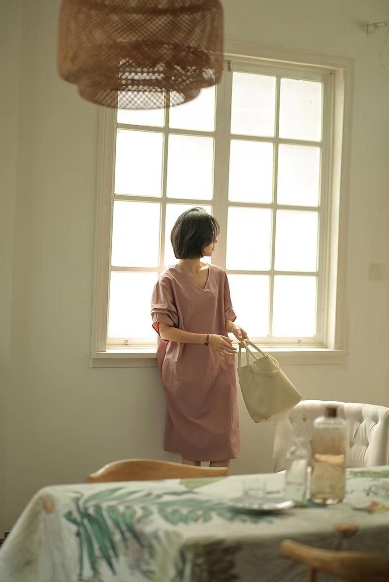 Compra Ropa de Mujer Verano 2025 Nueva Holgada Adelgazante Cuello en V Media Manga Elegante Manga Boca de Pez Vestido Recto para Mujer al por mayor en Joom.pro