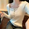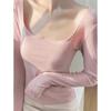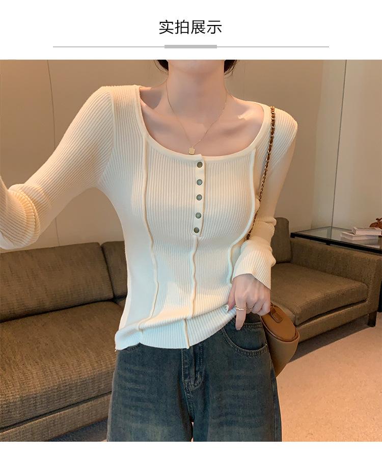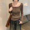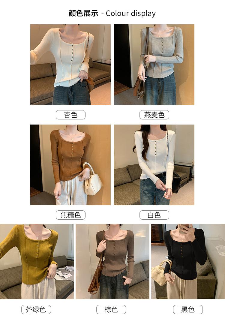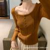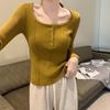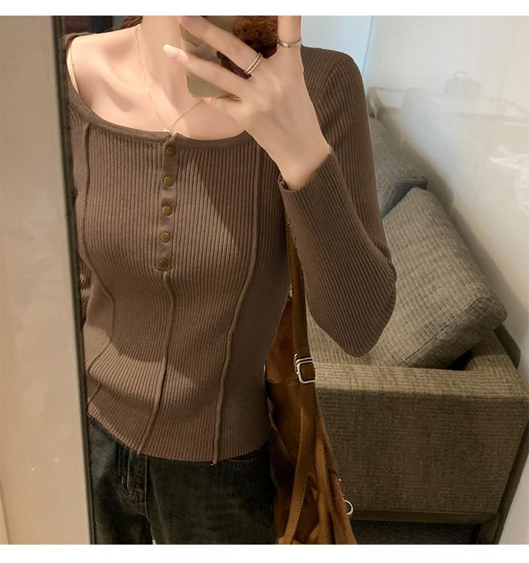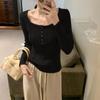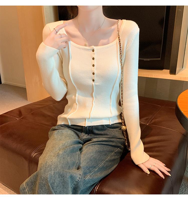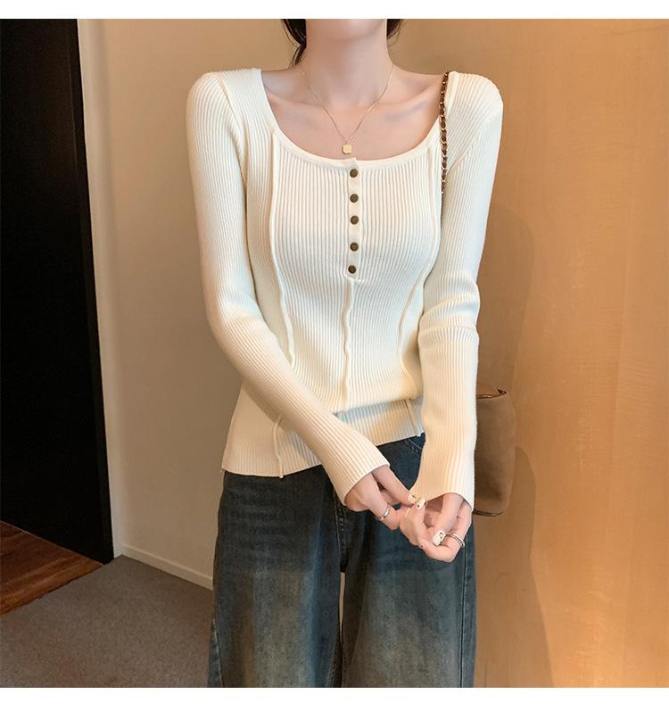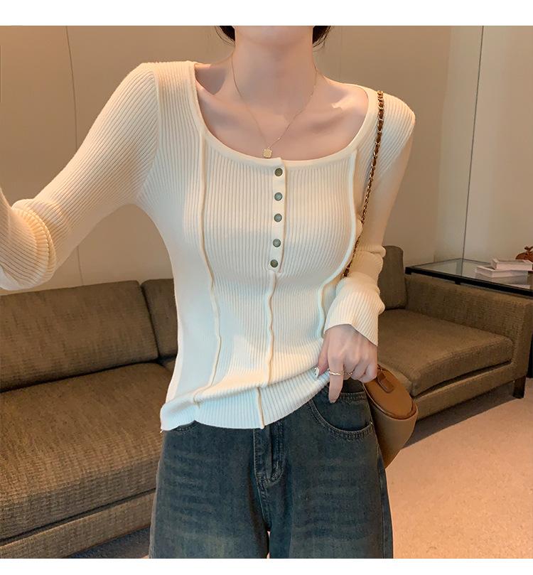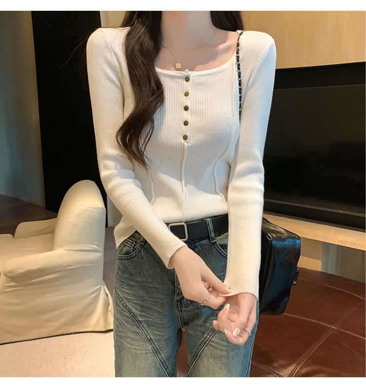 Suéter adelgazante ajustado con cuello cuadrado y manga larga, diseño de clavícula, 2023