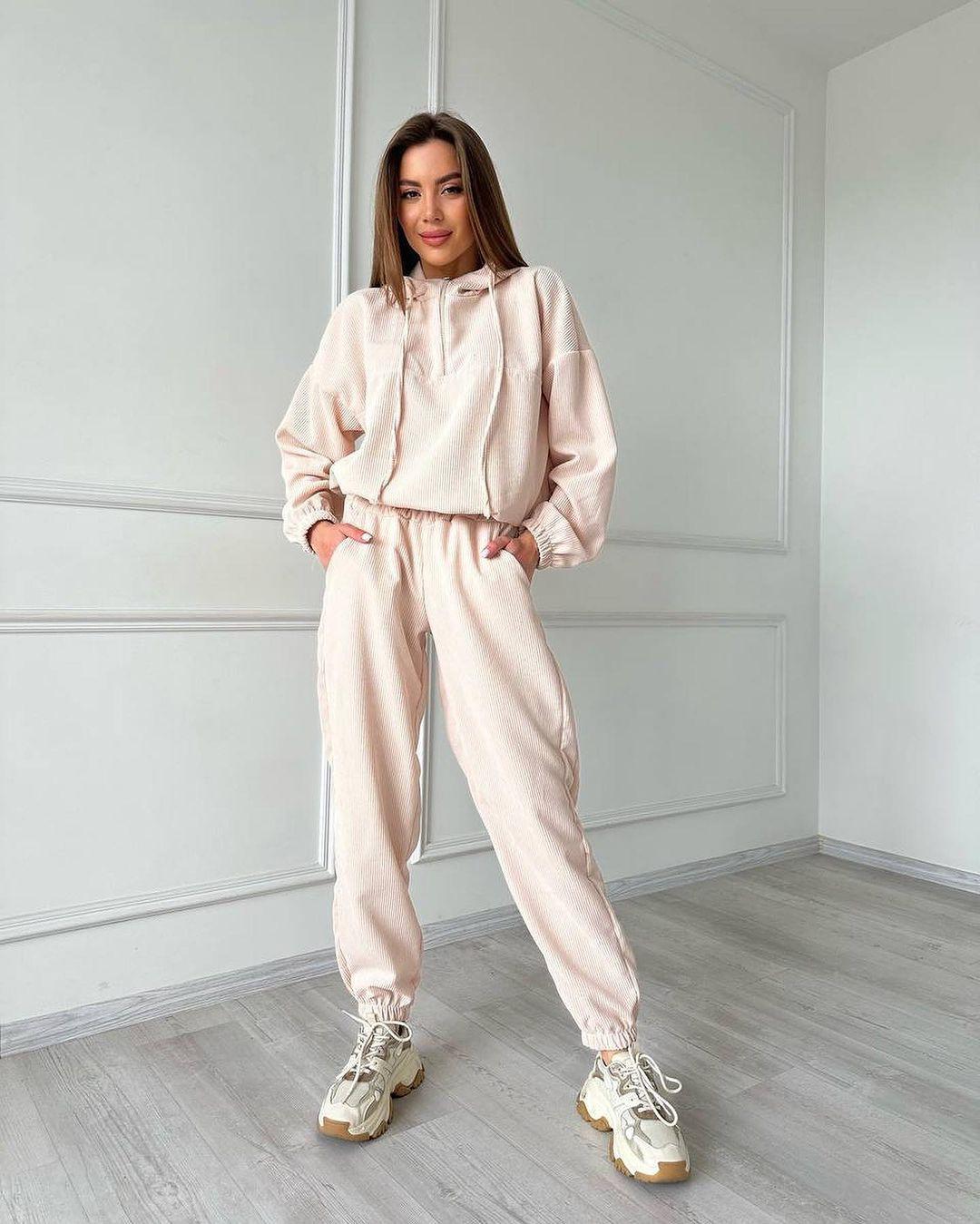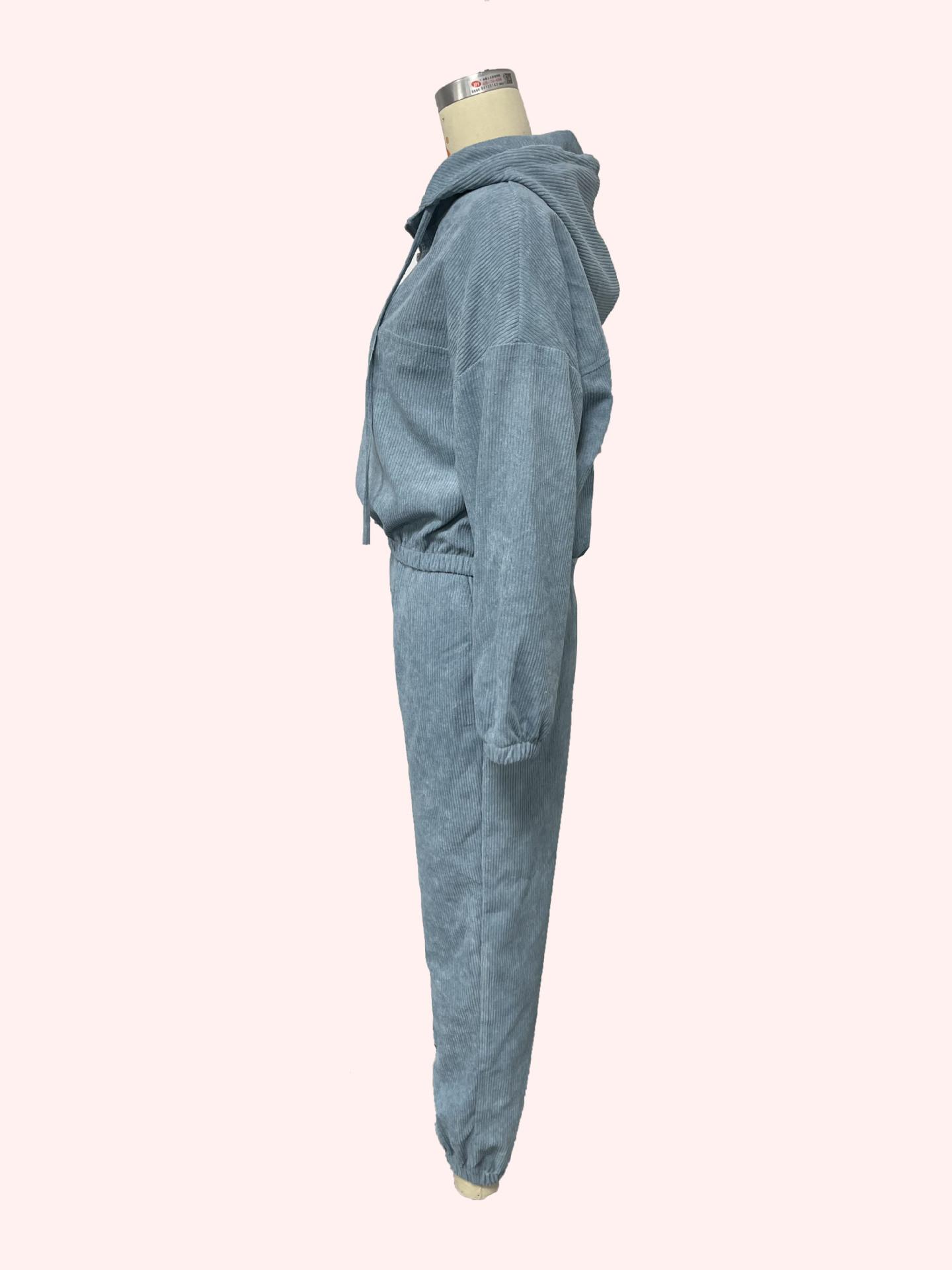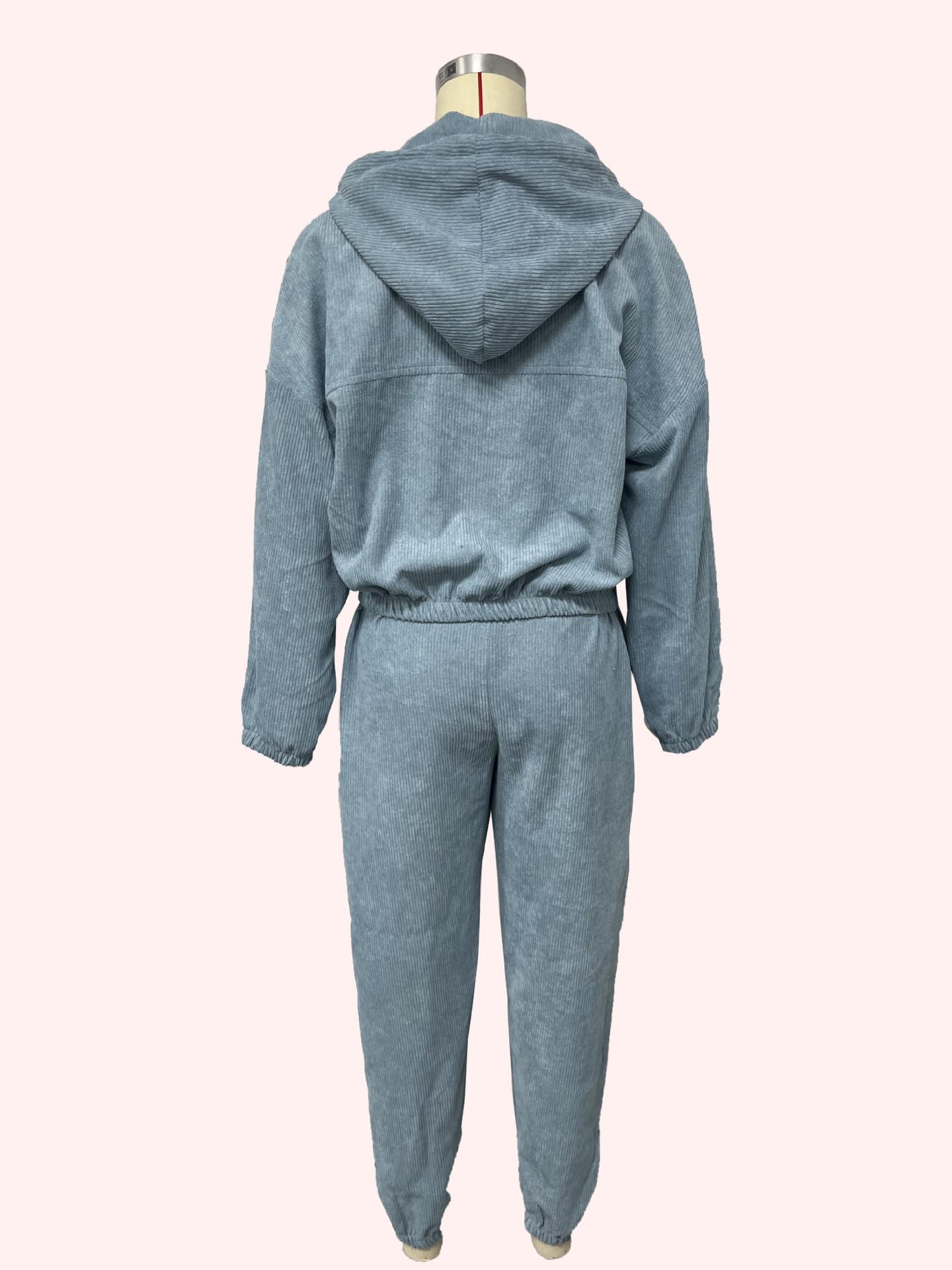 Conjunto de dos piezas de pantalón y traje de mujer con cremallera y capucha de manga larga para otoño e invierno transfronterizo de Amazon europeo y americano