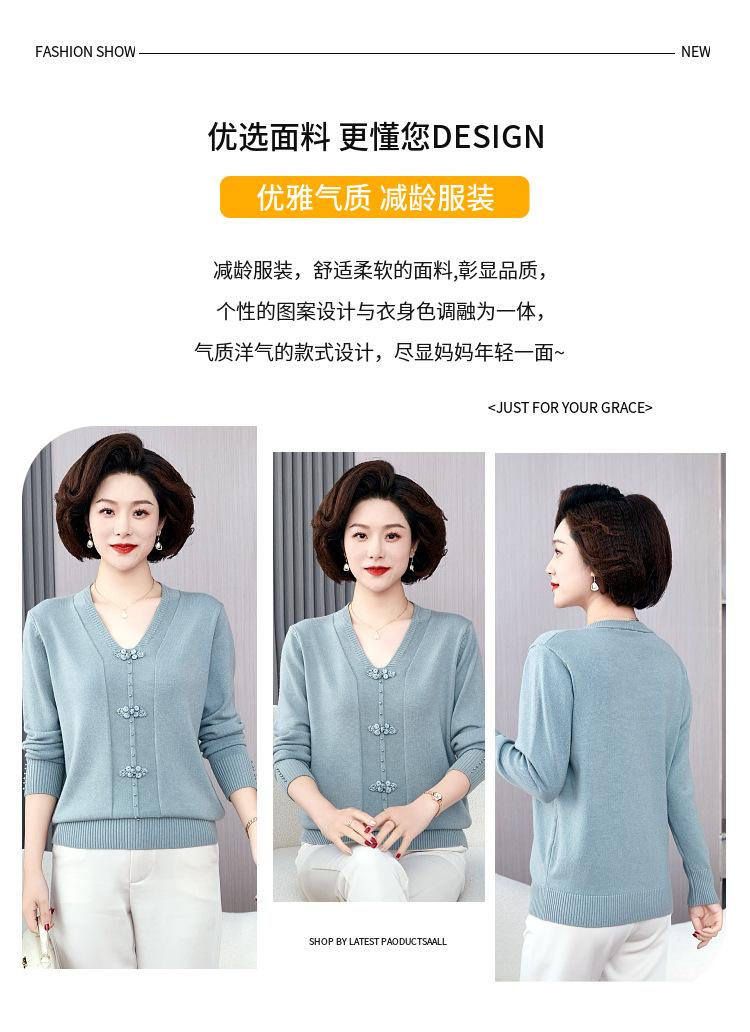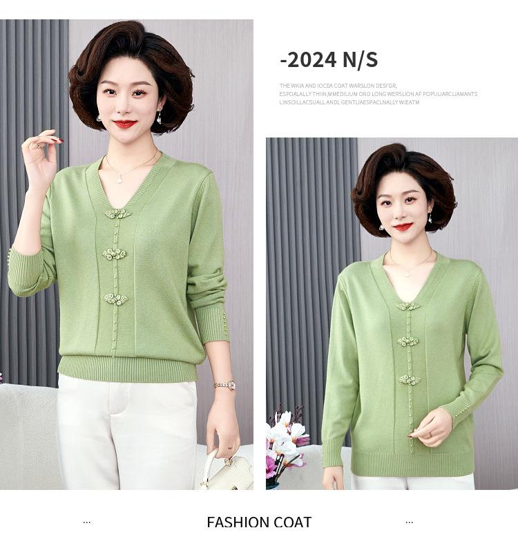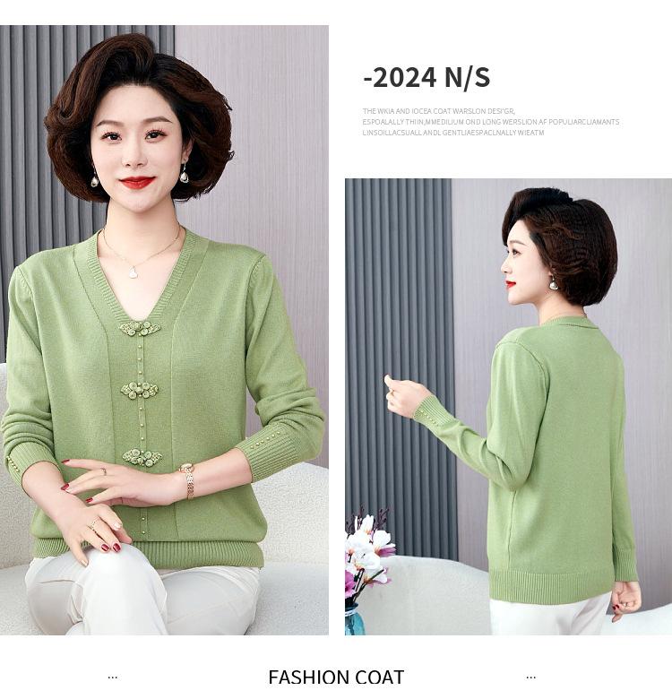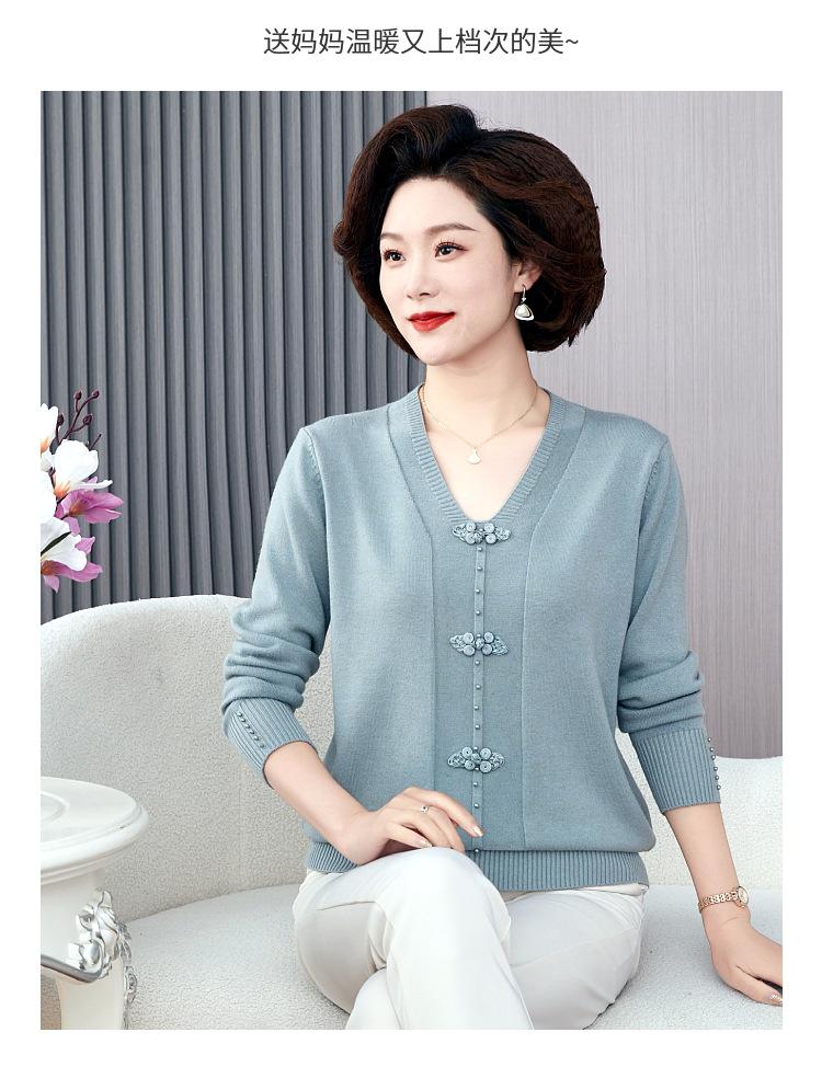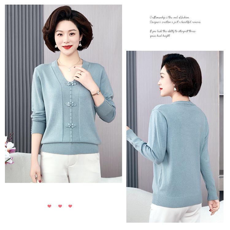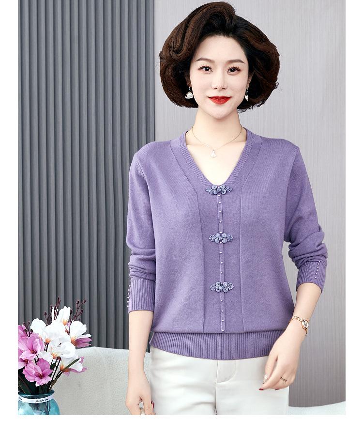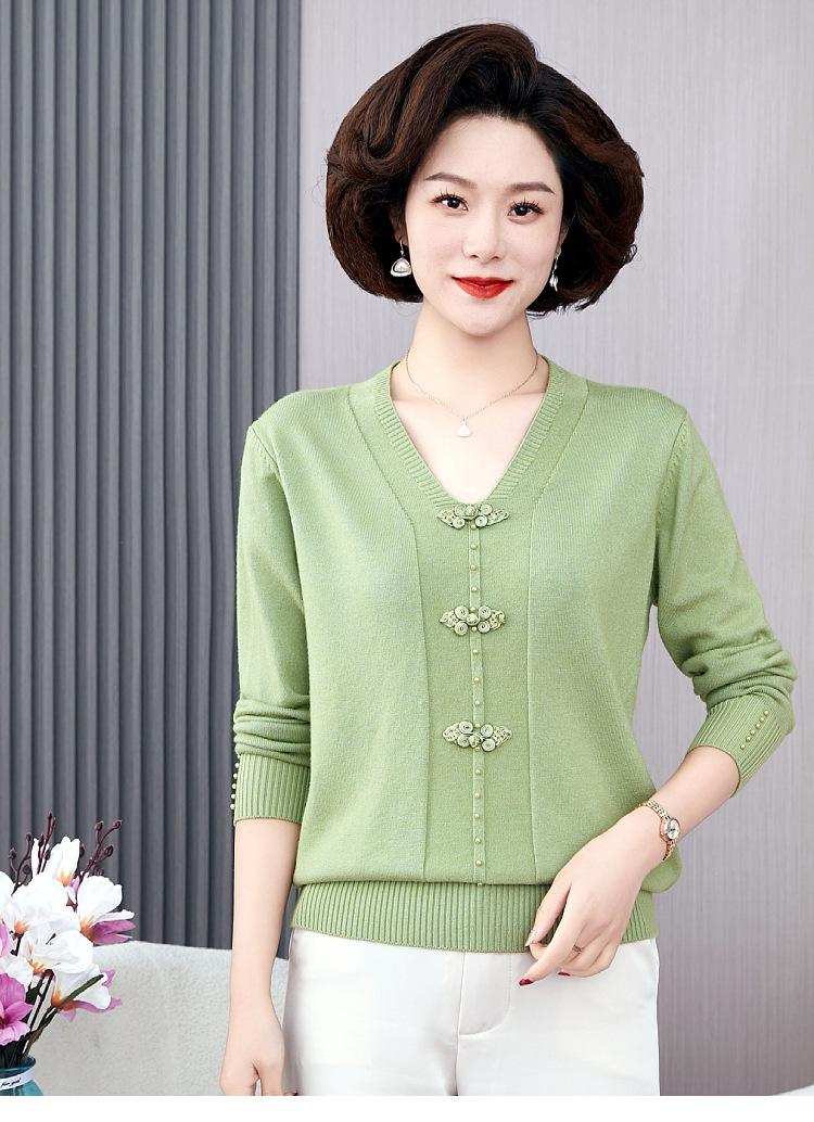Compra Top de punto de primavera para madre de mediana edad estilo occidental suéter delgado de manga larga para mujeres de mediana edad y ancianas para primavera y otoño al por mayor en Joom.pro
