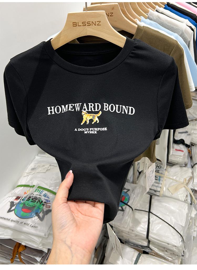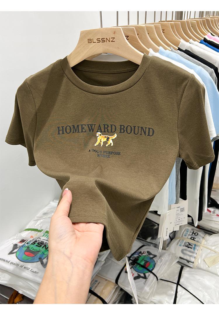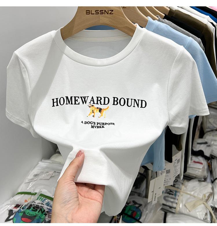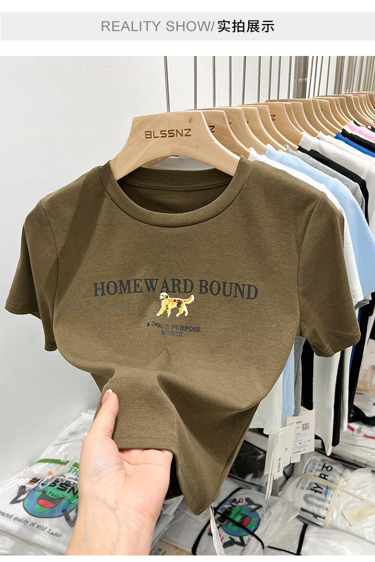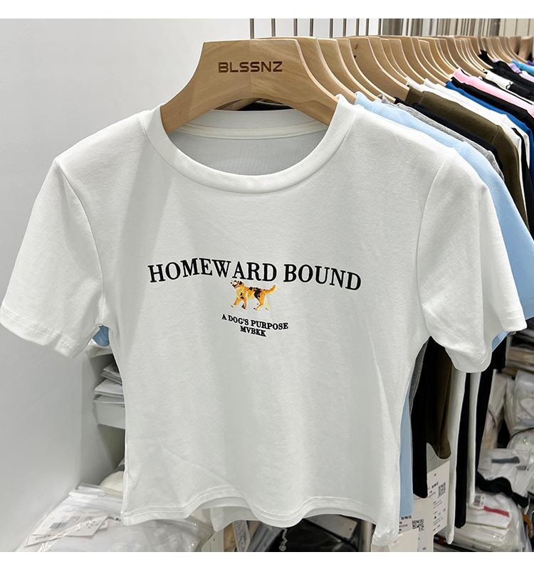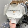 Camiseta de manga corta americana, dulce y sexy, para mujer, corte entallado, novedad de verano 2023, camiseta corta estampada estilo Hong Kong, moderna y chic.