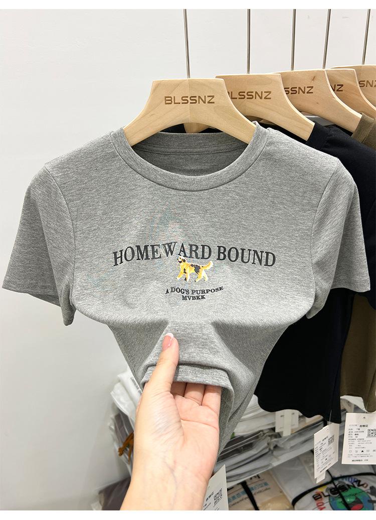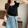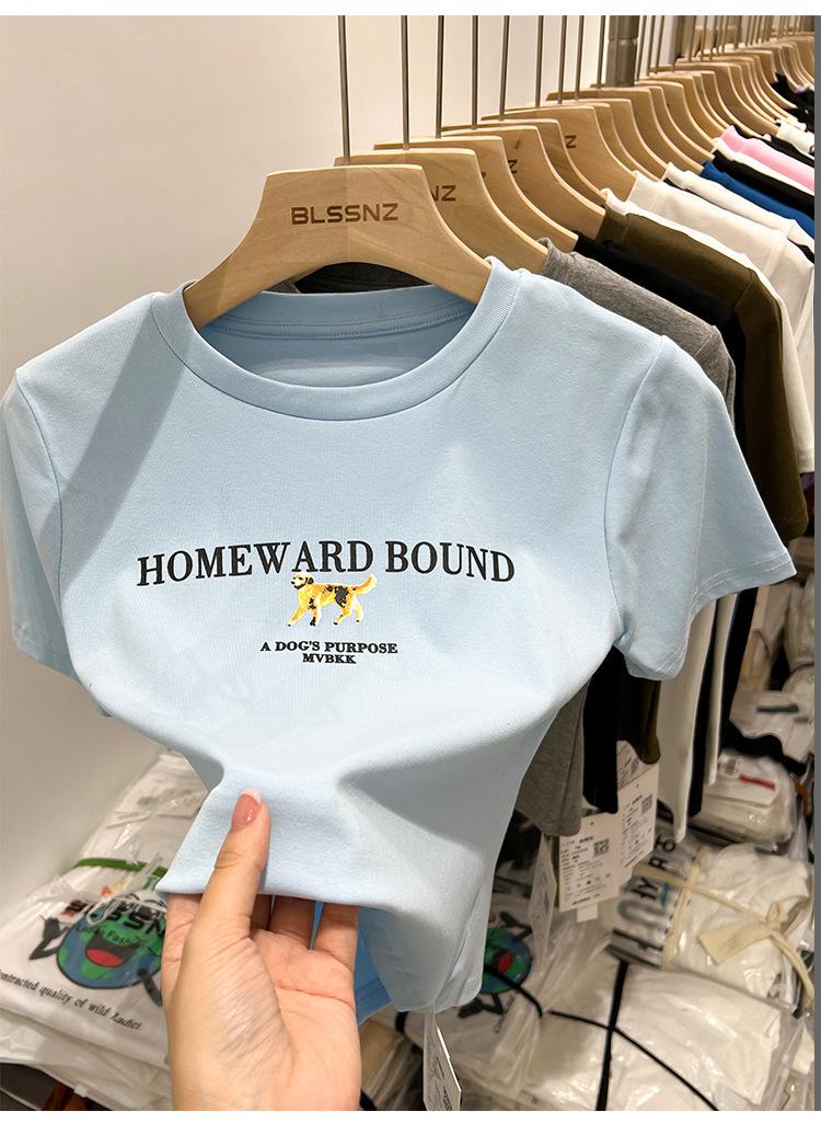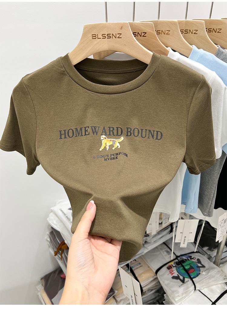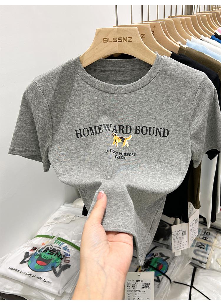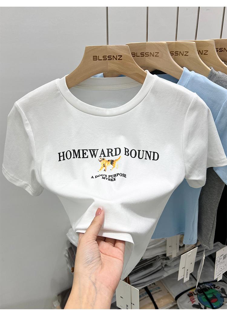Camiseta de manga corta americana, dulce y sexy, para mujer, corte entallado, novedad de verano 2023, camiseta corta estampada estilo Hong Kong, moderna y chic.