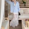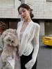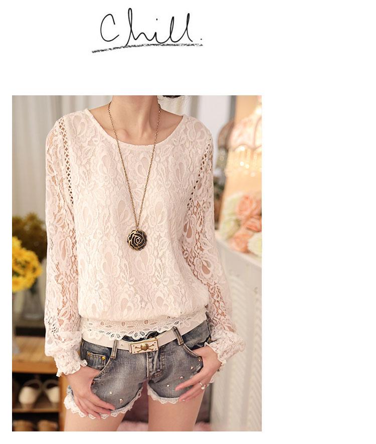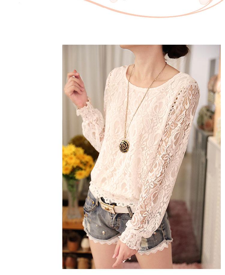 2 023 Otoño Nueva Chaqueta de Manga Larga para Mujer Camisa Ajustada con Temperamento y Costura de Encaje Camisa con Base de Encaje Hueca para Mujer