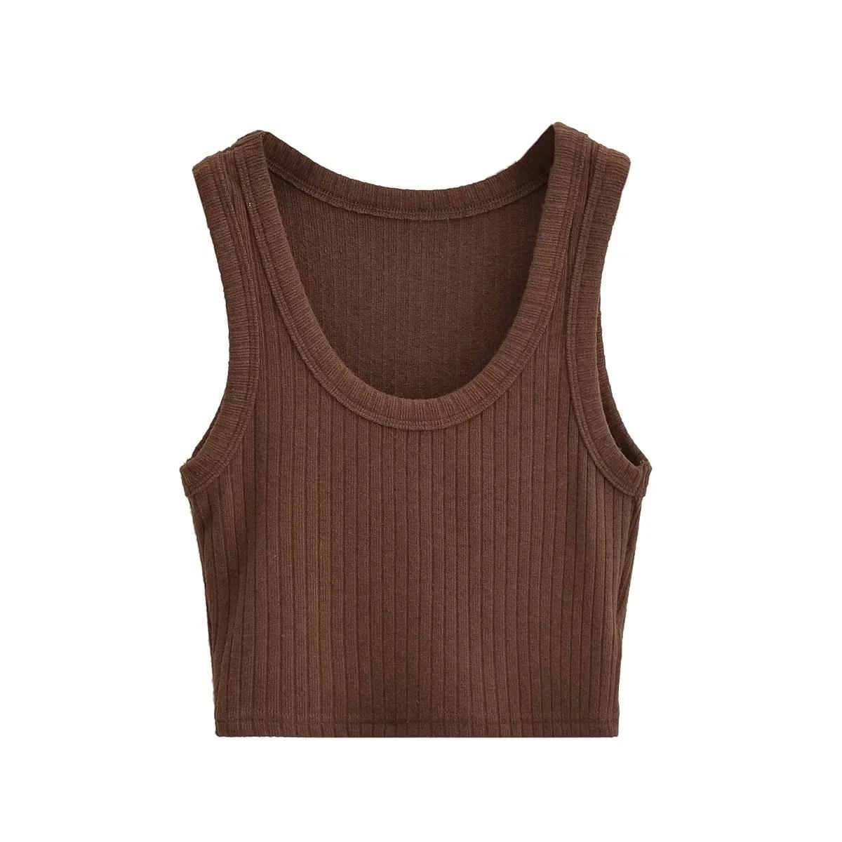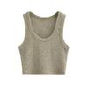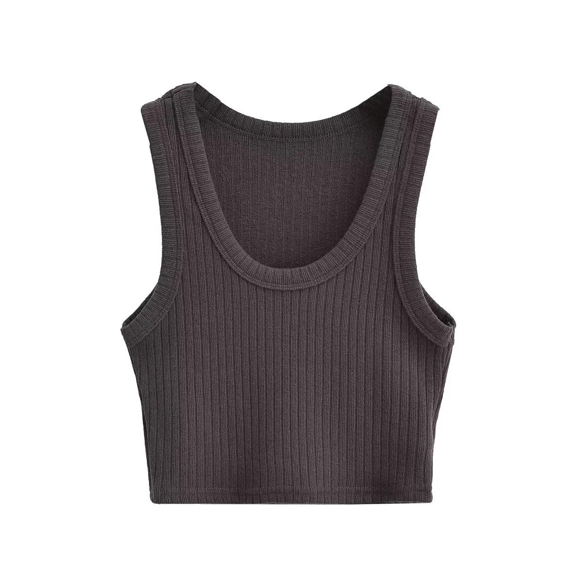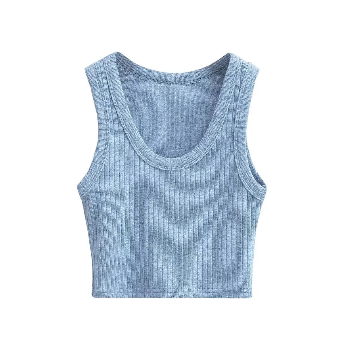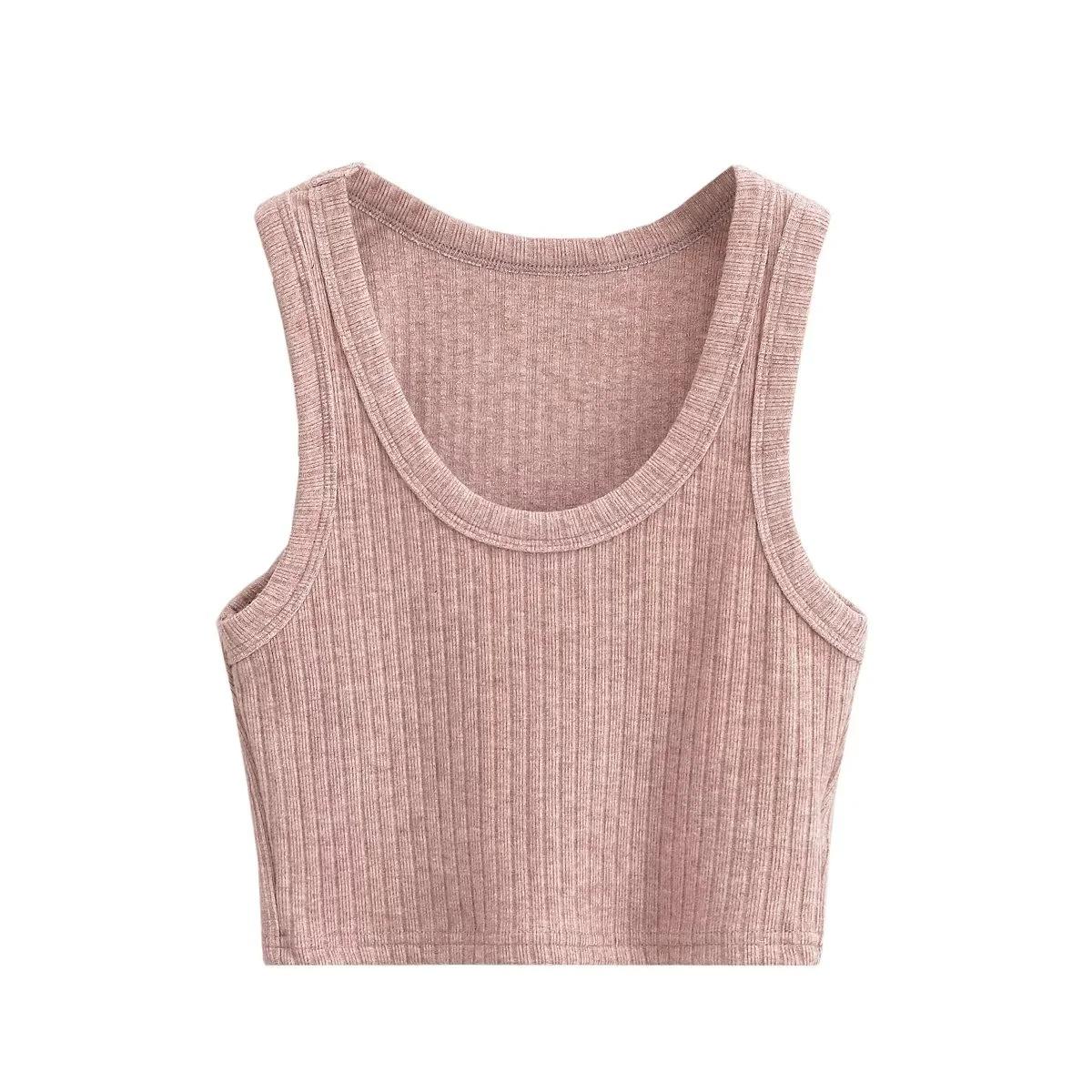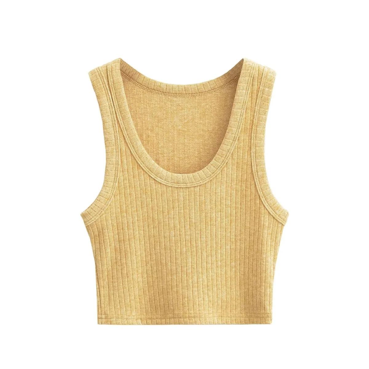 Camiseta de tirantes corta entallada de estilo americano con forma de U, color liso, para mujer, novedad de 2023, con tiras de cachemira y ombligo al descubierto