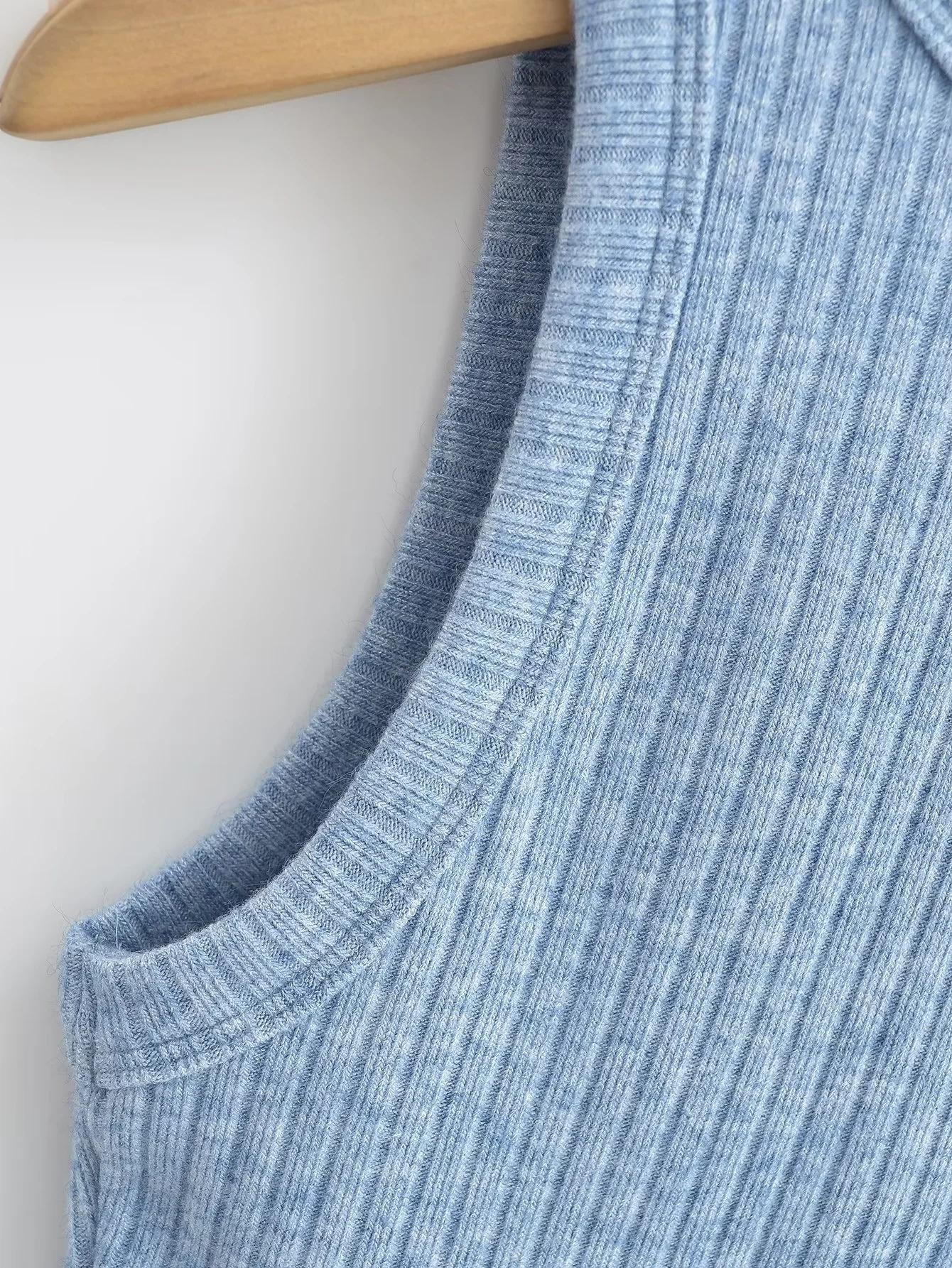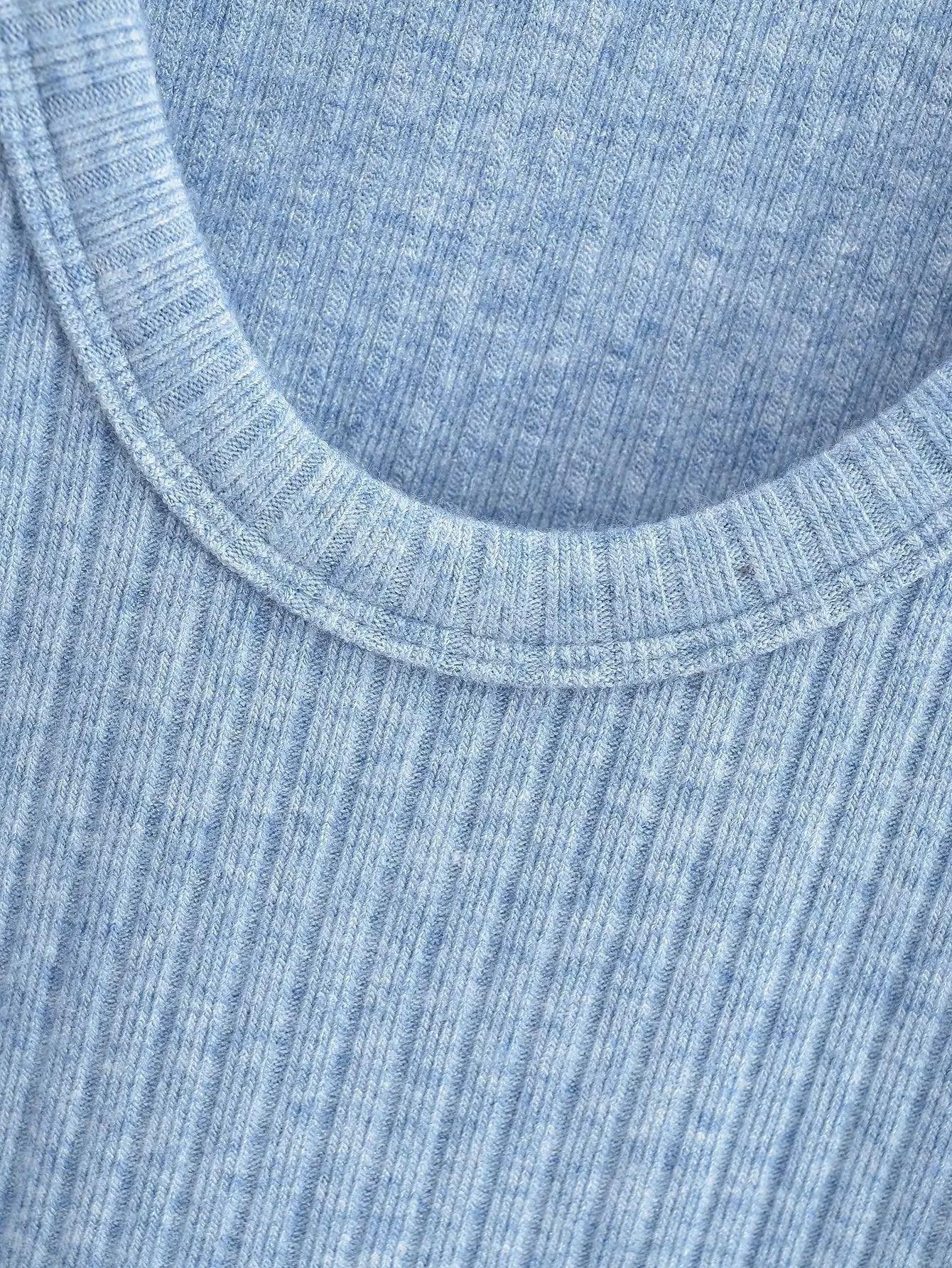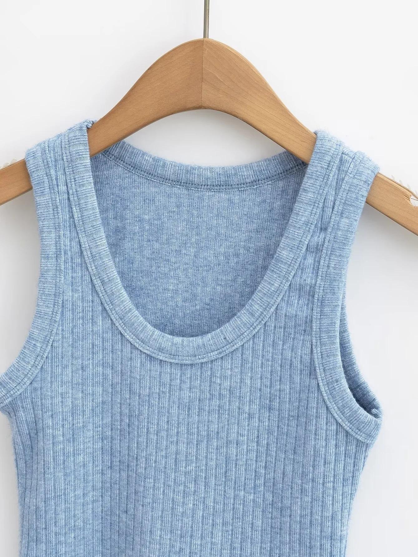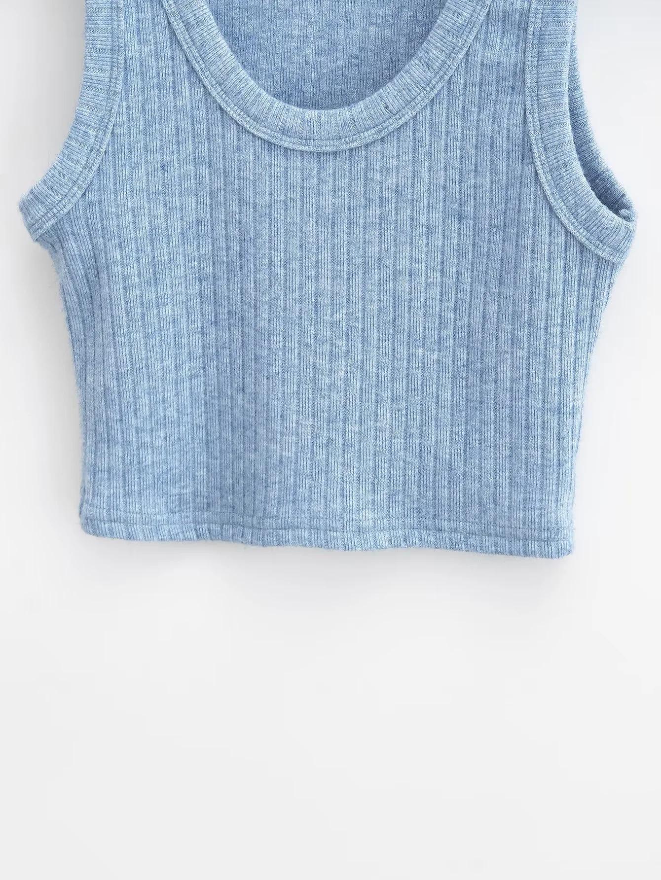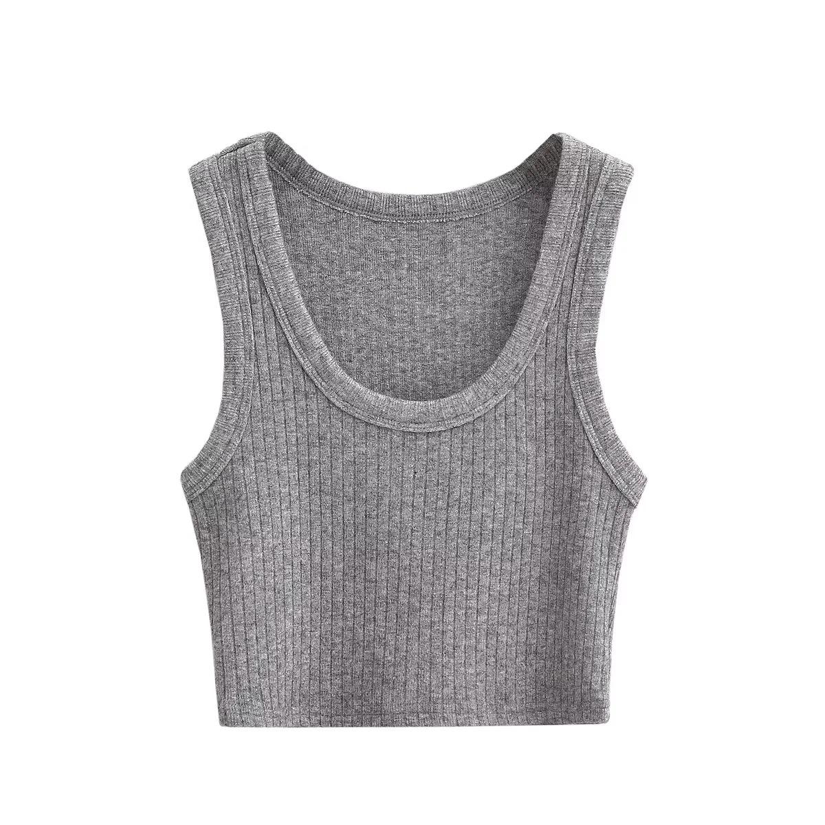 Camiseta de tirantes corta entallada de estilo americano con forma de U, color liso, para mujer, novedad de 2023, con tiras de cachemira y ombligo al descubierto