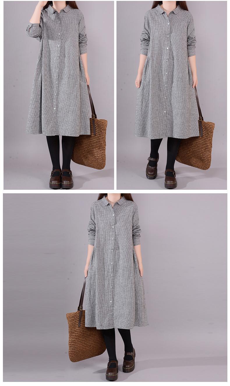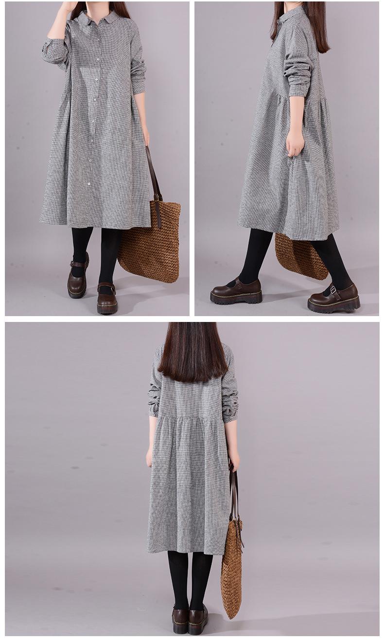 Compra Otoño Nuevo Estilo 2025 Estilo Coreano Talla Grande para Mujer Camisa de Moda a Cuadros de Manga Larga de Largo Medio Falda Camisa para Fondo al por mayor en Joom.pro