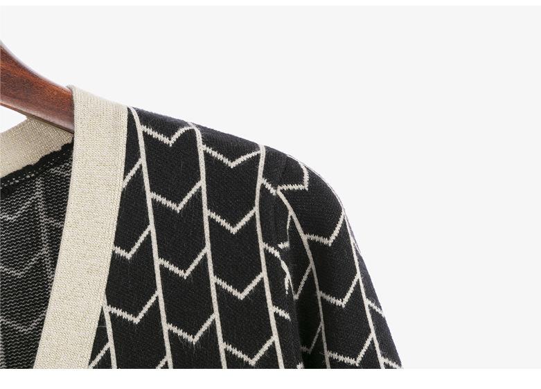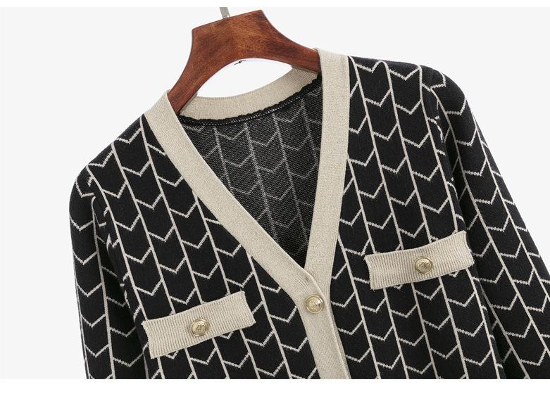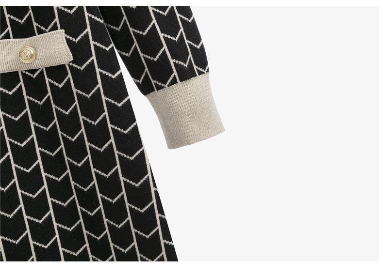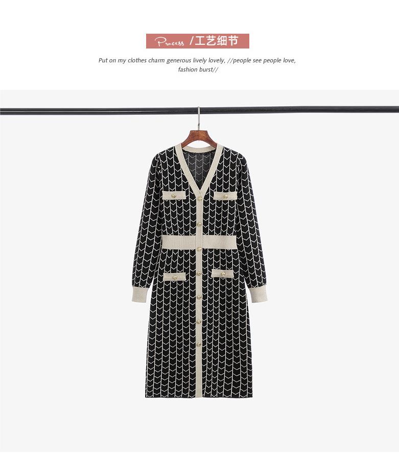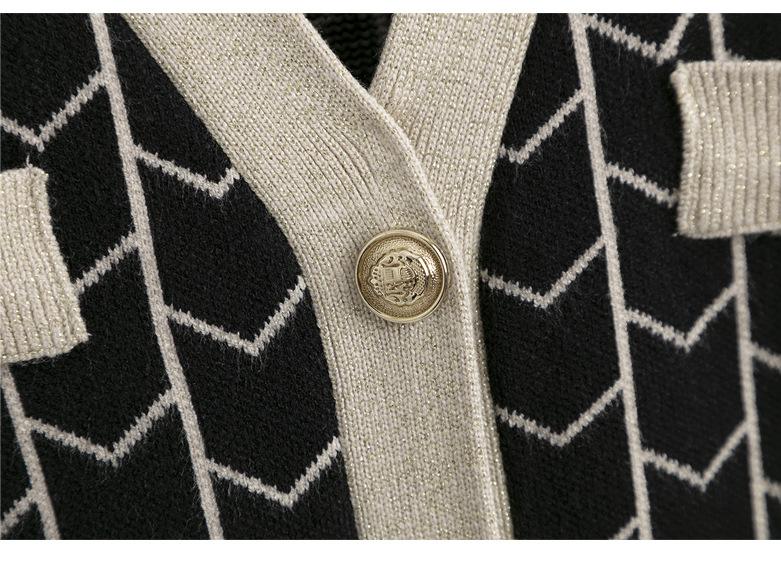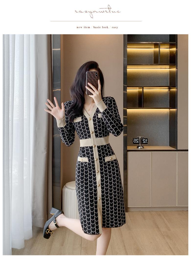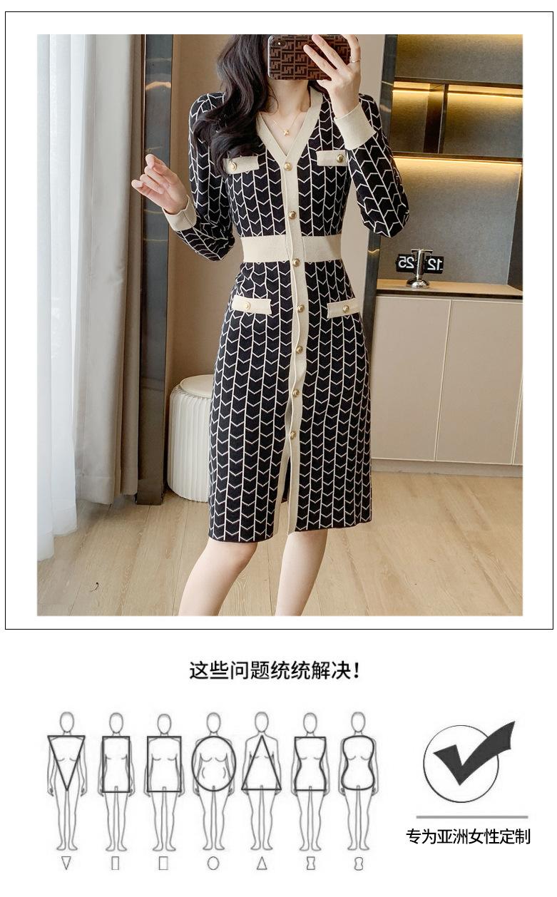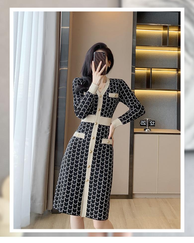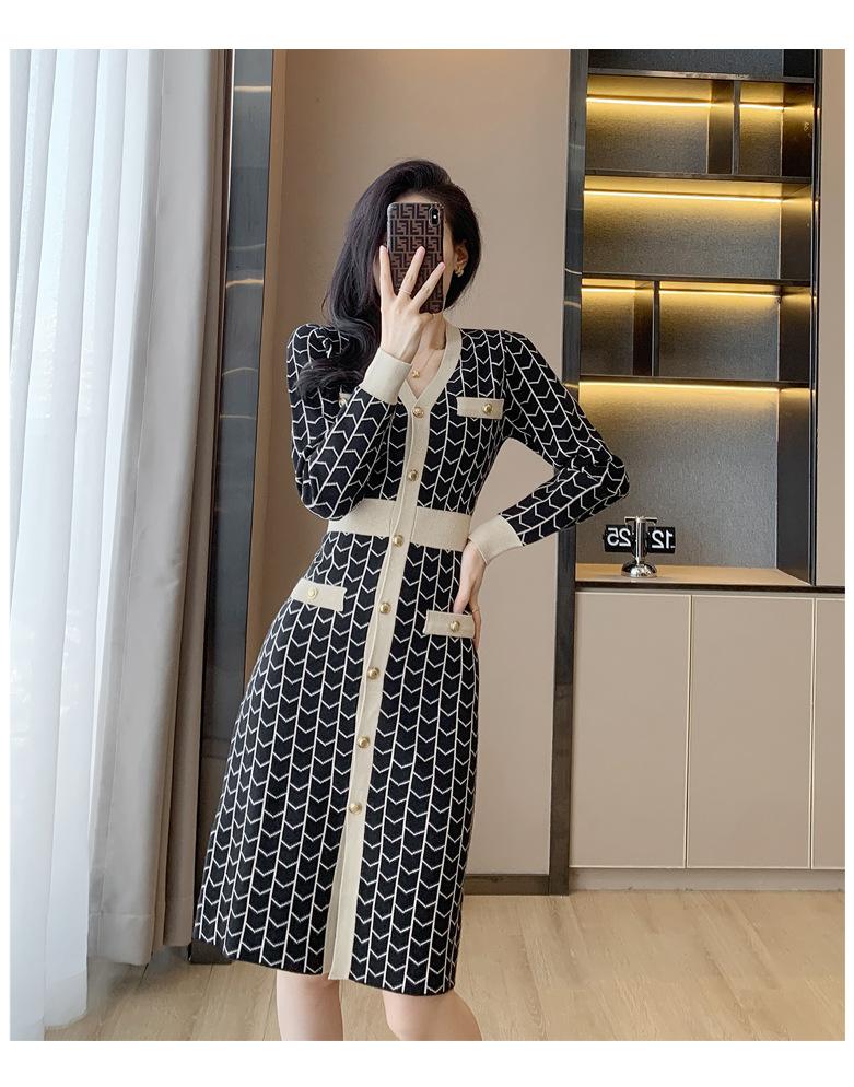 V-neck, Color splicing, Fashion, Color Contrast, Jacquard, Buttons, Tighten your waist, Simple