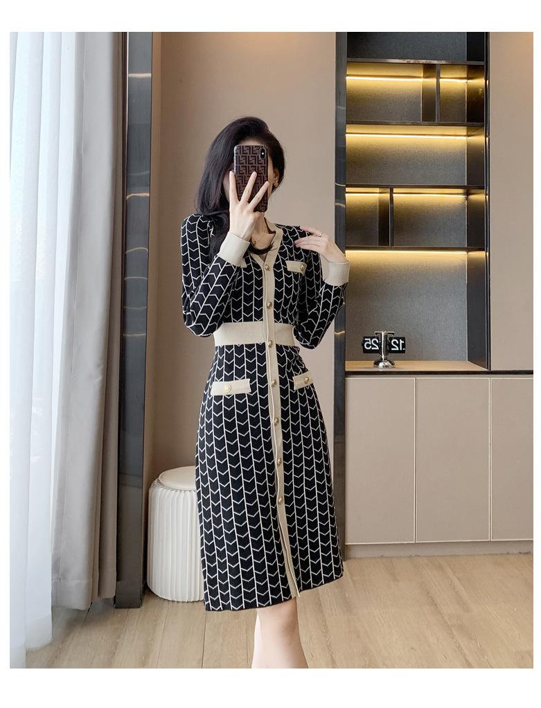 Compra Vestido de Punto de Celebridad para Mujer 2025 Invierno Nuevo Estilo Seda Brillante Manga Larga Falda Larga Línea A con Falda Suéter Pequeño Fragante al por mayor en Joom.pro