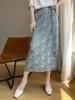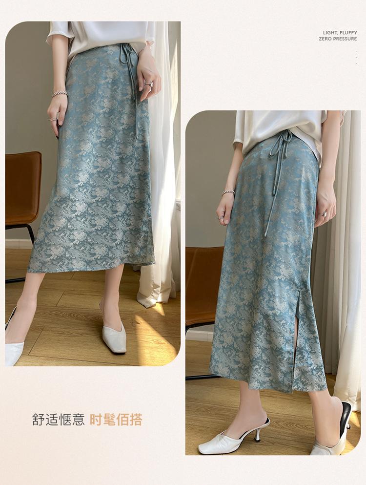 Falda Nueva Estilo Chino Transfronterizo Imitación Seda de Hielo 2025 Primavera Nuevo Retro Línea A Media Longitud Falda Larga Verano