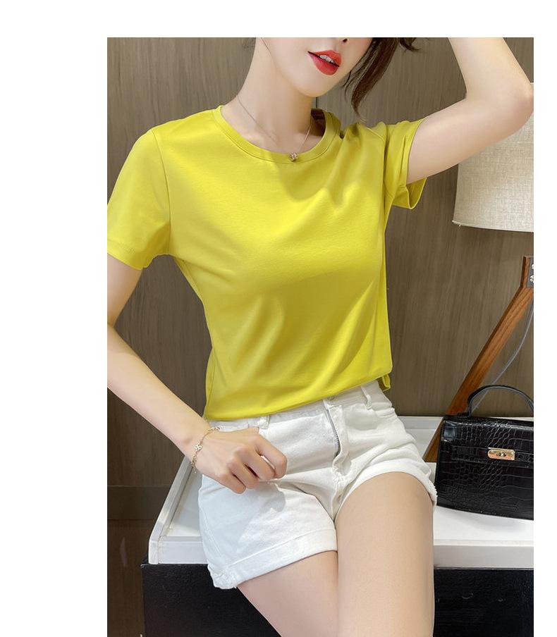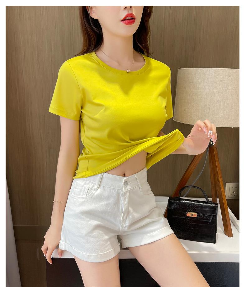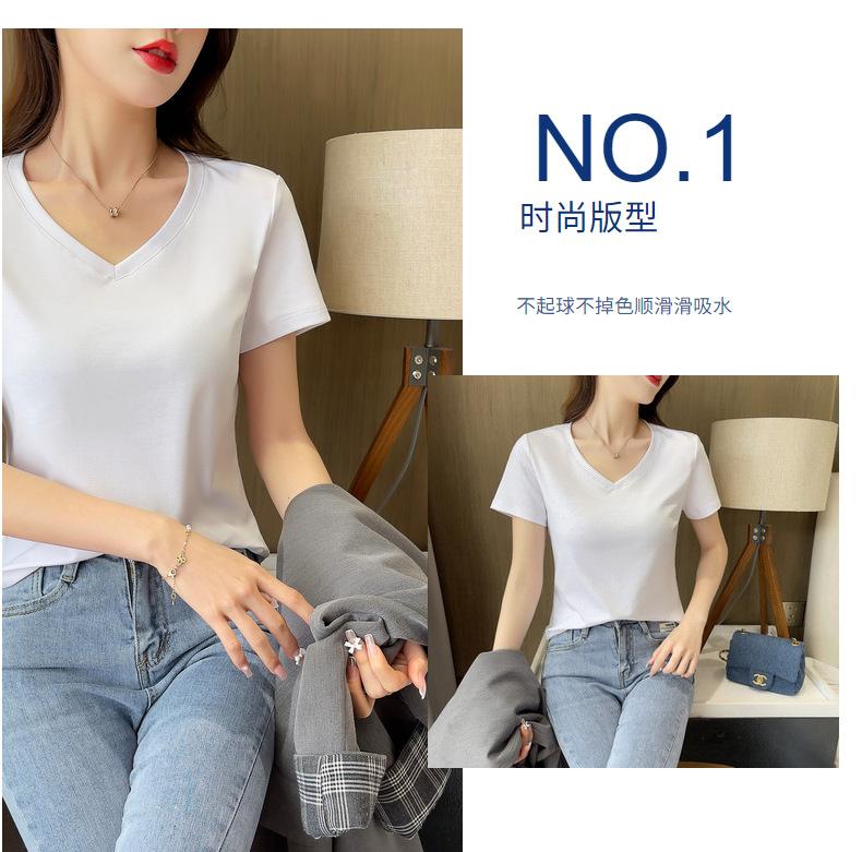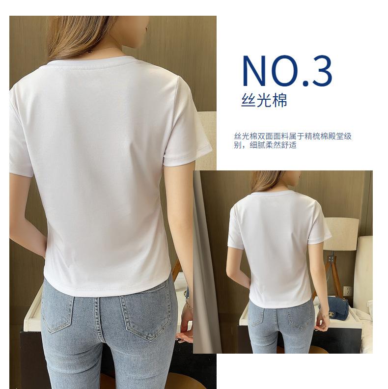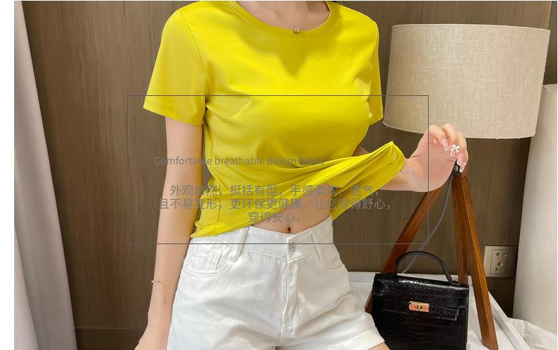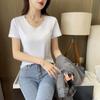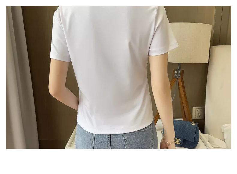 Camiseta Blanca para Mujer Algodón Mercerizado 80 Hilos Primavera y Verano 2023 Simple Manga Corta Cuello Redondo Interior Slim Camiseta Top