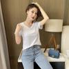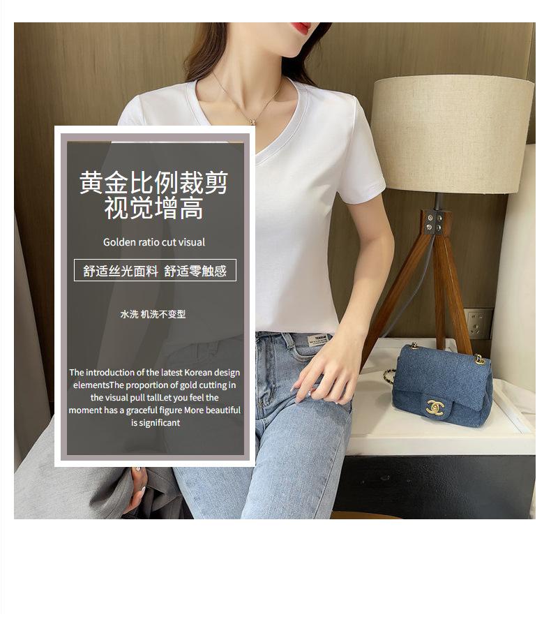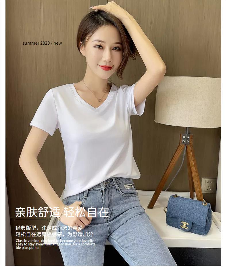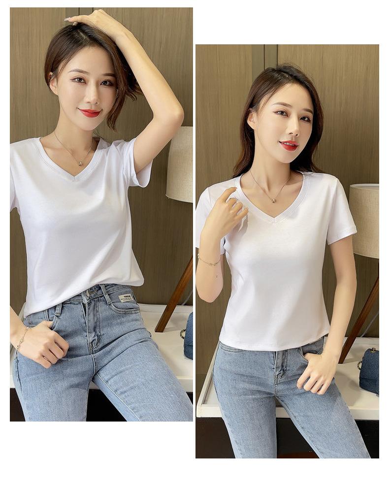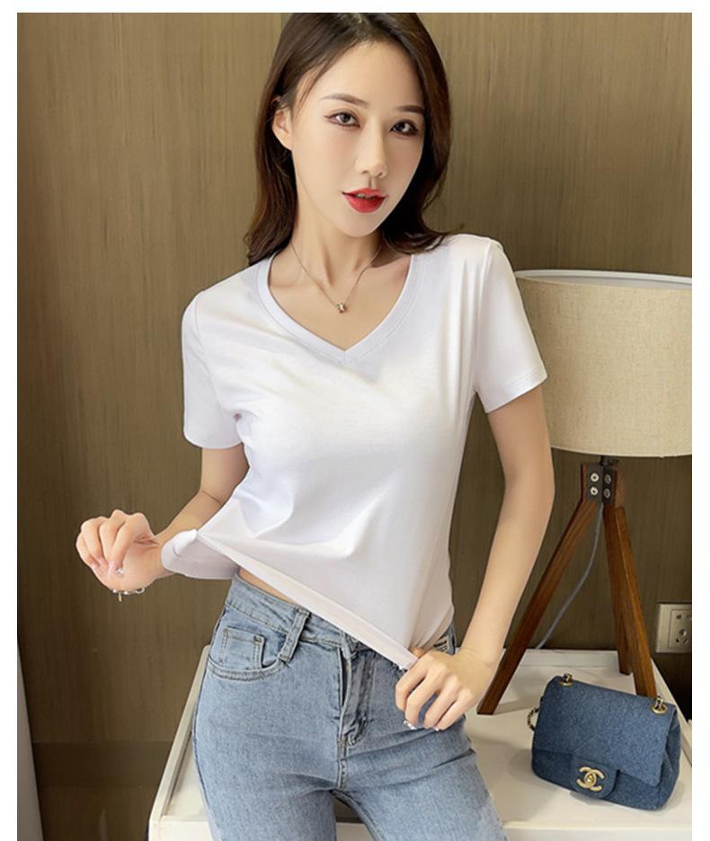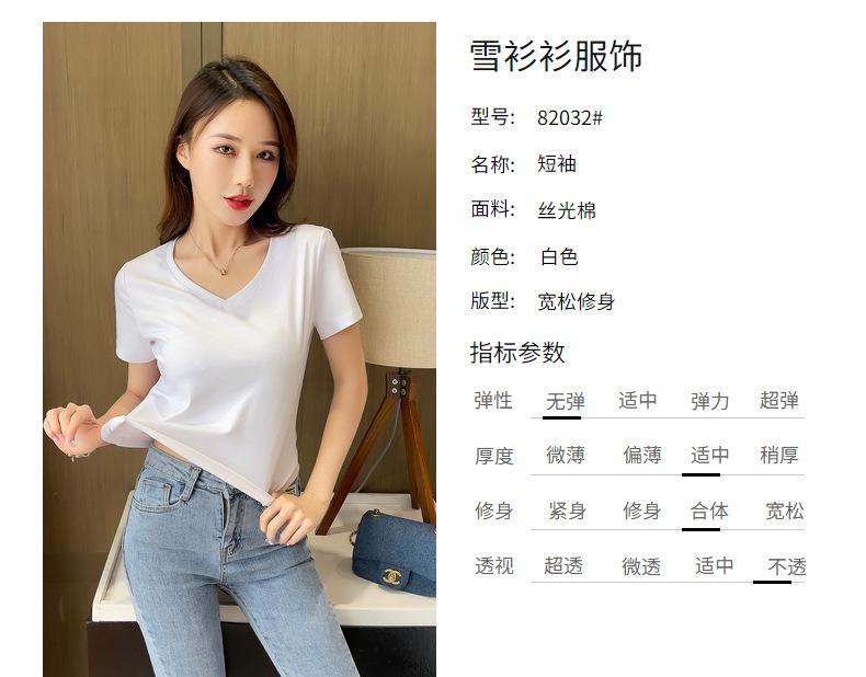 Camiseta Blanca para Mujer Algodón Mercerizado 80 Hilos Primavera y Verano 2023 Simple Manga Corta Cuello Redondo Interior Slim Camiseta Top