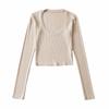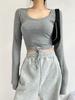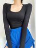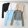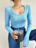 Camiseta de cuello grande de color liso para mujer, moda europea y americana de principios de otoño, top ajustado de manga larga C11942