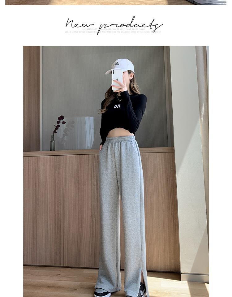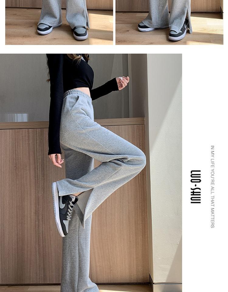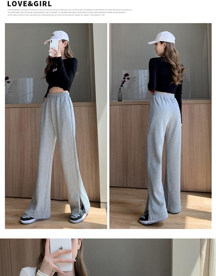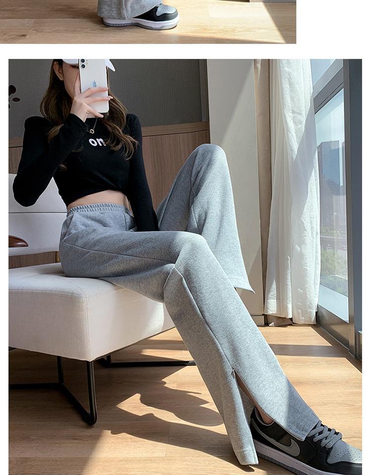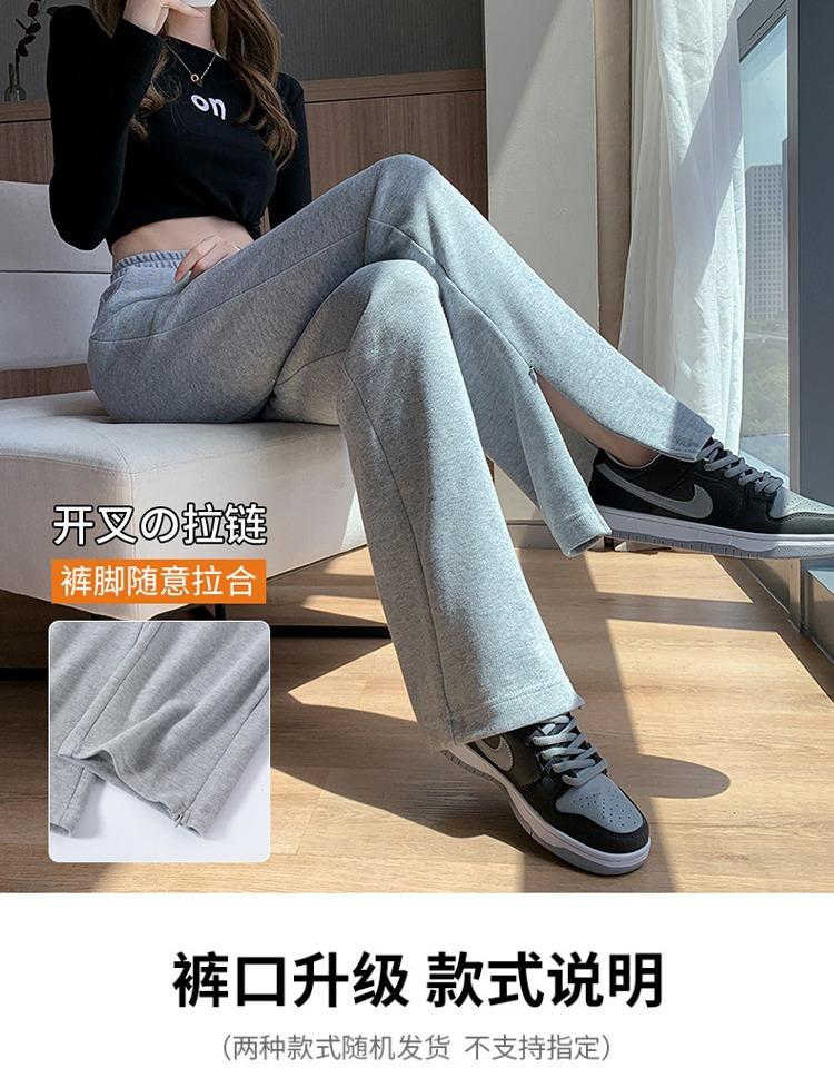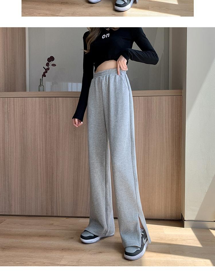 Pantalones anchos con abertura gris para mujer, primavera y otoño, holgados, adelgazantes, de cintura alta, con caída pequeña, pantalones deportivos rectos casuales