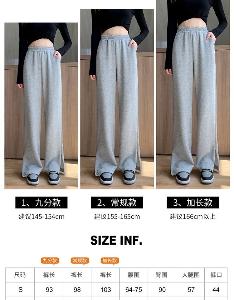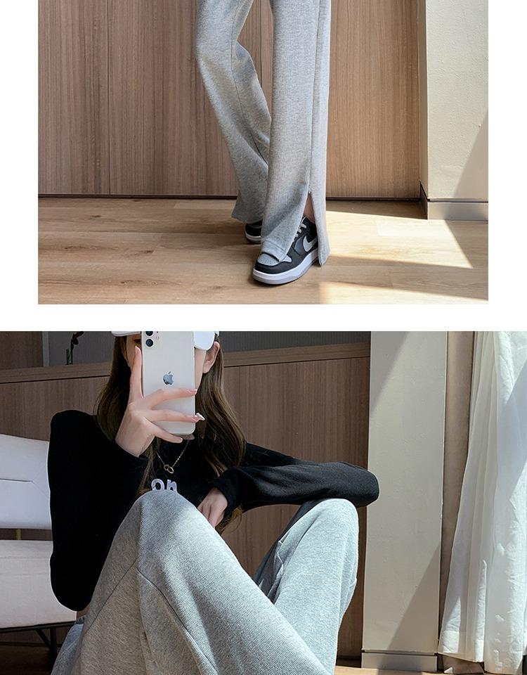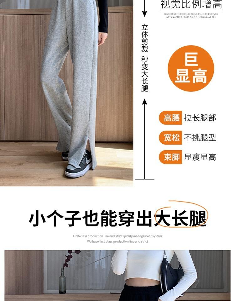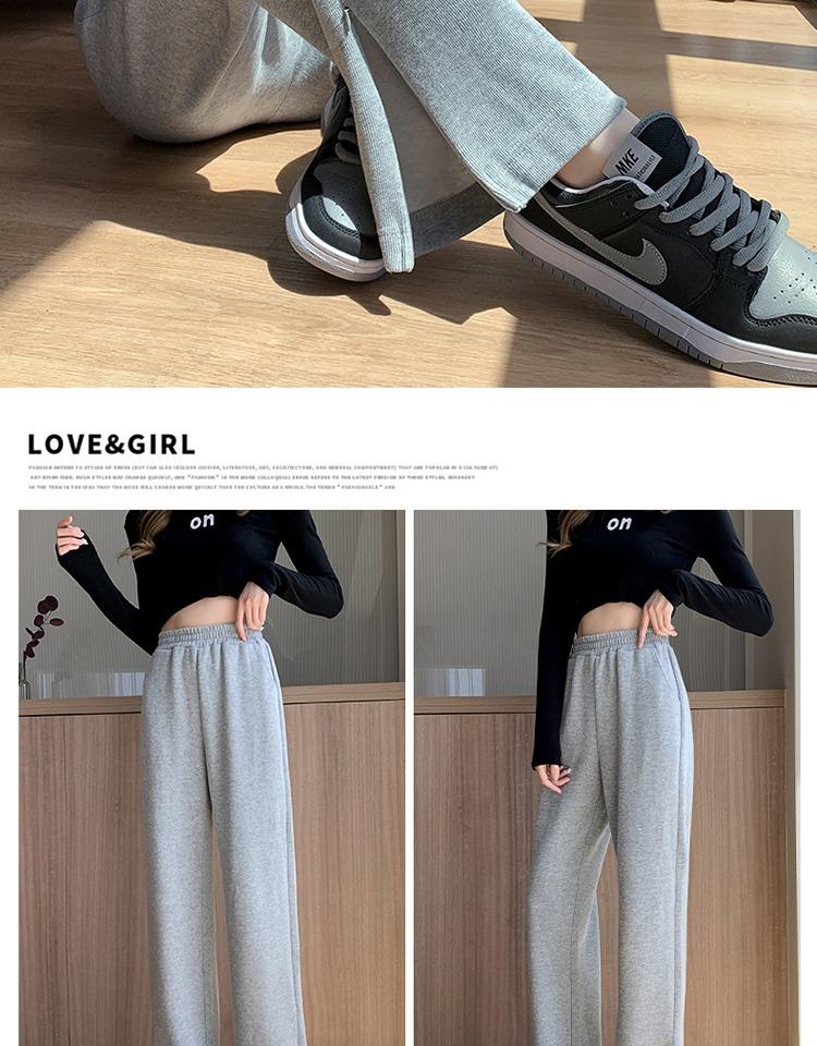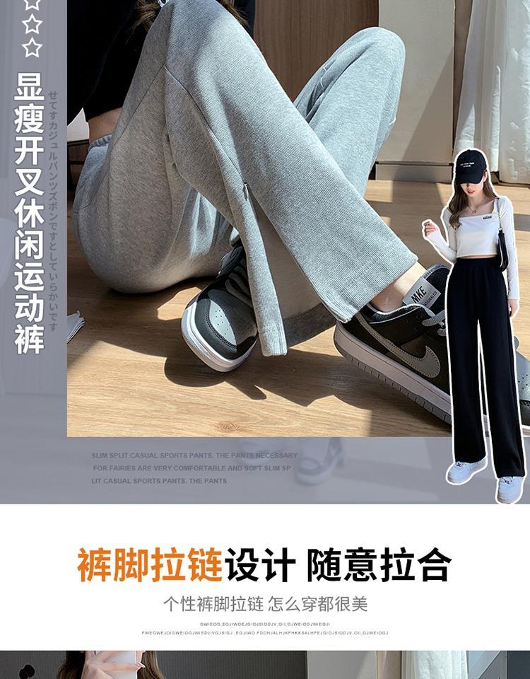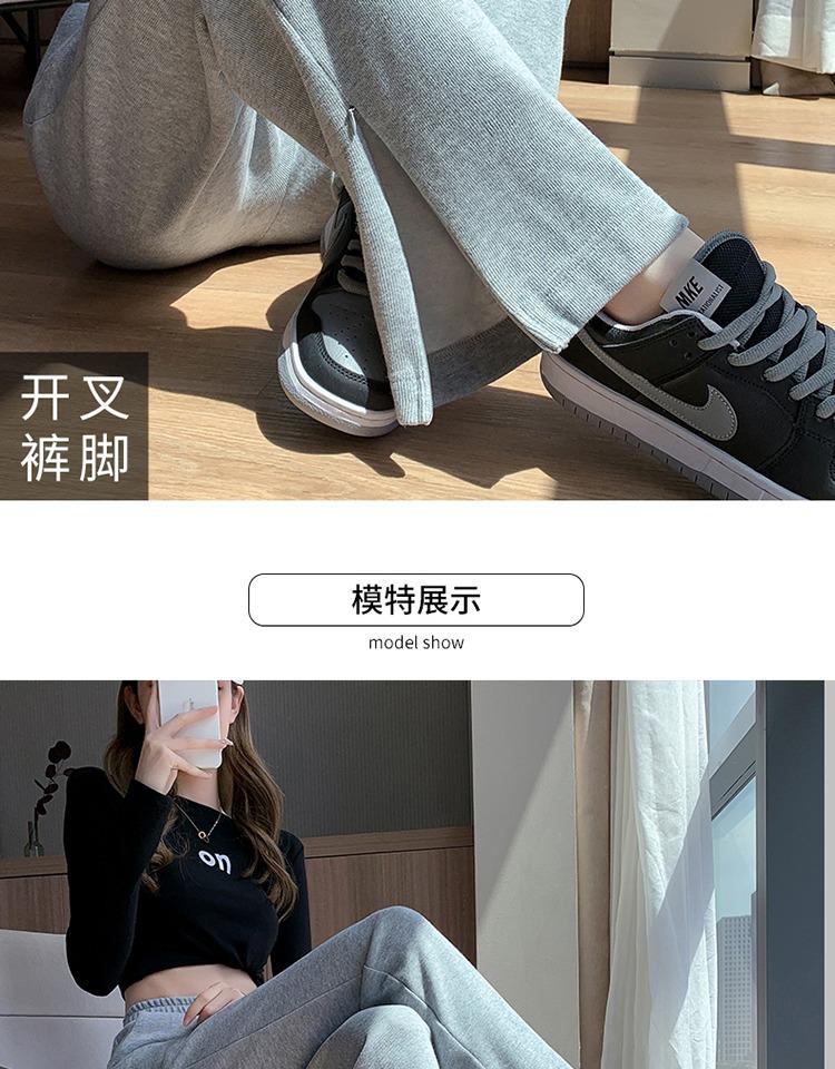 Pantalones anchos con abertura gris para mujer, primavera y otoño, holgados, adelgazantes, de cintura alta, con caída pequeña, pantalones deportivos rectos casuales