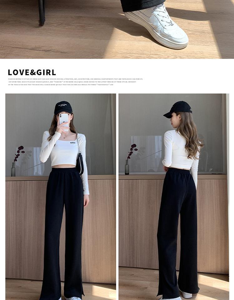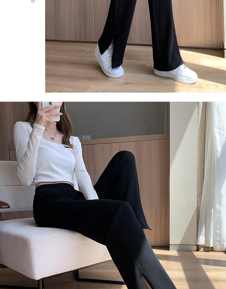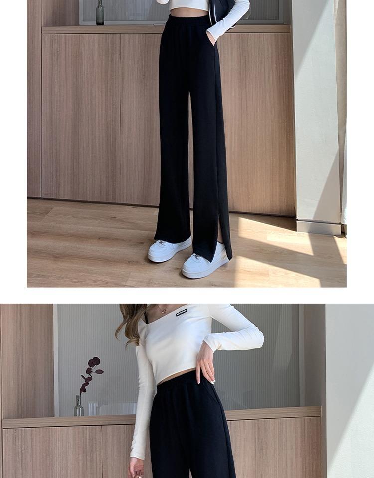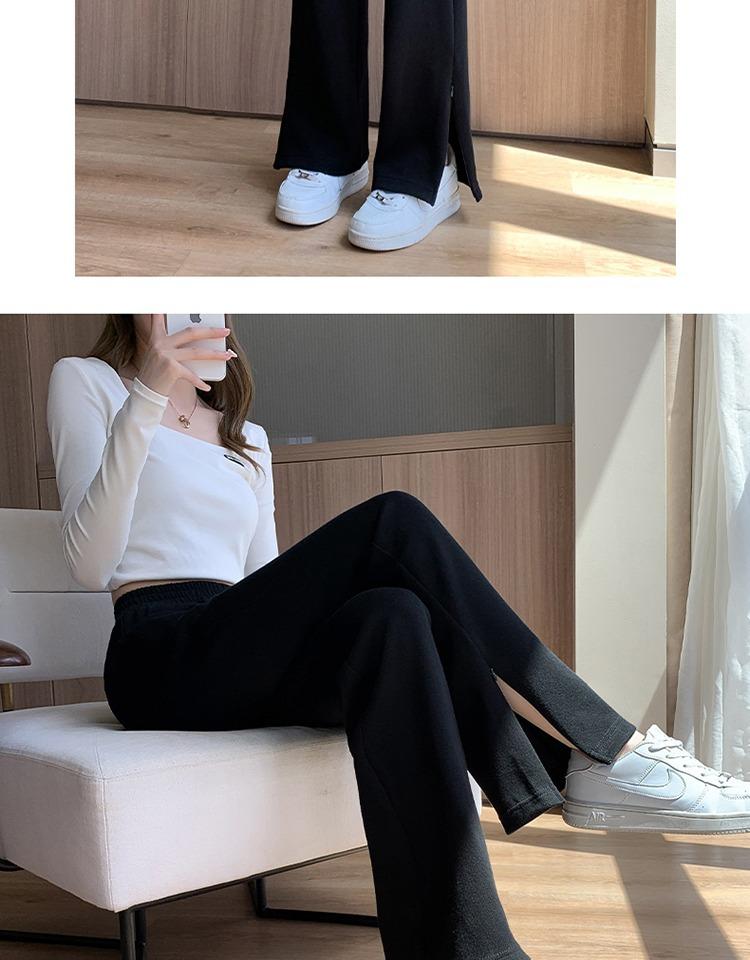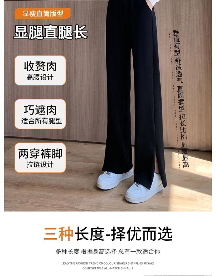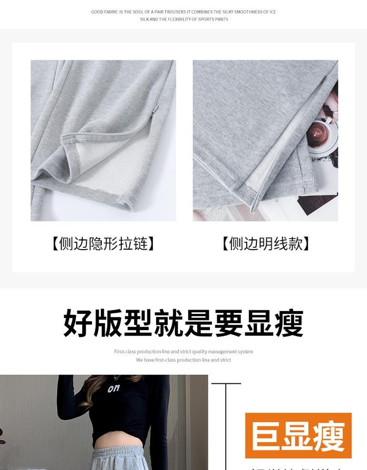 Pantalones anchos con abertura gris para mujer, primavera y otoño, holgados, adelgazantes, de cintura alta, con caída pequeña, pantalones deportivos rectos casuales