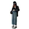 Falda vaquera de cintura alta para mujer, falda corta de longitud media, corte A, con costuras y abertura en la cadera, primavera de 2023