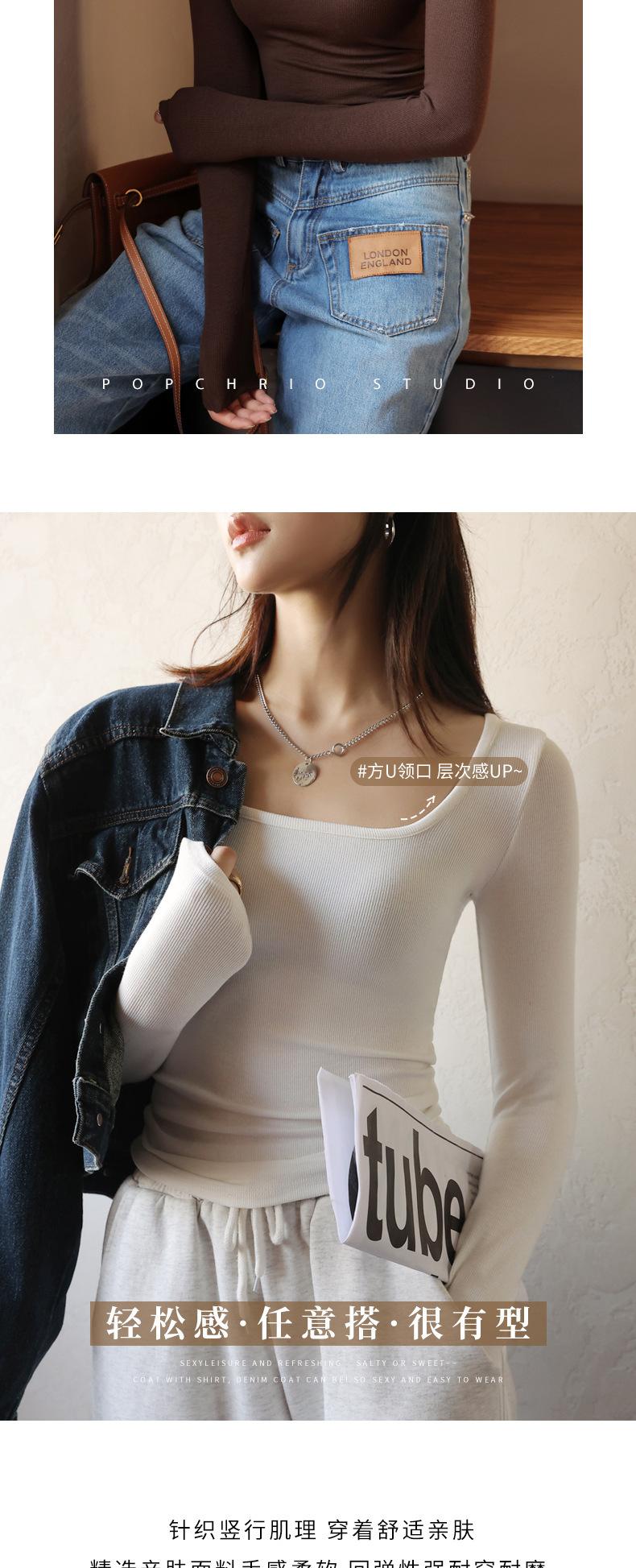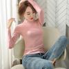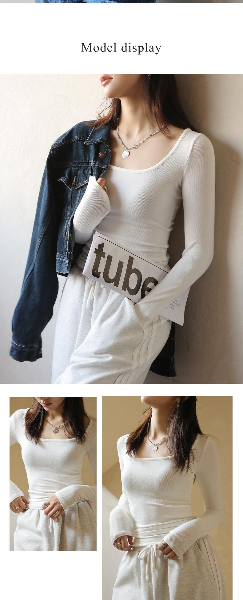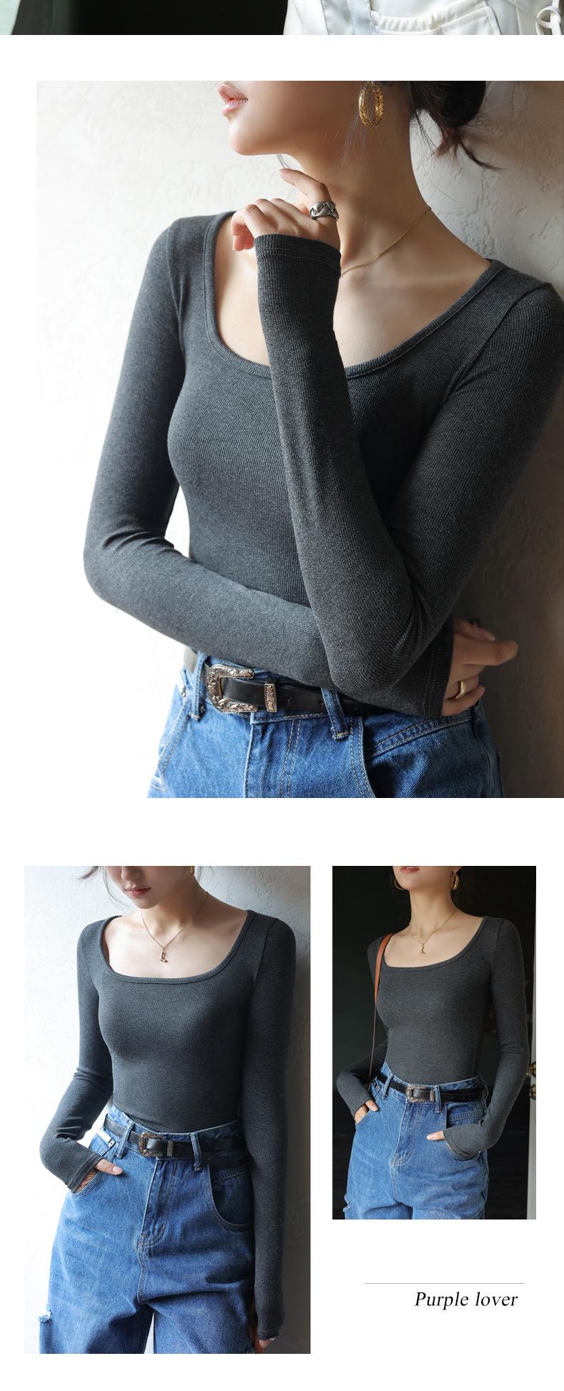 Camiseta de cuello bajo para mujer, estilo coreano, manga larga, ajustada, para primavera y otoño de 2024