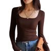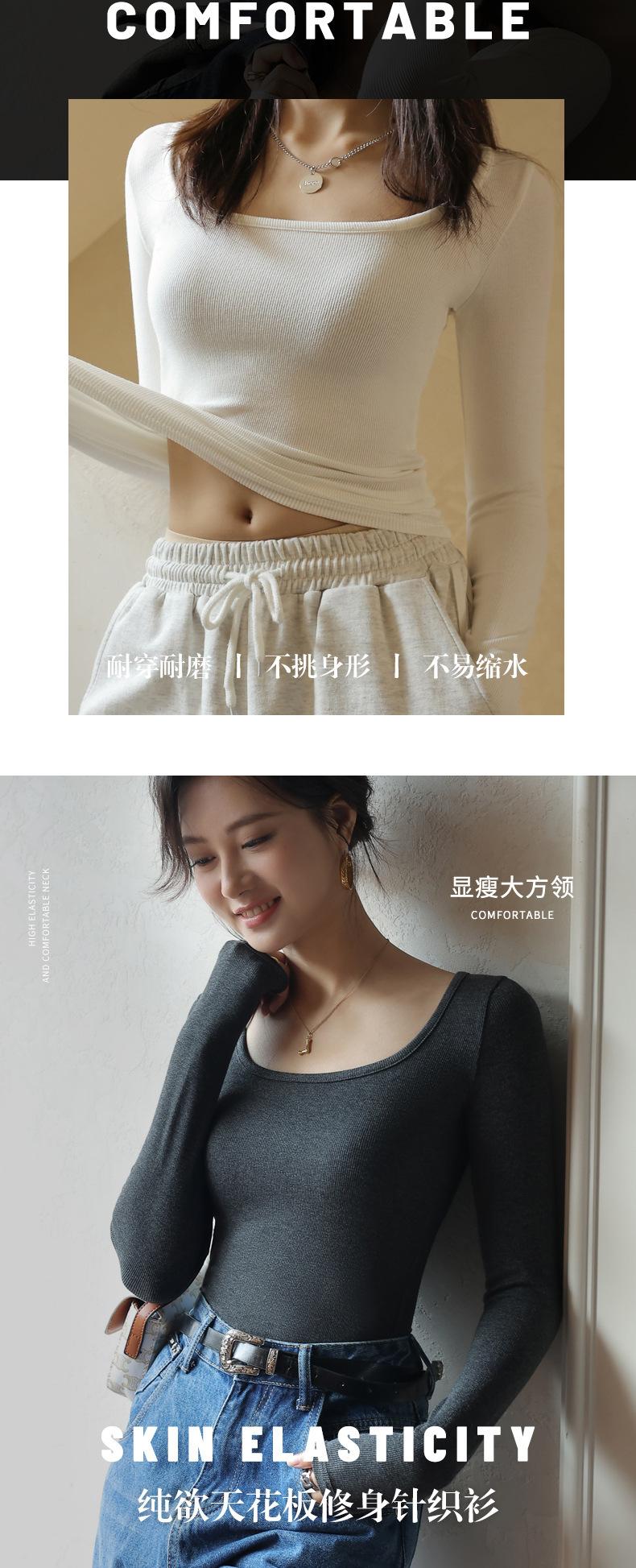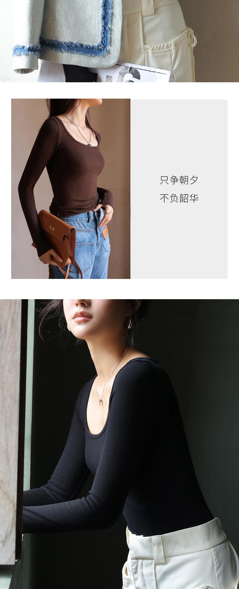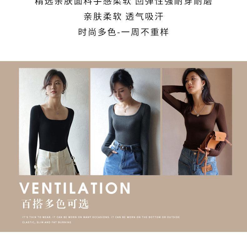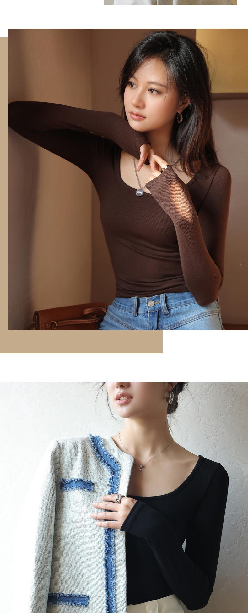 Camiseta de cuello bajo para mujer, estilo coreano, manga larga, ajustada, para primavera y otoño de 2024