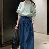 Lo especial de los pantalones anchos hasta el suelo de Tencel con brillo oscuro es que la tela tiene un brillo oscuro discreto y lujoso desde el interior hacia el exterior.