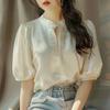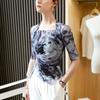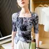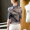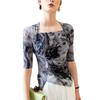 Diseño Sense, dobladillo irregular, cintura ajustada, primavera y verano, nuevo, retro, cuello colgante, cuello cuadrado, manga media, top con estampado de malla