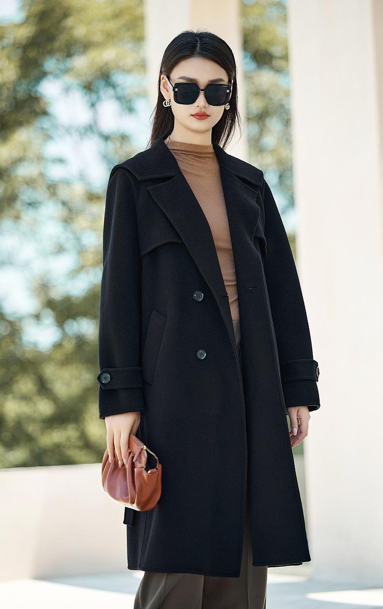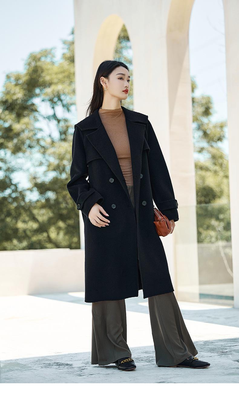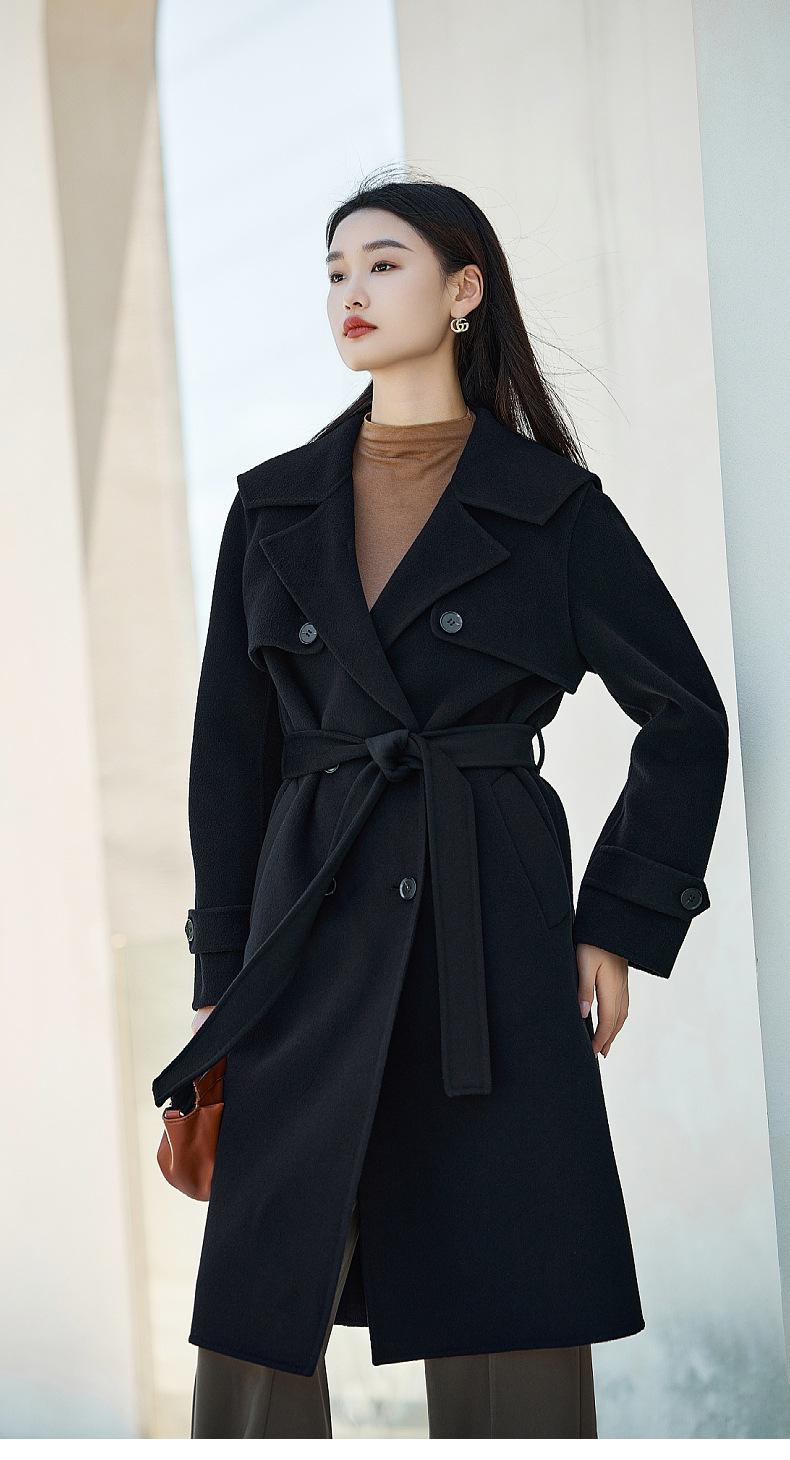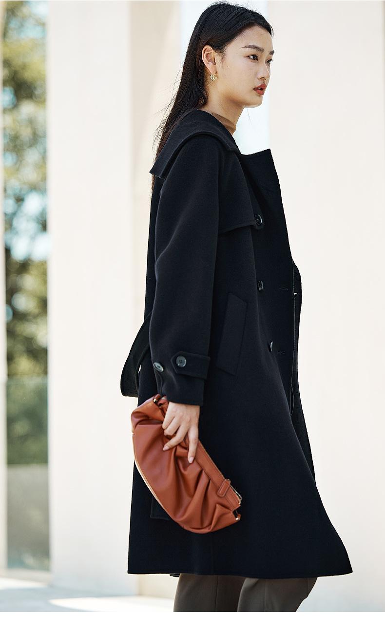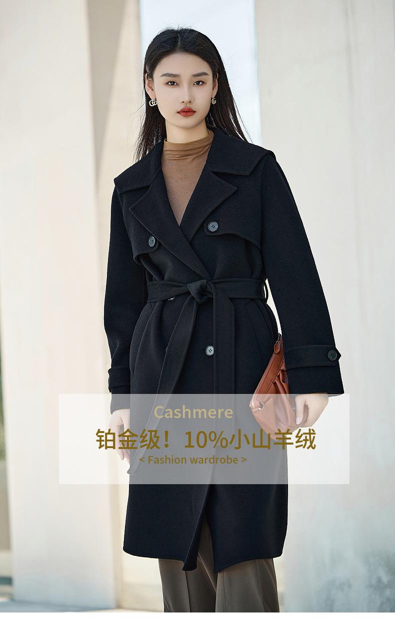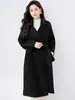 Abrigo de lana de doble cara de cachemira al 10% para mujer, abrigo de lana de cuello grande de color liso de otoño e invierno de longitud media pequeña en stock