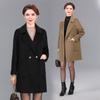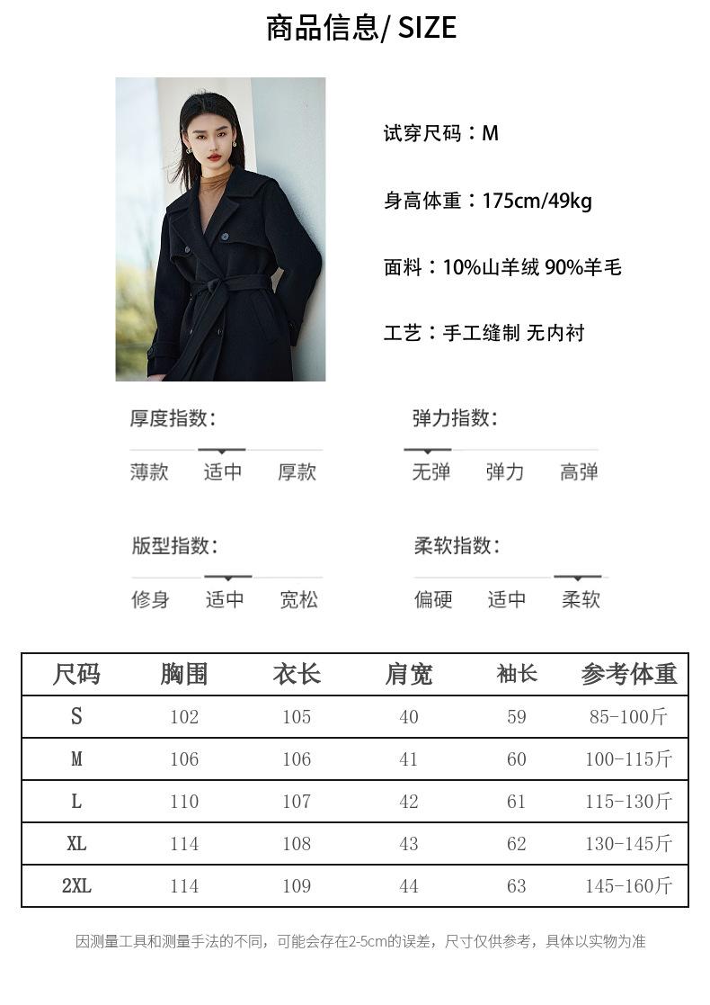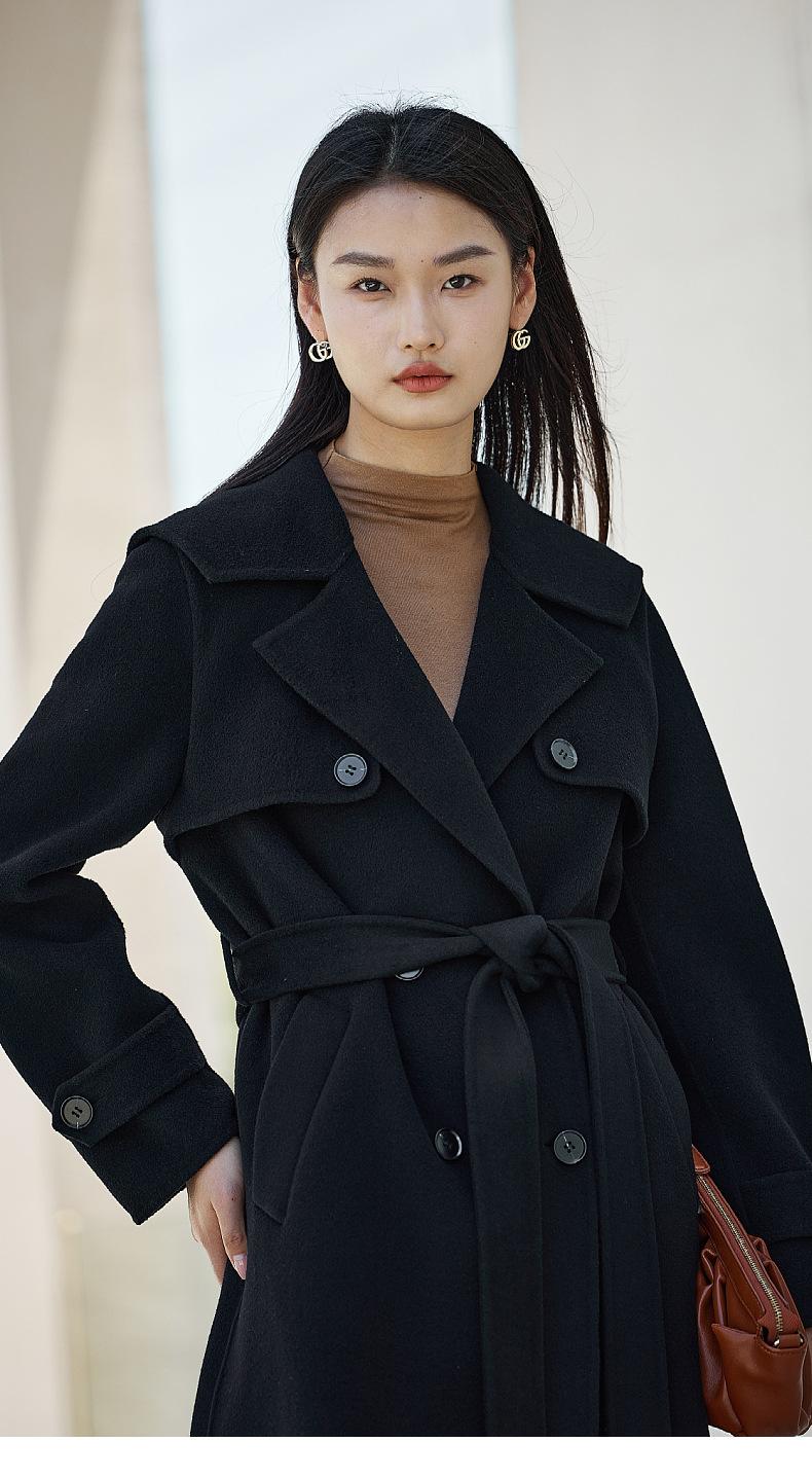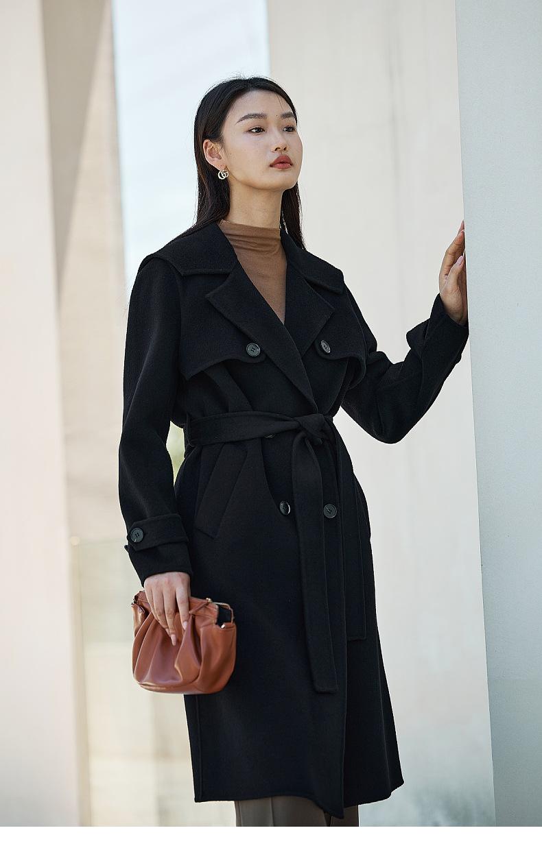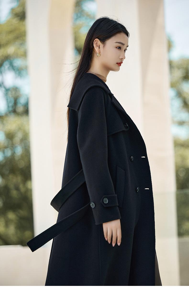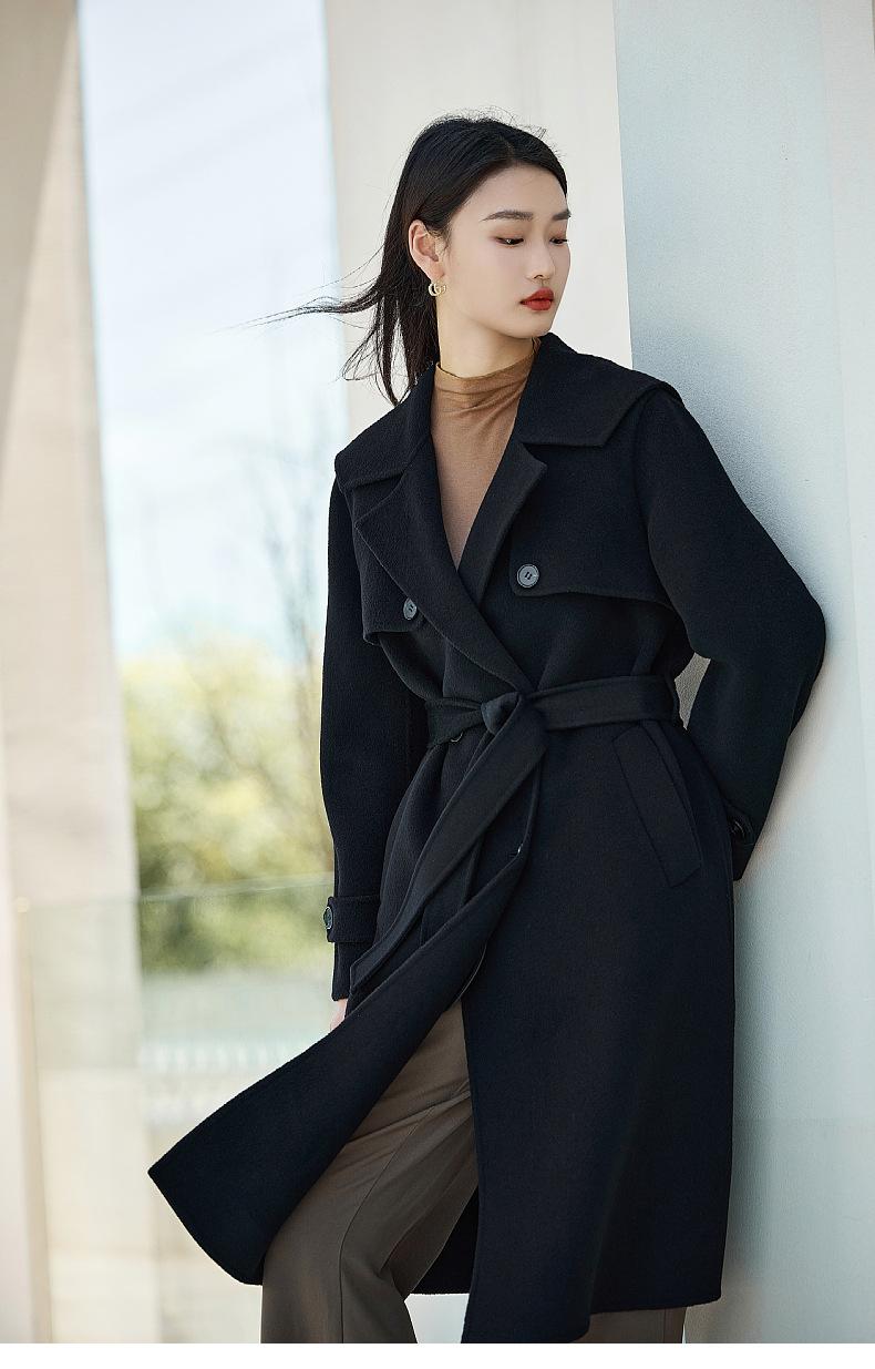 Abrigo de lana de doble cara de cachemira al 10% para mujer, abrigo de lana de cuello grande de color liso de otoño e invierno de longitud media pequeña en stock