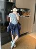 Traje Elegante de Moda Nicho Abertura Camiseta de Manga Corta Falda Línea A de Verano para Mujer Conjunto de Dos Piezas de Falda Corta