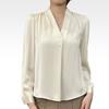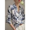 Blusa de seda brillante con cuello en V y estampado tie-dye para mujer, manga larga, otoño 2023, nueva camisa adelgazante de estilo occidental
