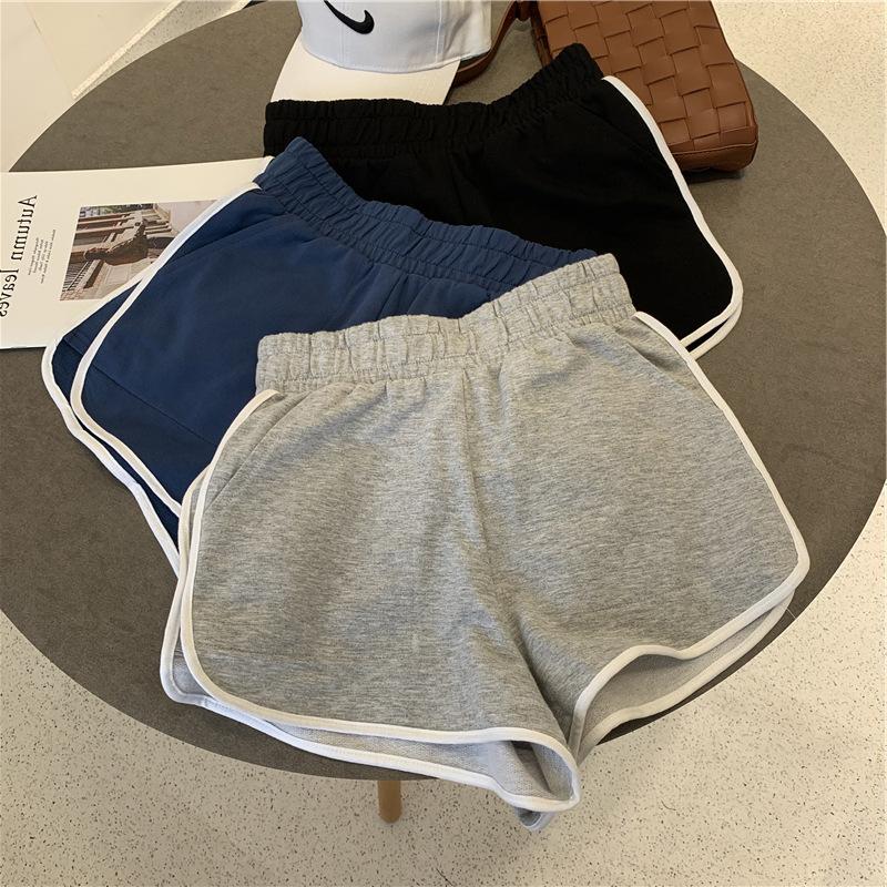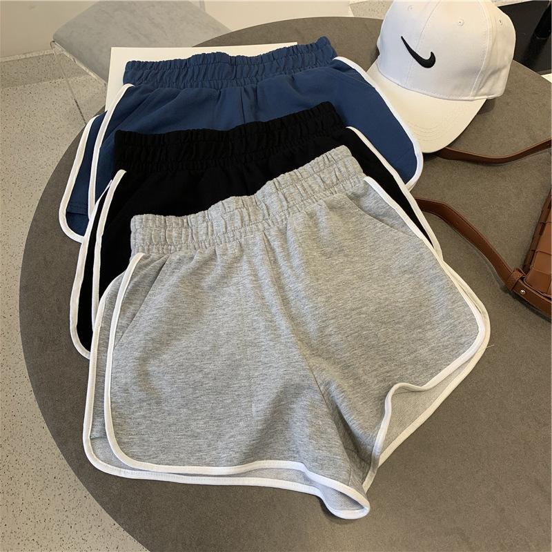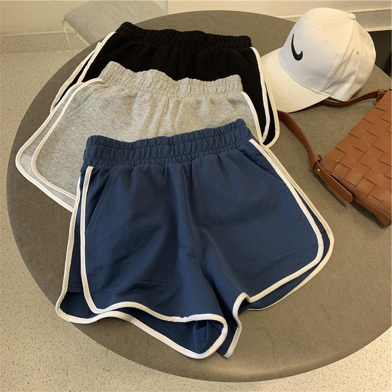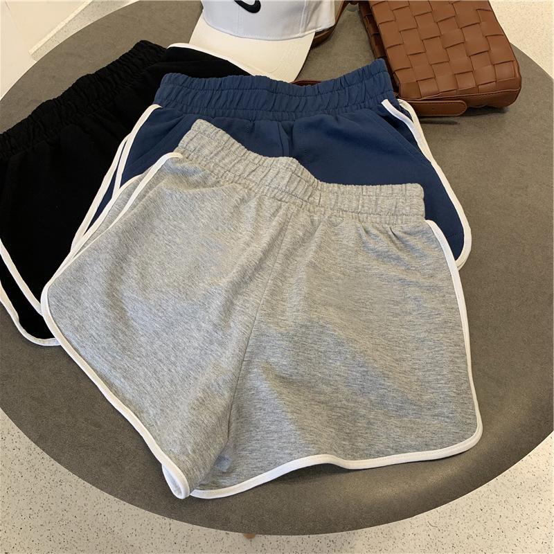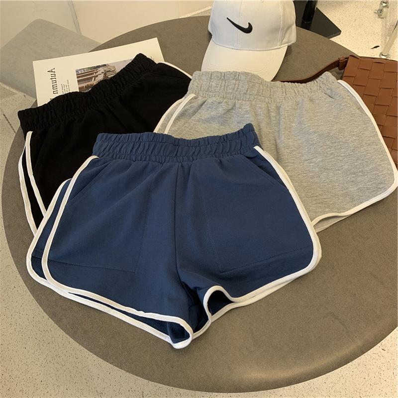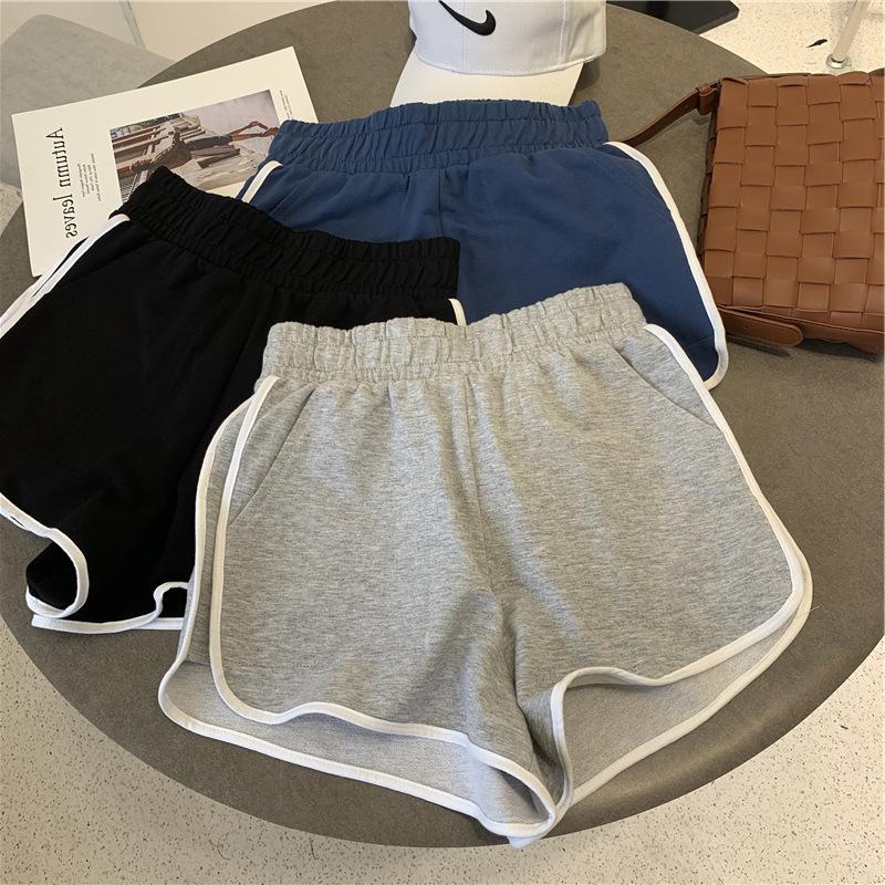 Pantalones cortos deportivos clásicos con rayas laterales para mujer, con borde blanco, ajustados, holgados, para correr en casa, informales, combinables para verano