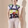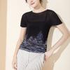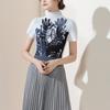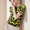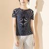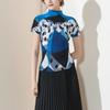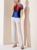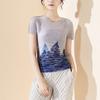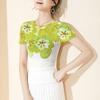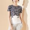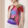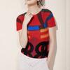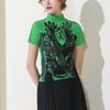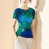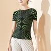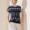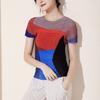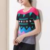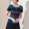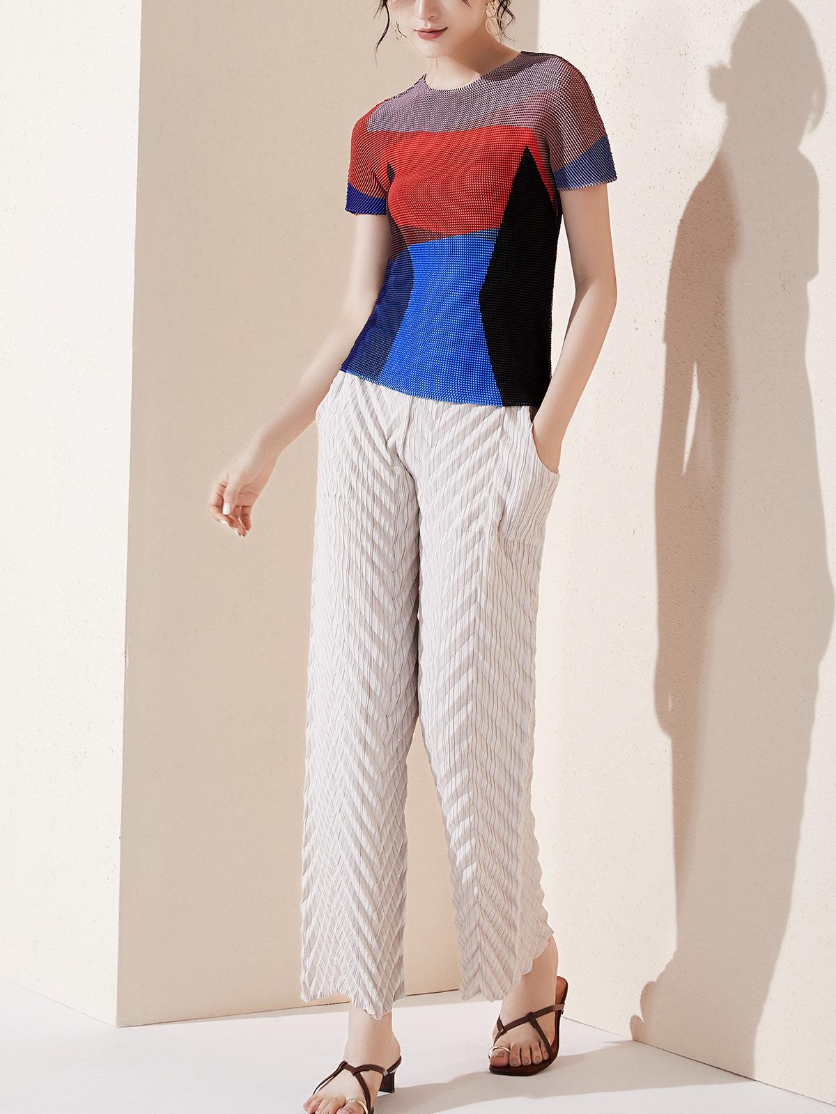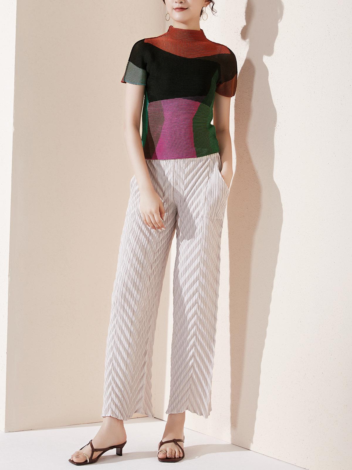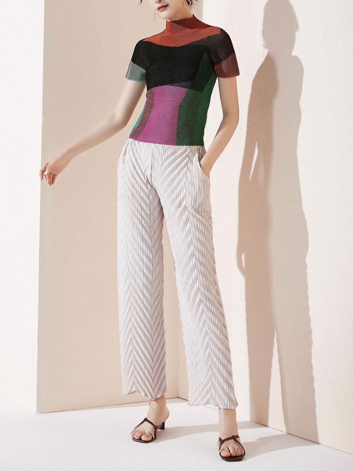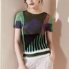 Camiseta de manga corta Miyake de alta gama para mujer, diseño de verano para mujer, estilo nicho, con contraste de colores, a la moda, combinable, tipo jersey, top tipo camisa.