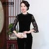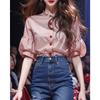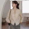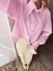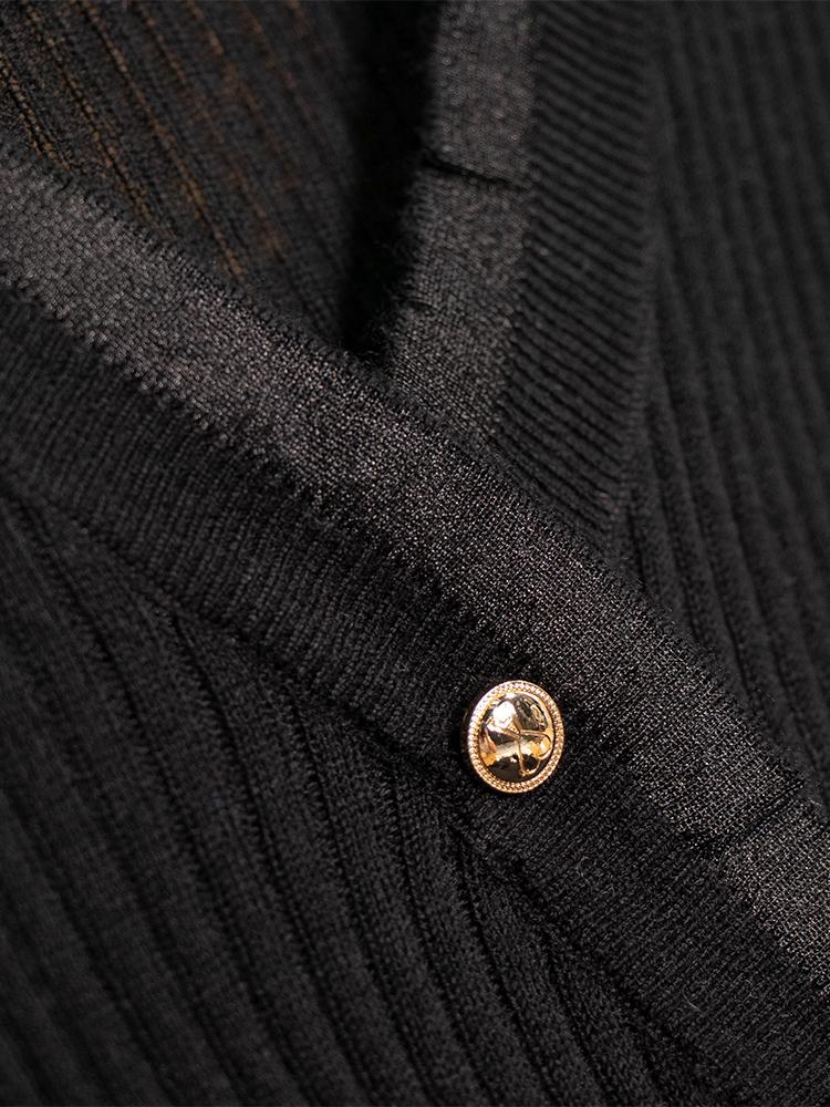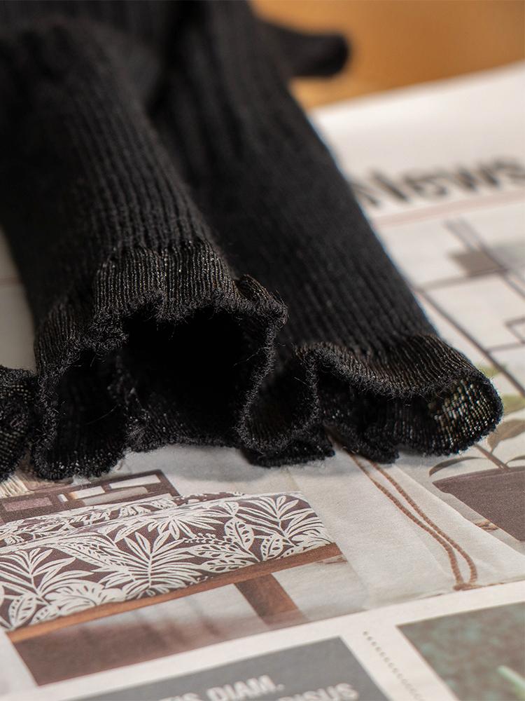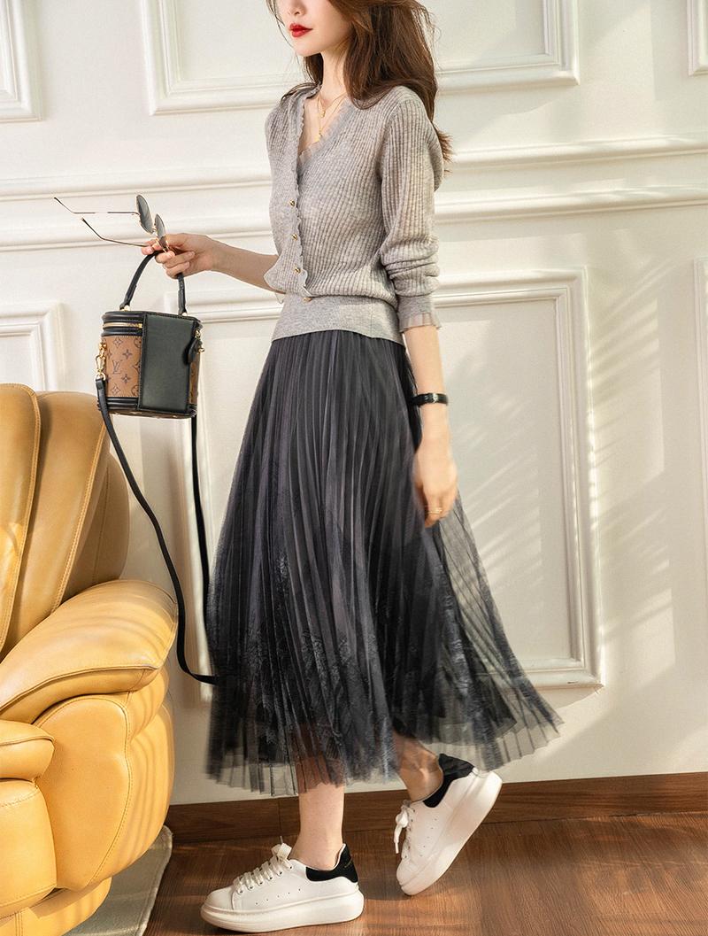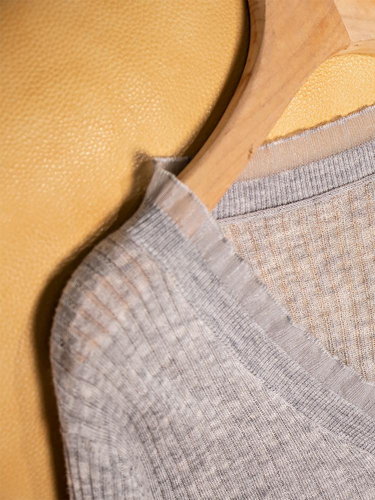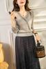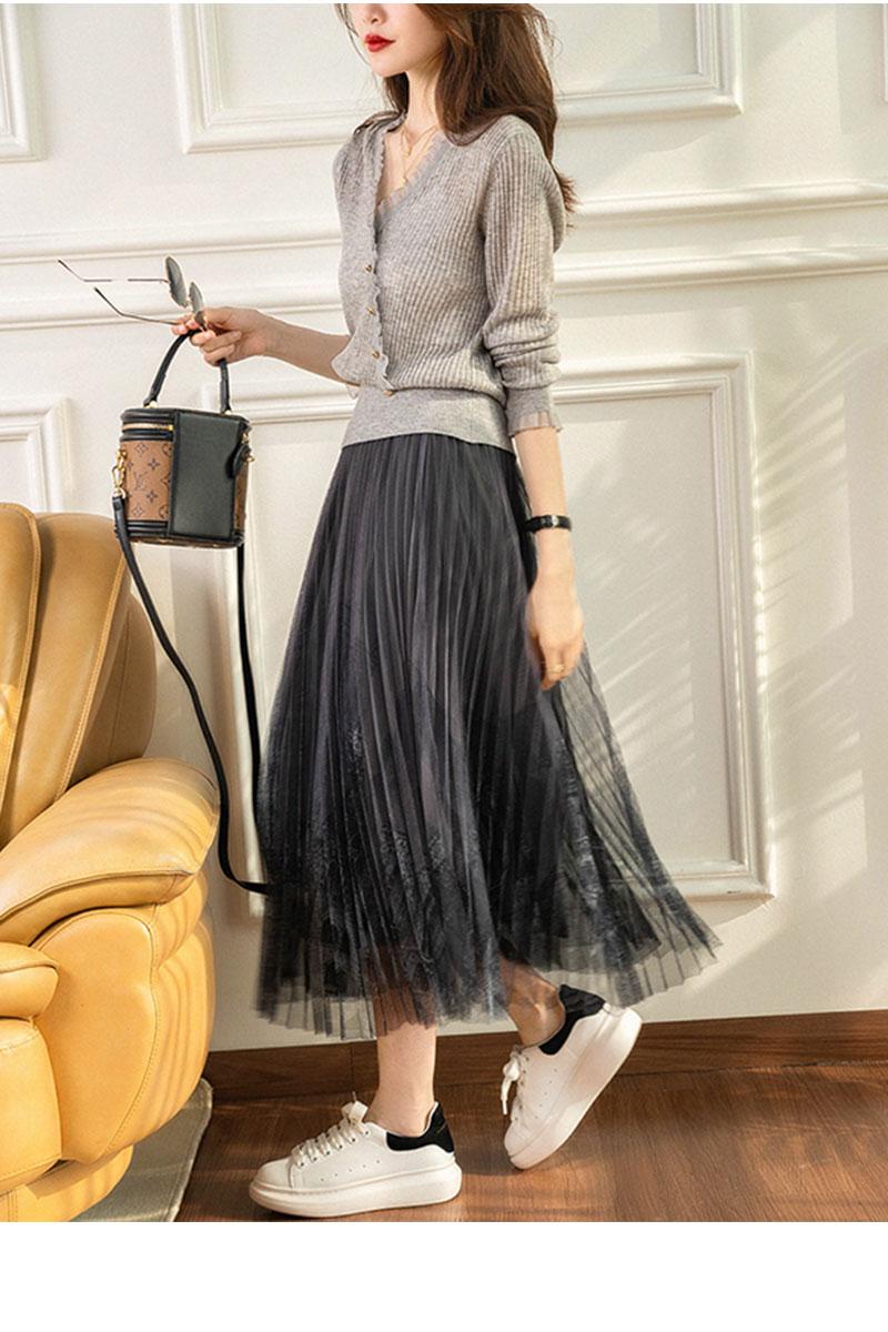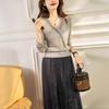 Top de punto de manga larga con escote en V, romántico, llamativo y suave, con borde en las orejas, para mujer, principios de otoño, nuevo, con costuras de organza.