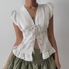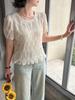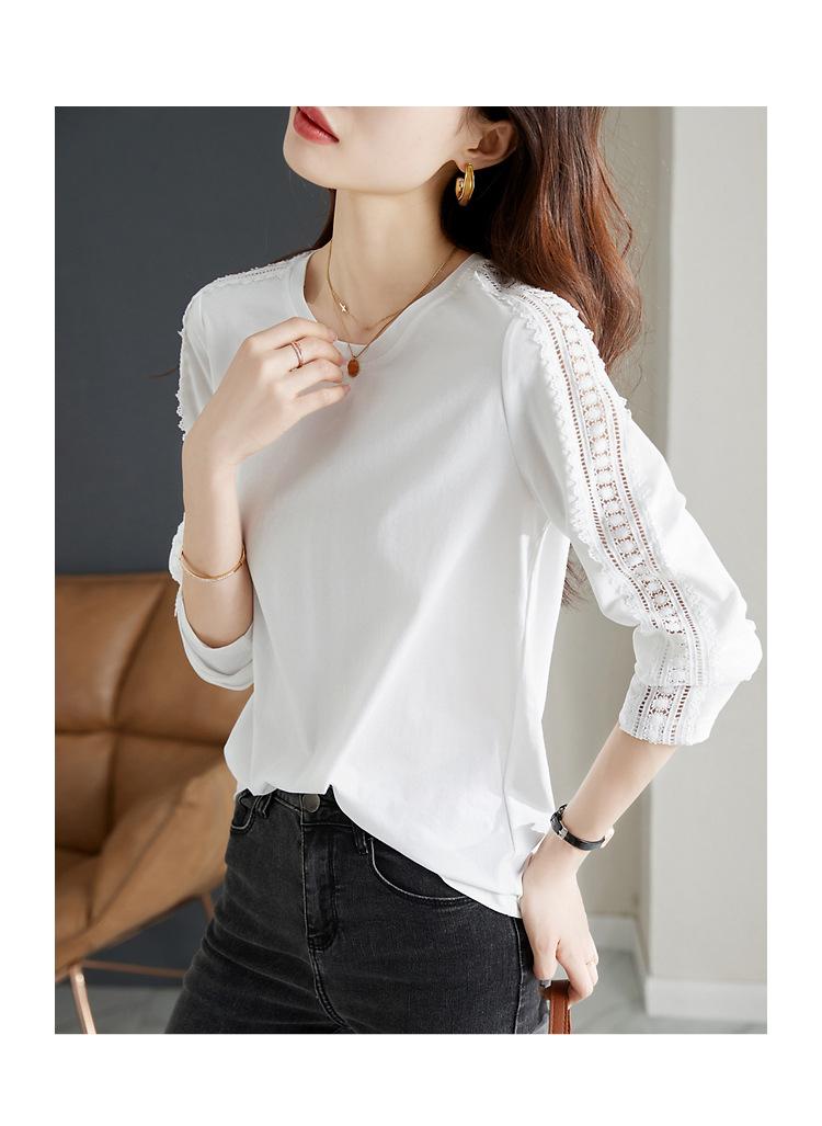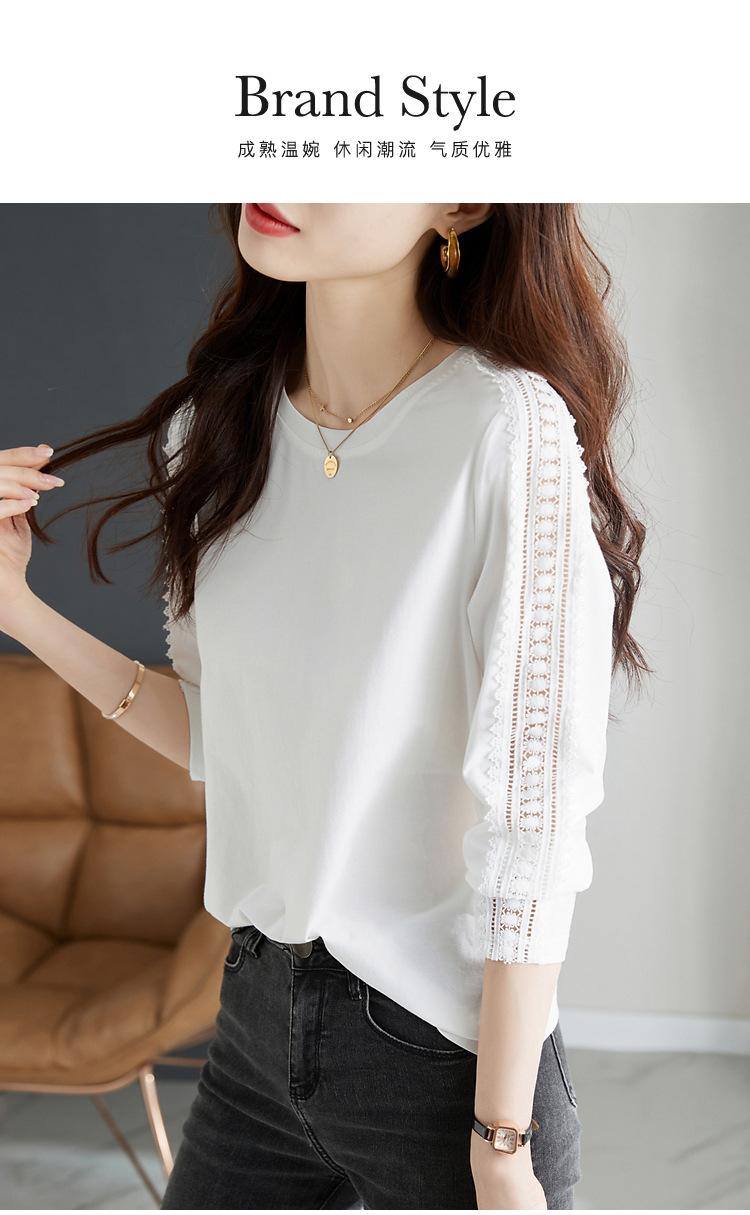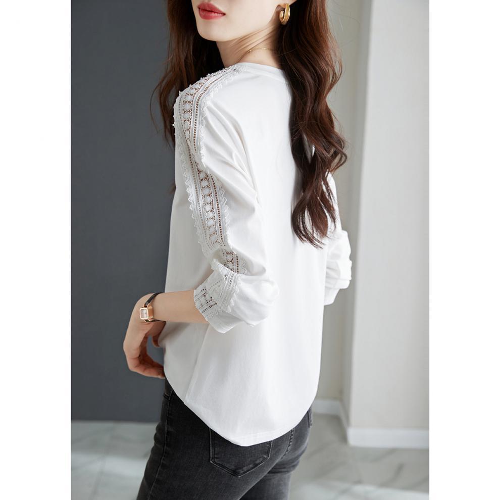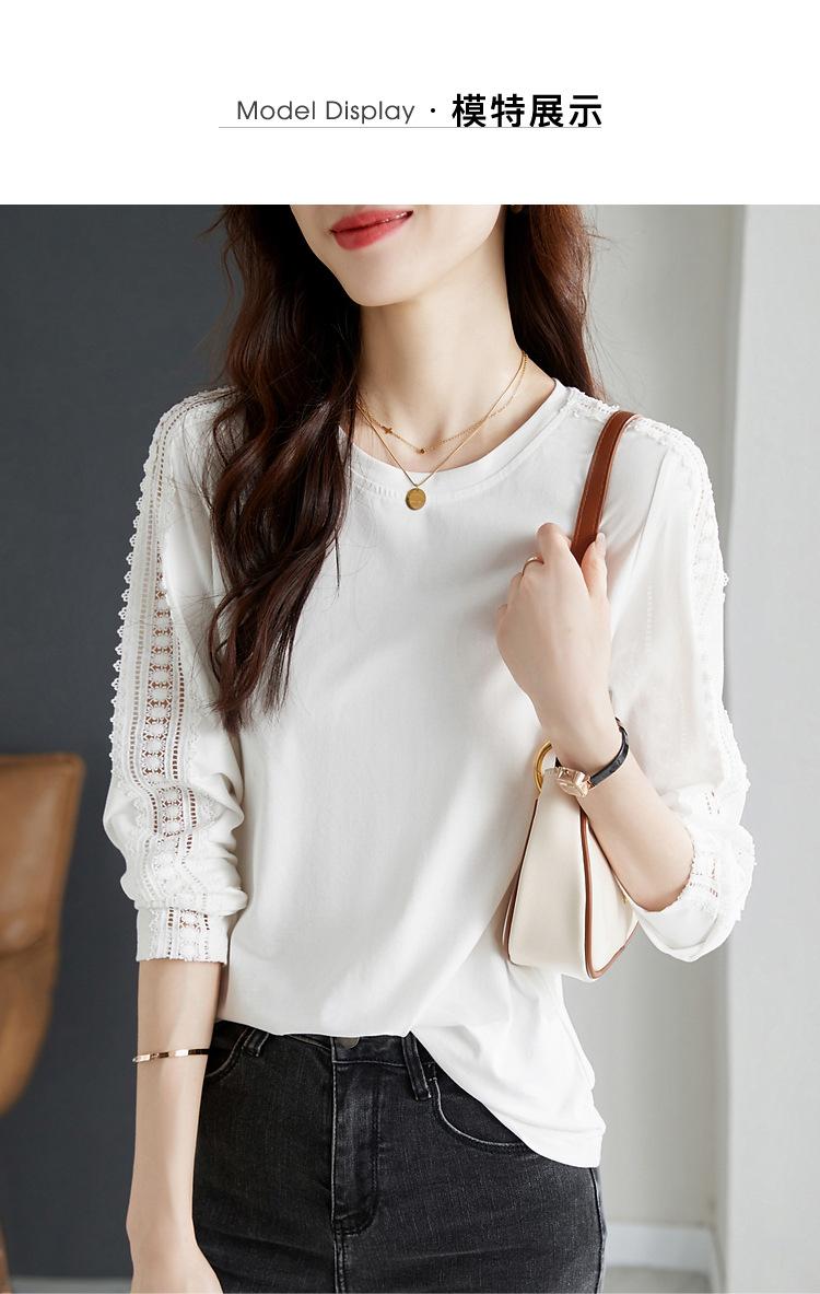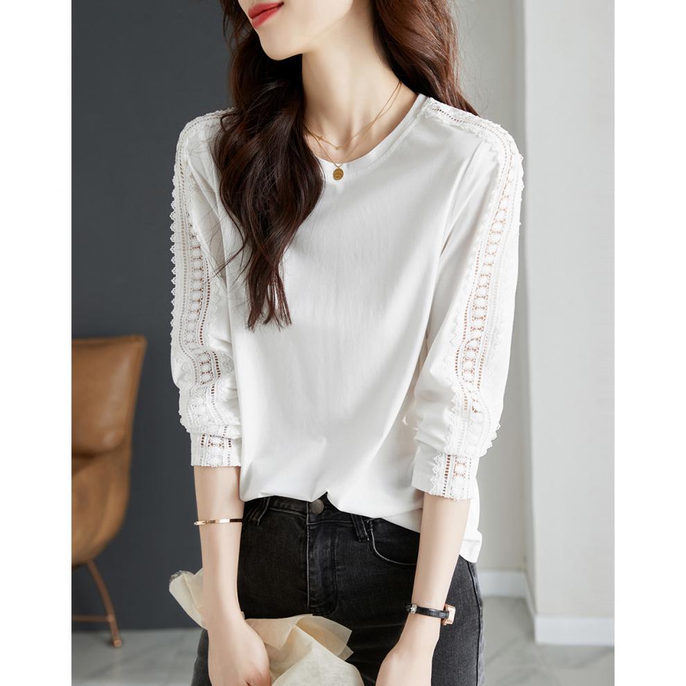 Camiseta de Encaje Tridimensional de Comercio Exterior 2023 Verano y Otoño Nuevo Top Casual con Decoración de Encaje Tridimensional de Alta Resistencia