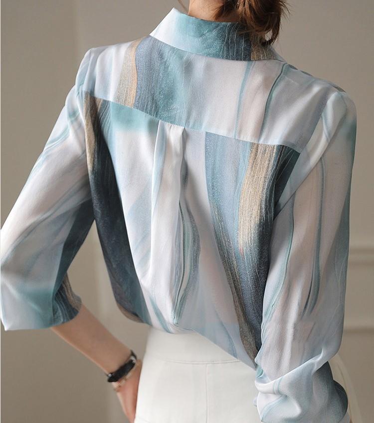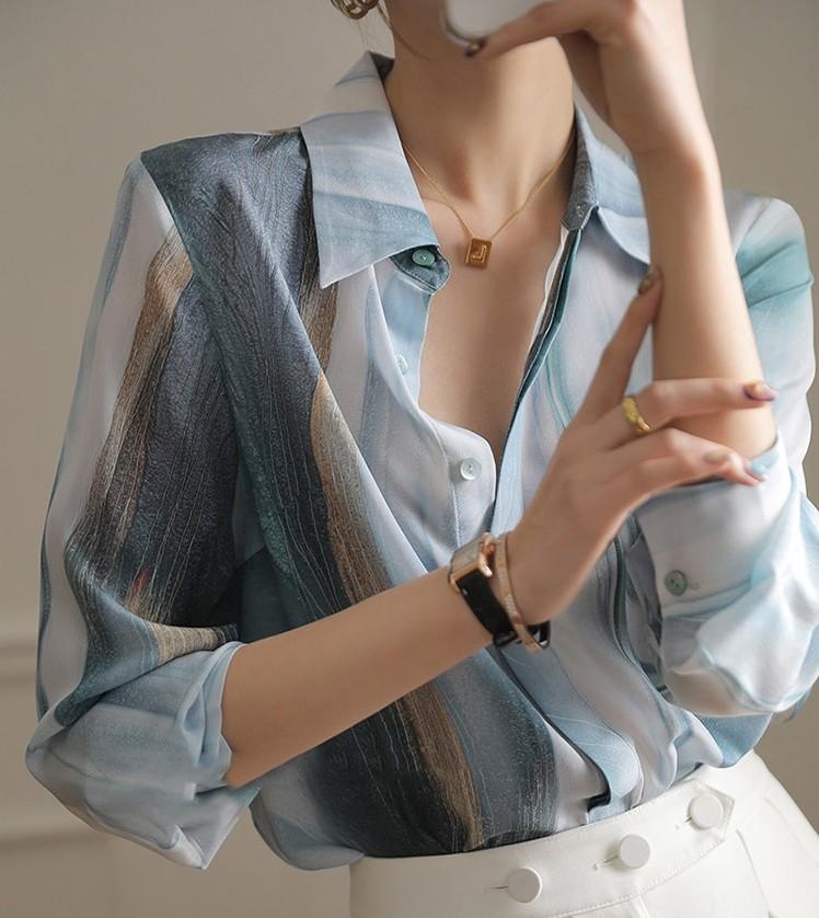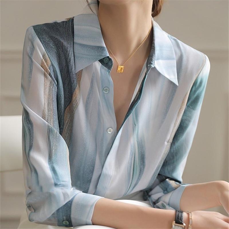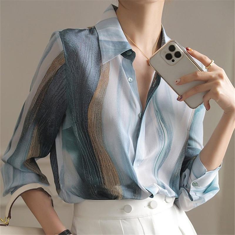 Camisa de cuello polo con degradado Design Sense para mujer, primavera y otoño 2023, nuevo conjunto de nicho, top que combina con todo, moda para mujer