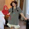 Vestido de verano para embarazadas, nuevo estilo, con costuras a rayas y largo medio, camiseta holgada de manga corta.