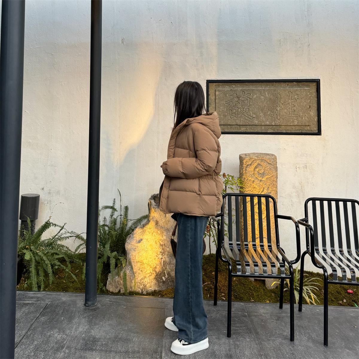 Esta chaqueta de plumón de ganso utiliza el hilo elástico italiano del pequeño calentador anterior para brindarte