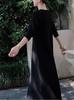 Vestido Elegante Casual Adelgazante con Textura Suave de Capa de Aire Estilo Francés Otoño 2025 con Cuello U