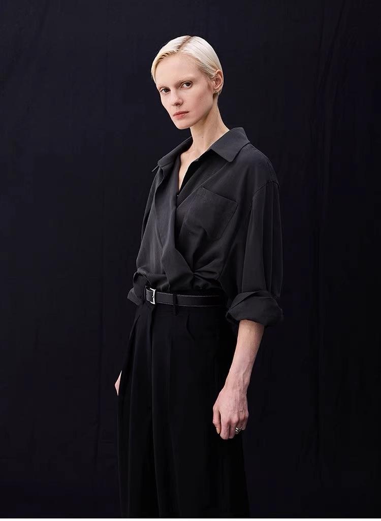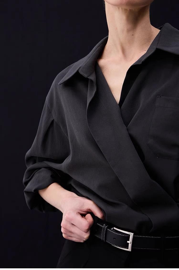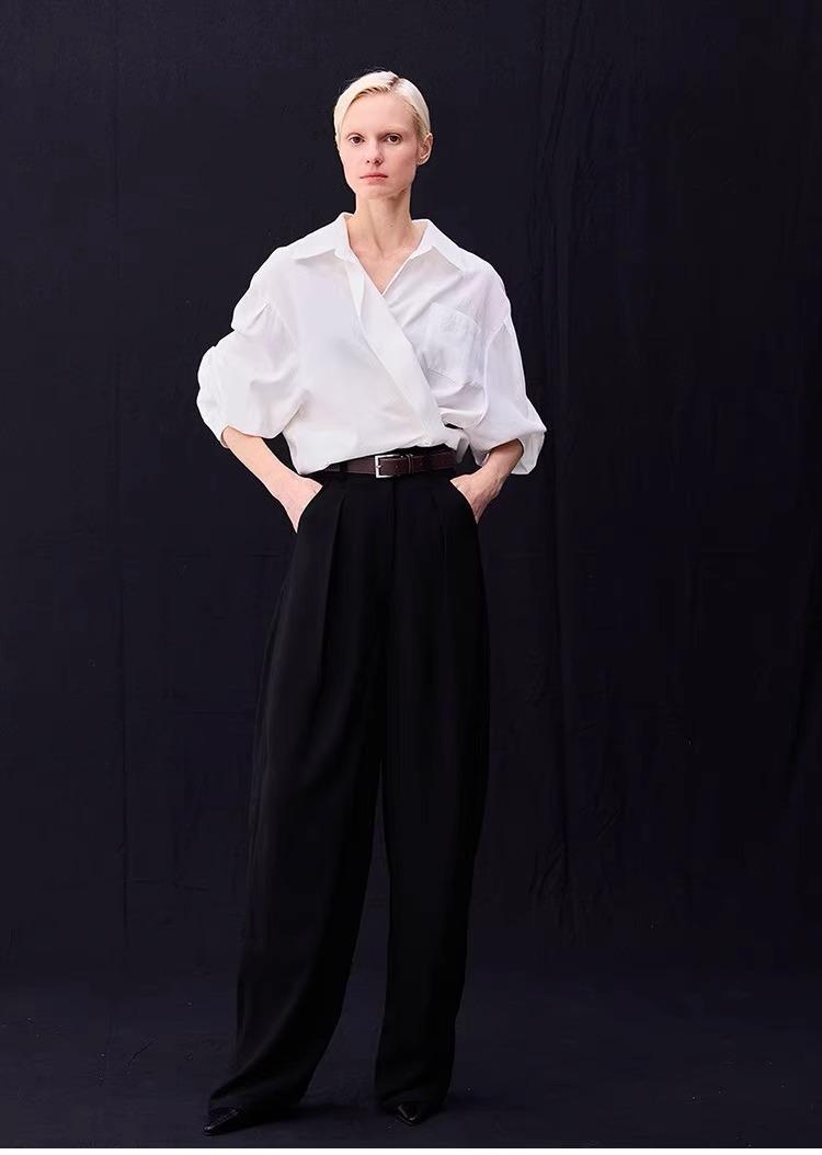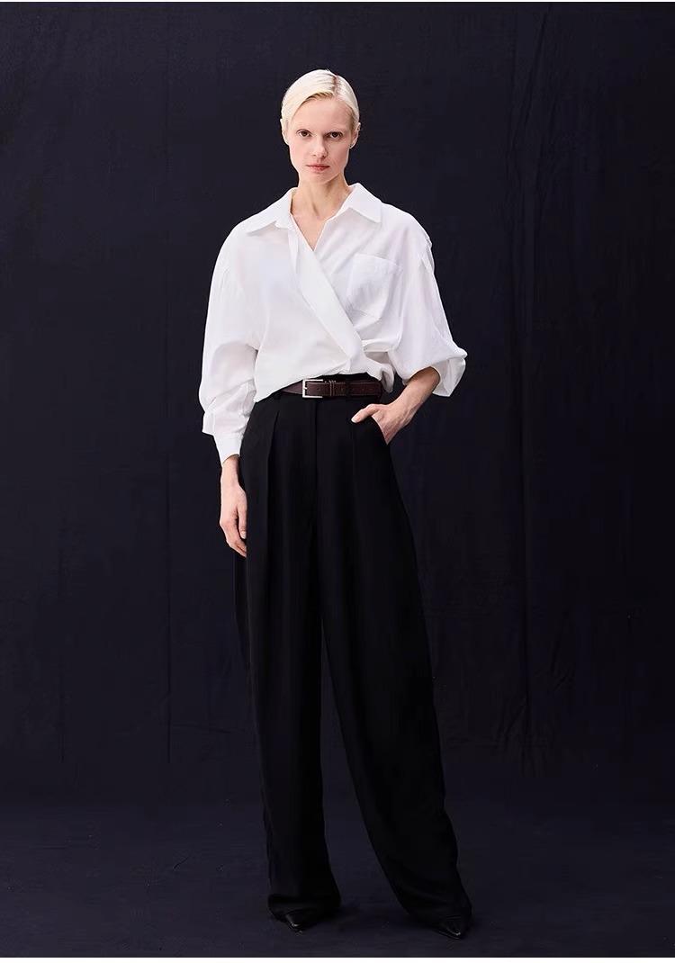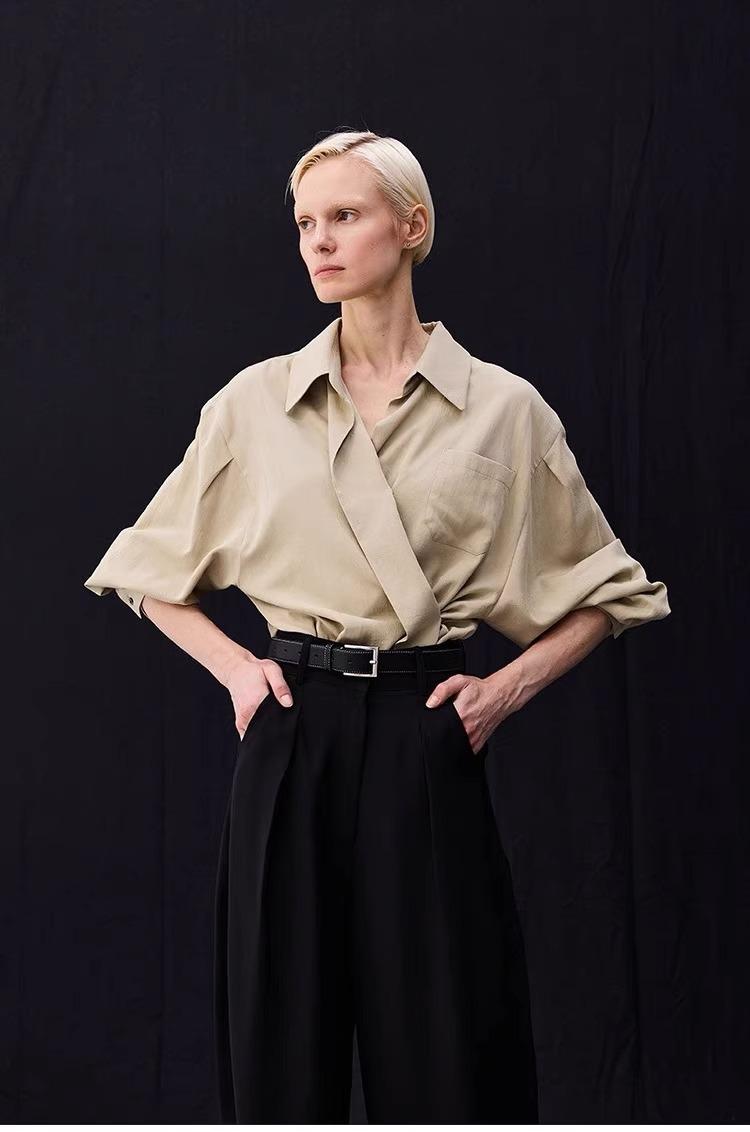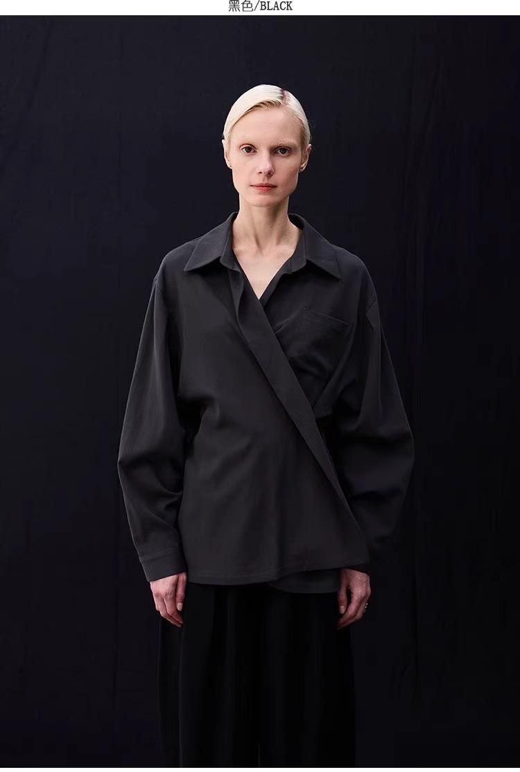 Compra Camisa de Diseñador Nicho Coreano Tops de Mujer Primavera y Otoño 2025 Nuevo Suelto Asimétrico Blanco Camisa de Manga Larga al por mayor en Joom.pro