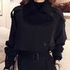 Gabardina de mujer primavera y otoño de longitud media 2024 gabardina negra cruzada coreana para mujer