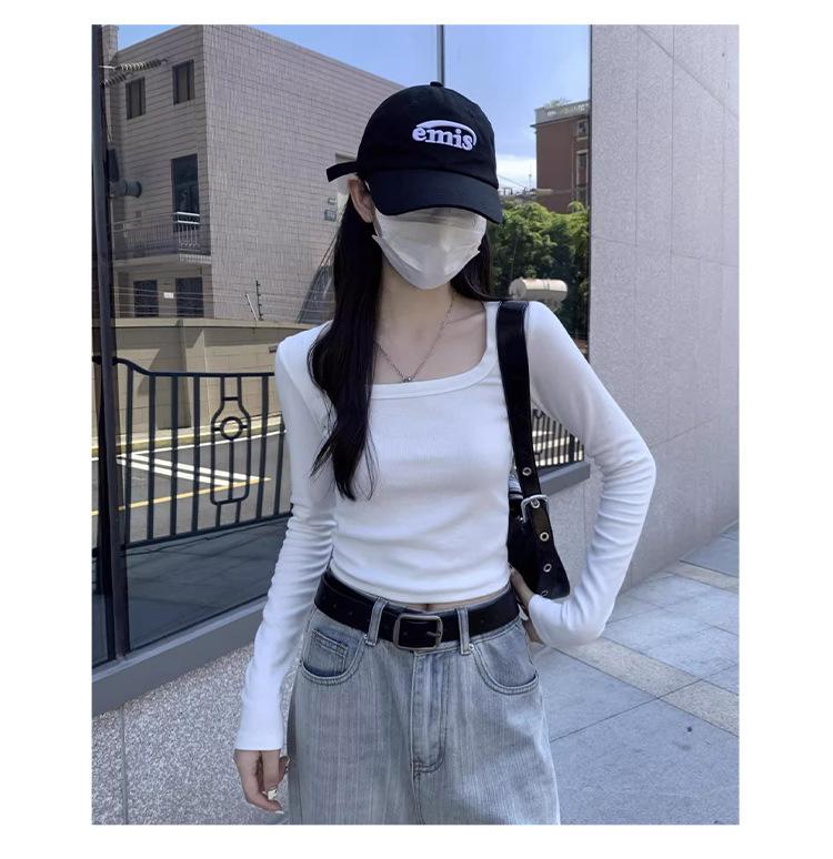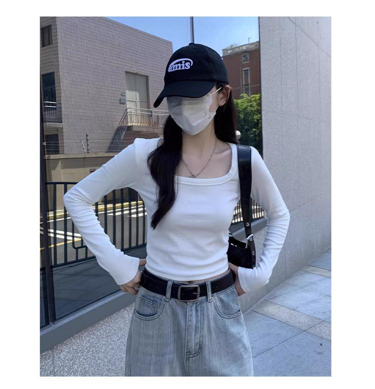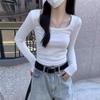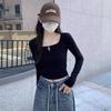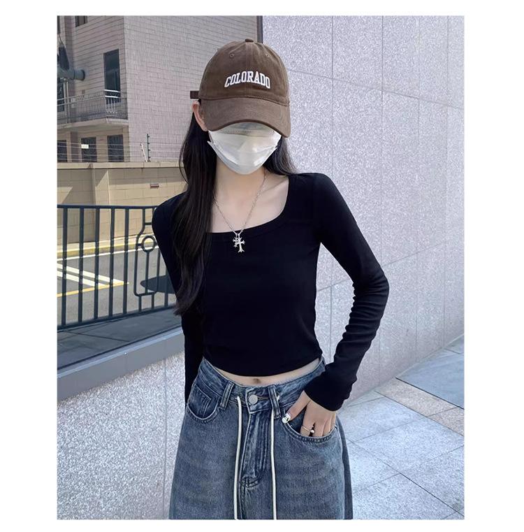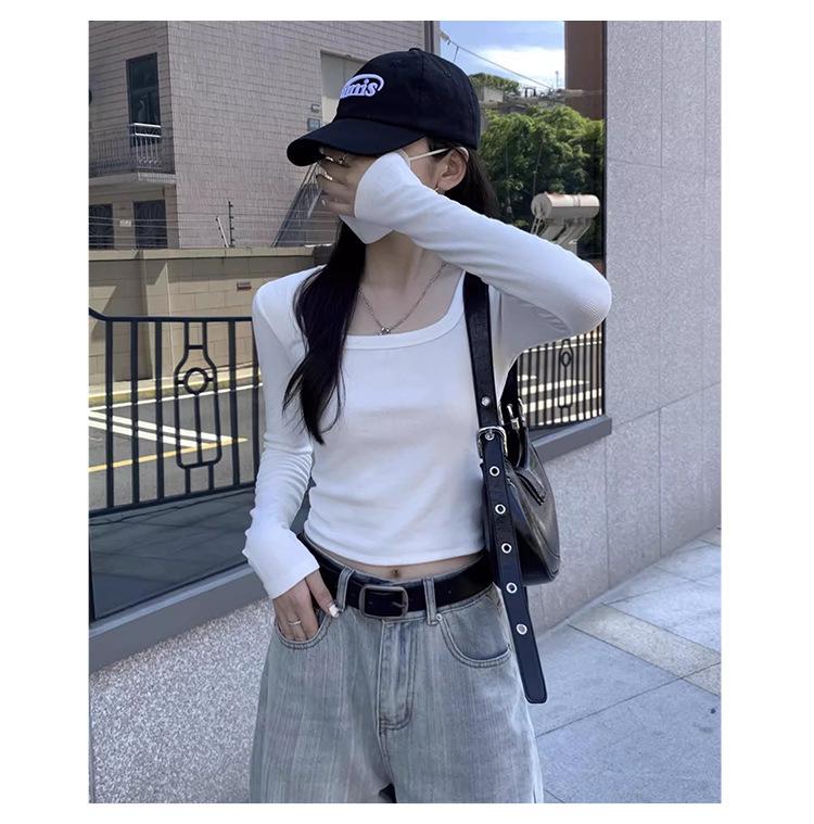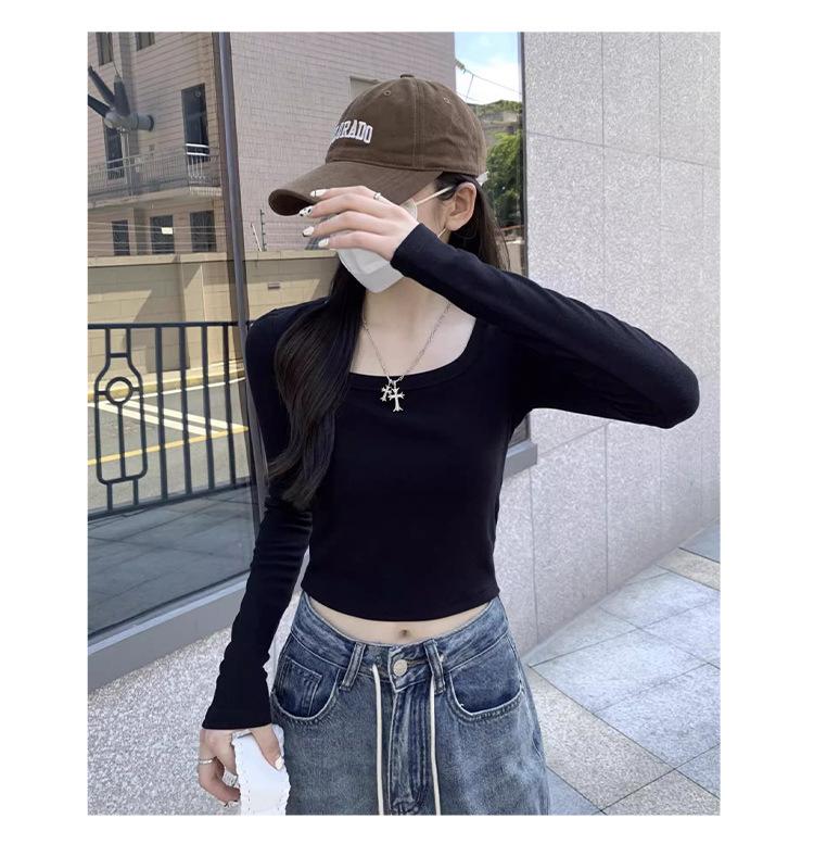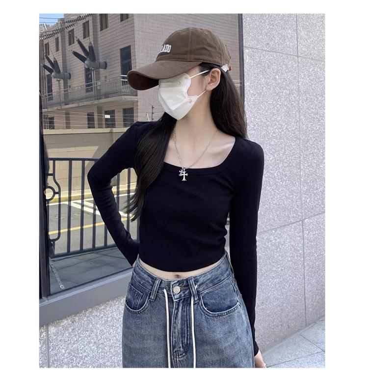 Camiseta de manga larga con cuello cuadrado para mujer, nueva camiseta de otoño 2024, ajustada, corta, adelgazante, sexy, para chica