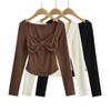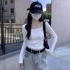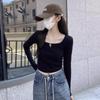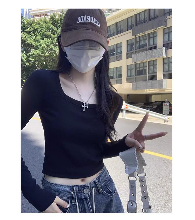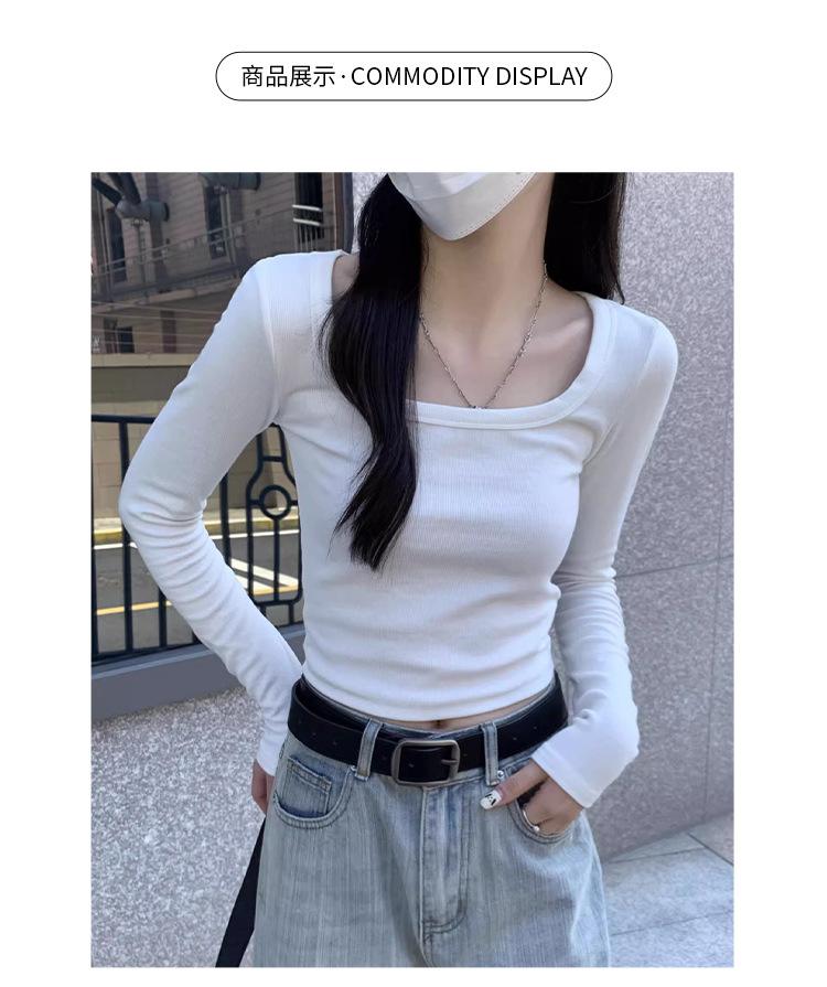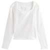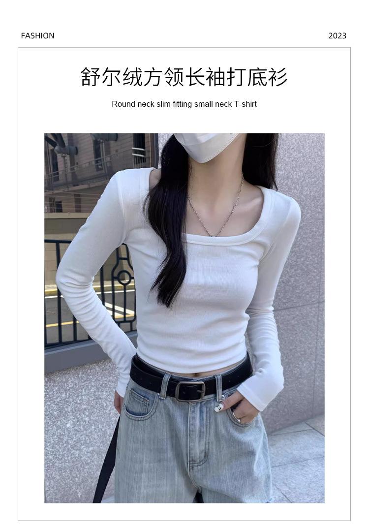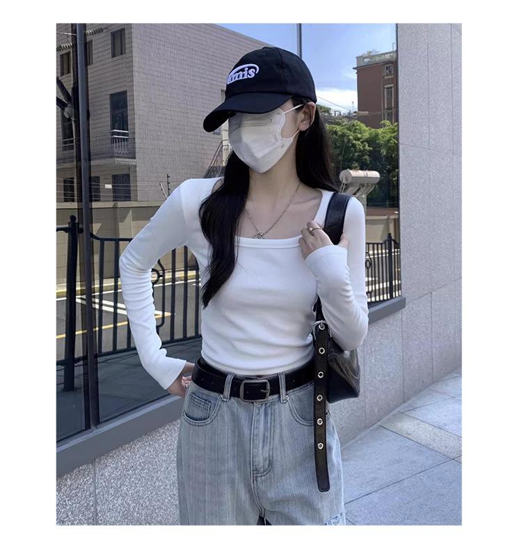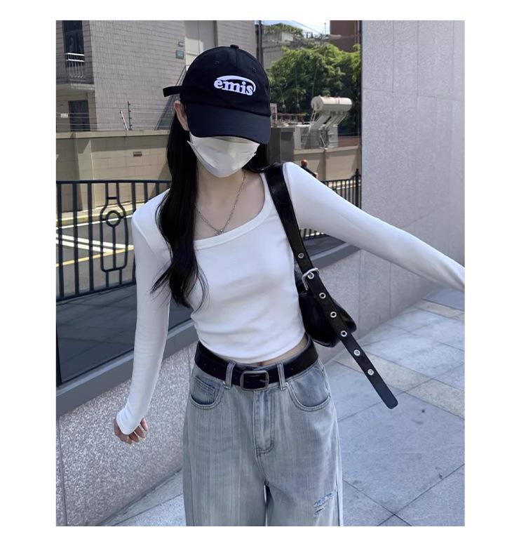 Camiseta de manga larga con cuello cuadrado para mujer, nueva camiseta de otoño 2024, ajustada, corta, adelgazante, sexy, para chica