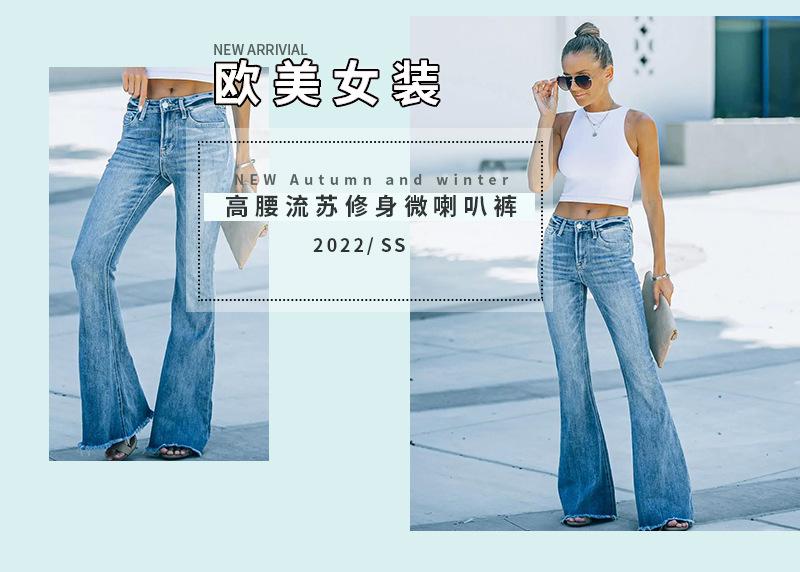 Jeans Micro Acampanados Europeos y Americanos 2022 Amazon Otoño e Invierno Nuevo Cintura Alta Borla Slim Pantalones Micro Acampanados Estilo Retro